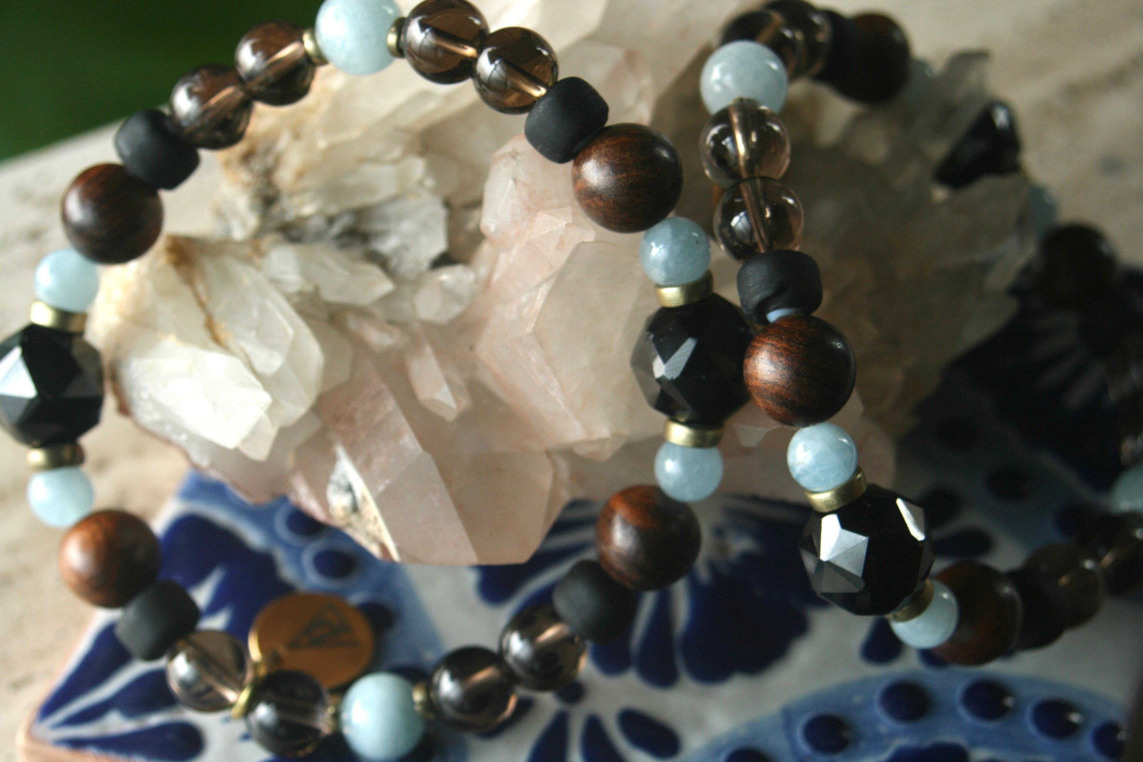 3月誕生石【アクアマリン×ブラックスピネル】ゴムタイプブレスレット
