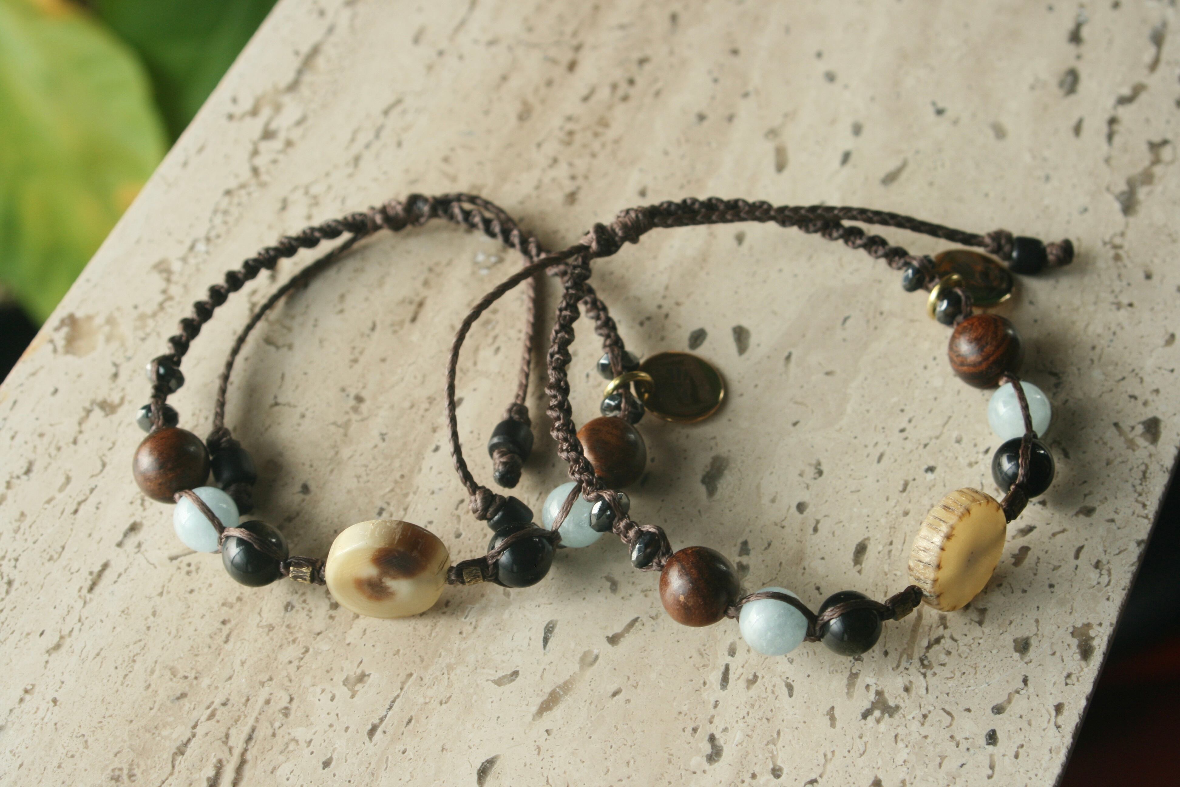3月誕生石【アクアマリン×水牛】紐タイプブレスレット