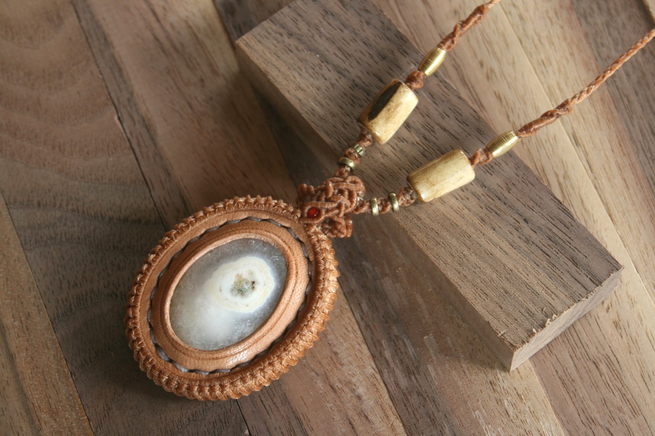 【ソーラークォーツ】天然石の革包MACRAMEネックレス