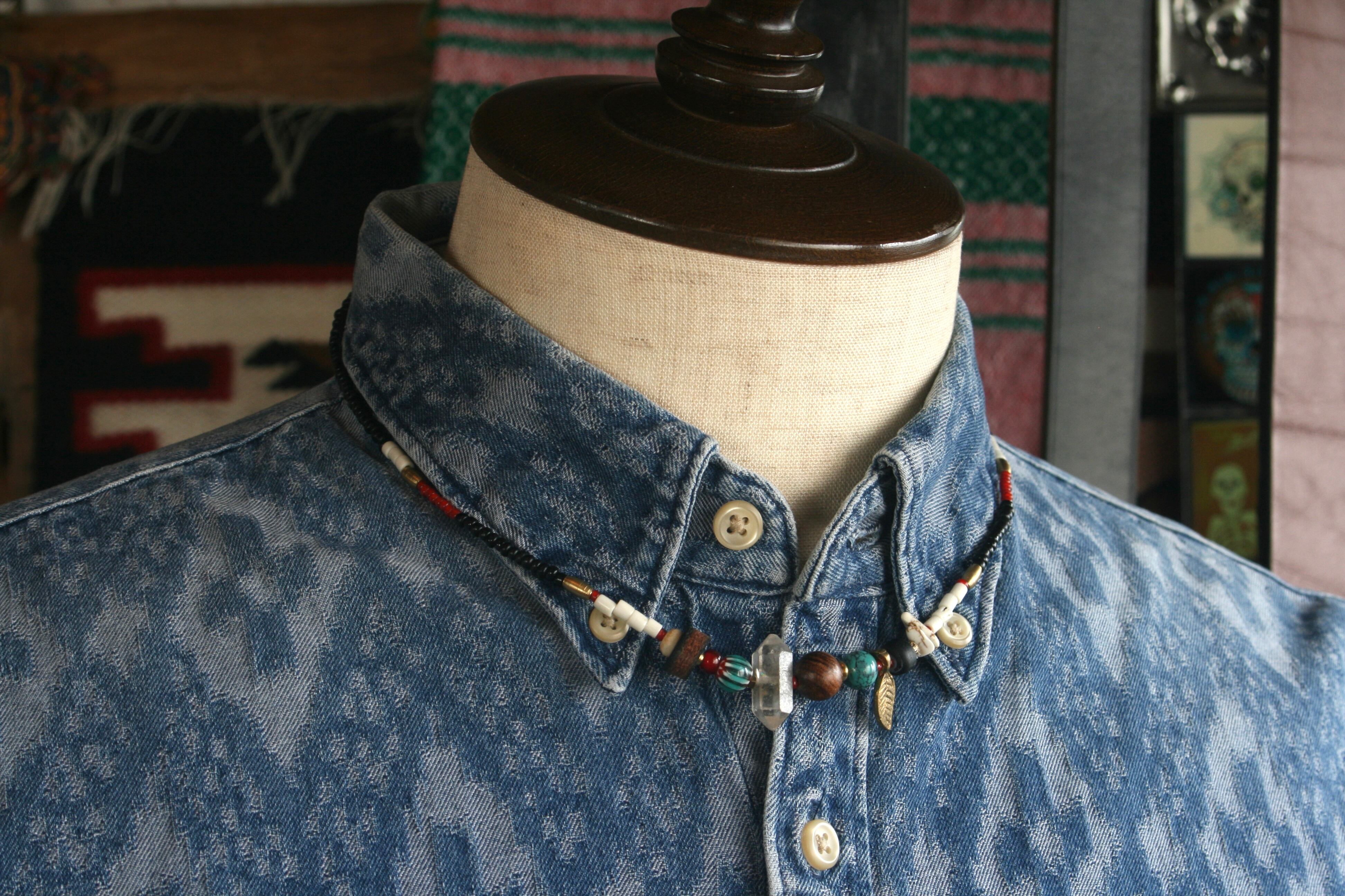 イタリア、アフリカ、メキシコ、インドネシア、ネパール等の民族ビーズ、トレードビーズを使用。