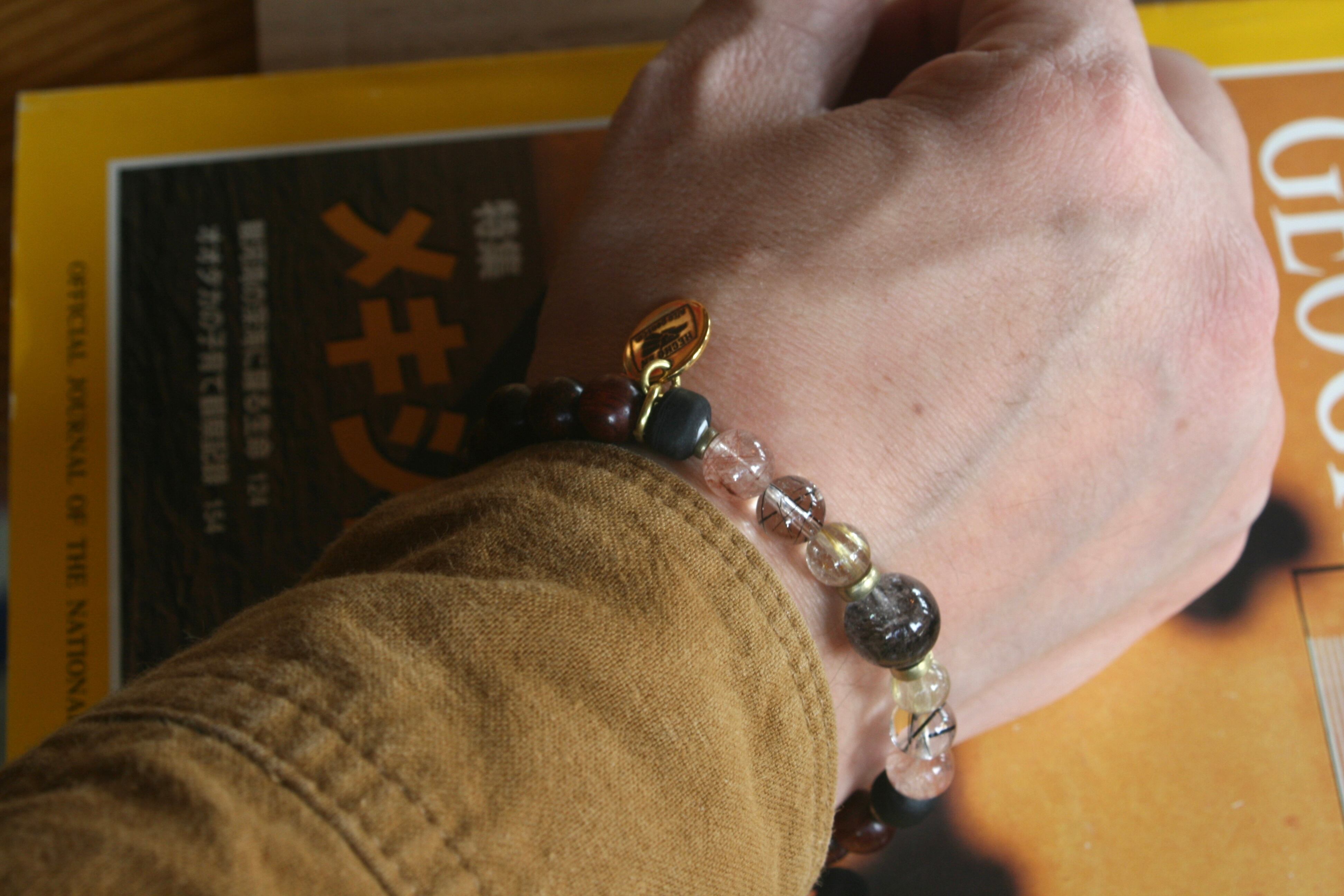 【3種のルチルクォーツ×パドックビーズ】ゴムタイプブレスレット