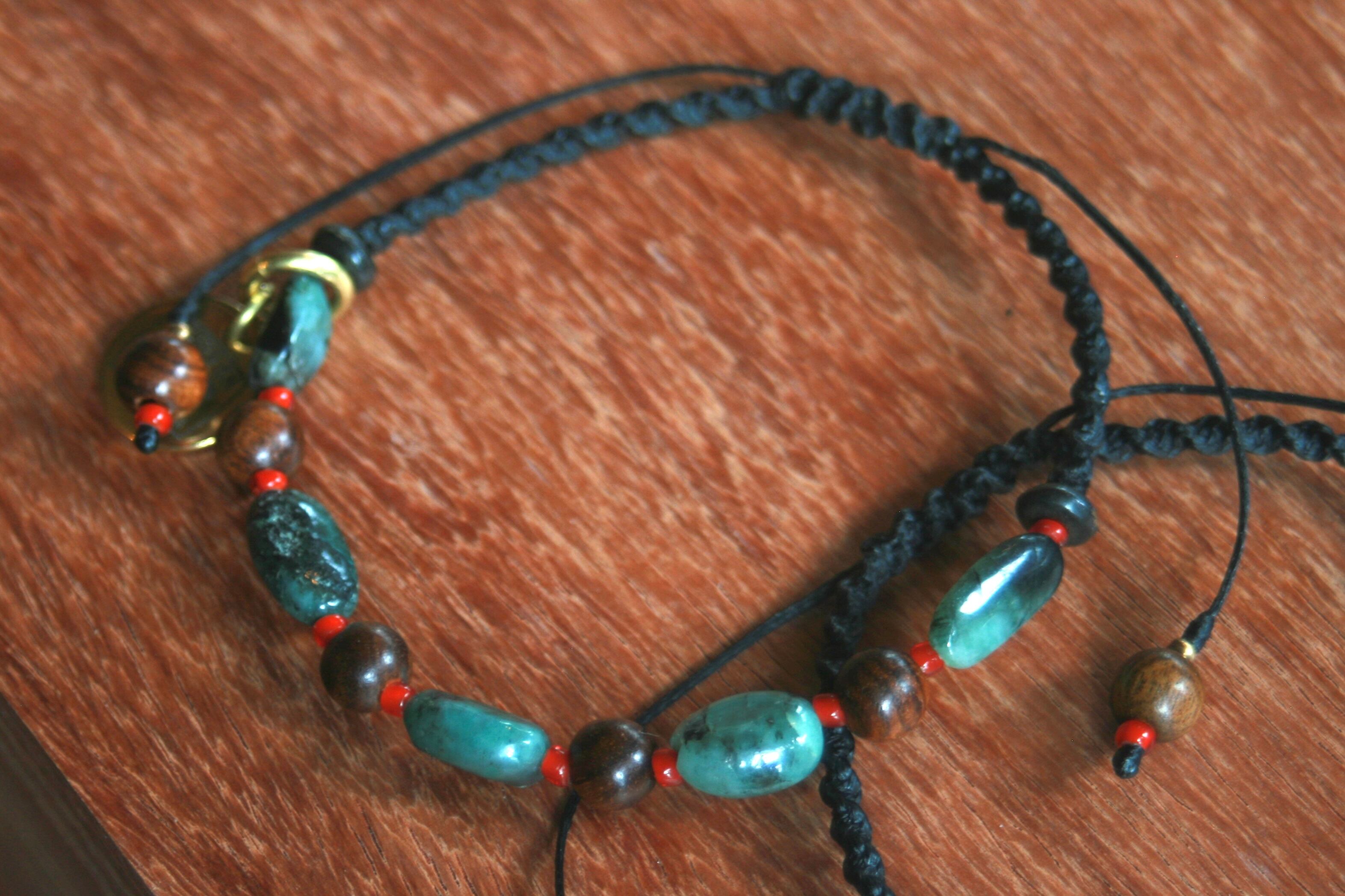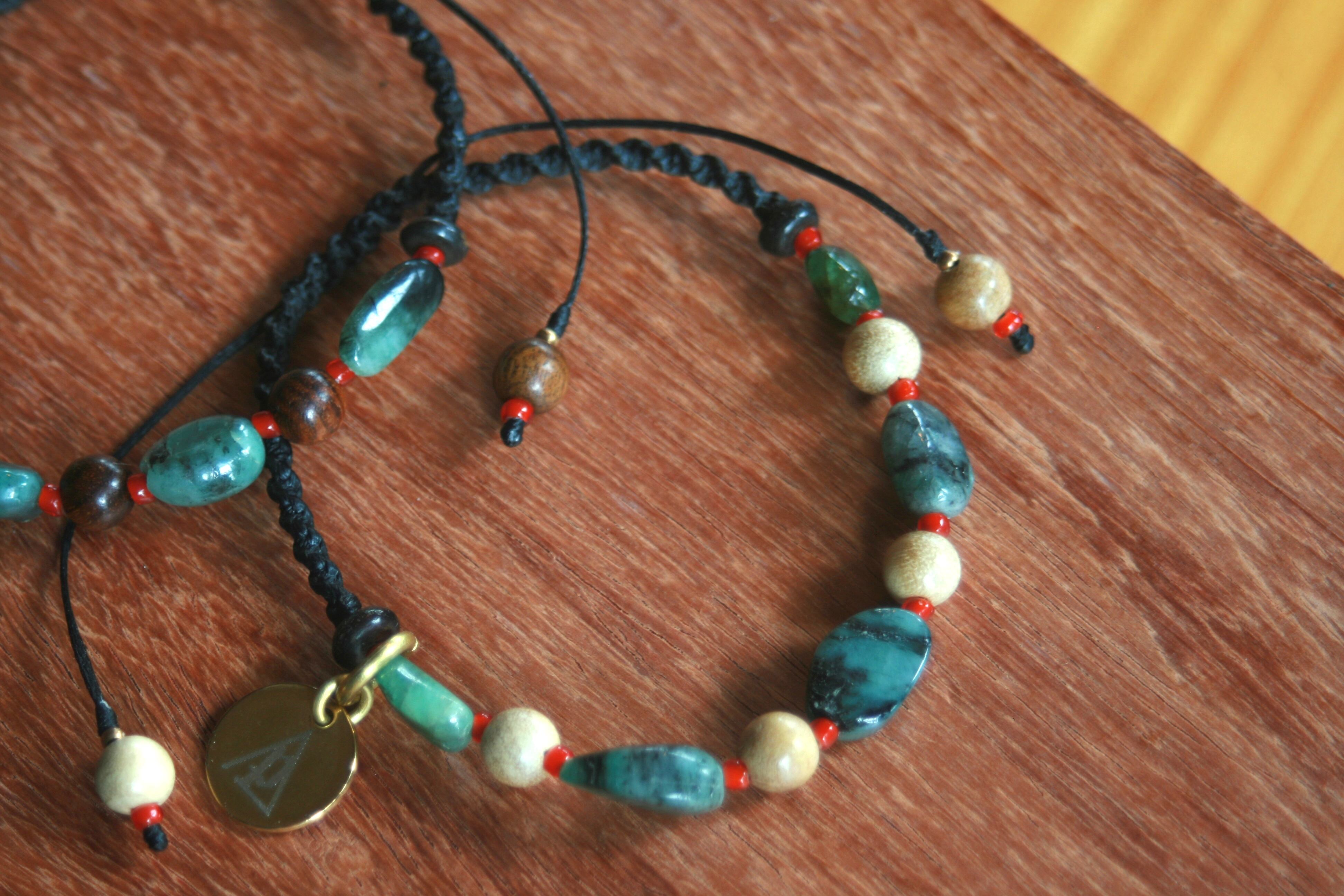 5月誕生石【エメラルド×ウォルナット】紐タイプブレスレット