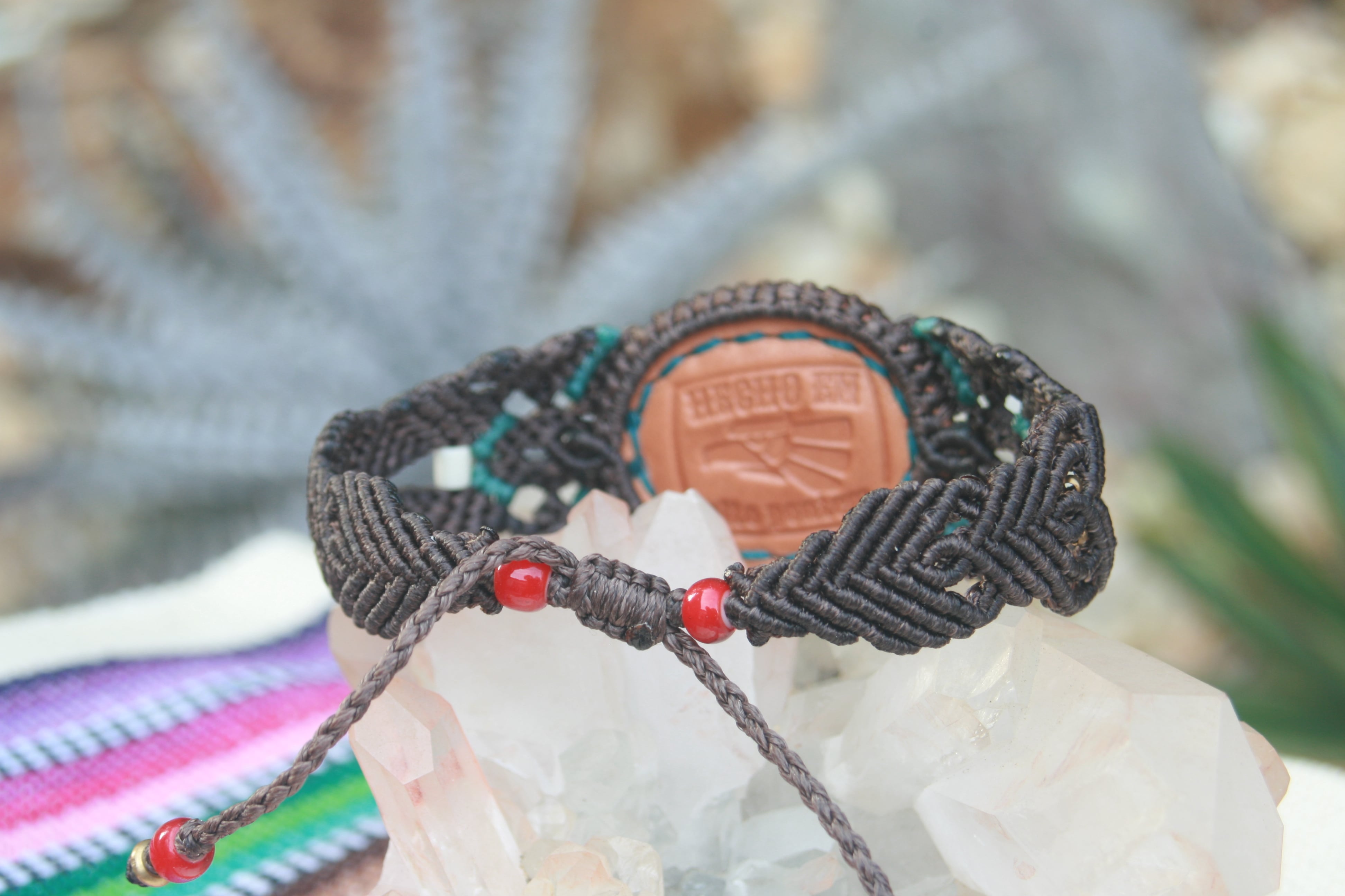 12月誕生石【チベットターコイズ】革包みMACRAMEブレスレット