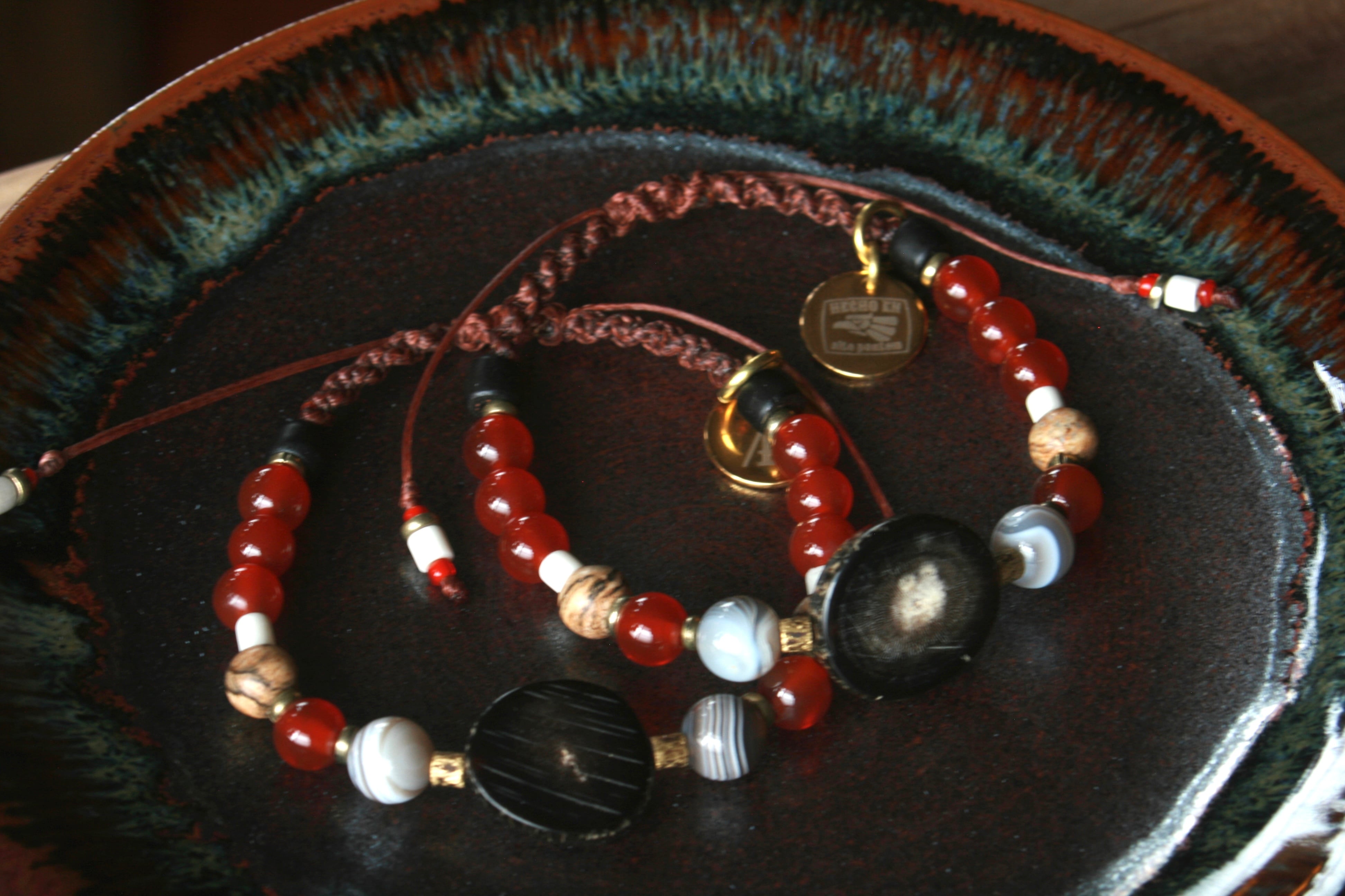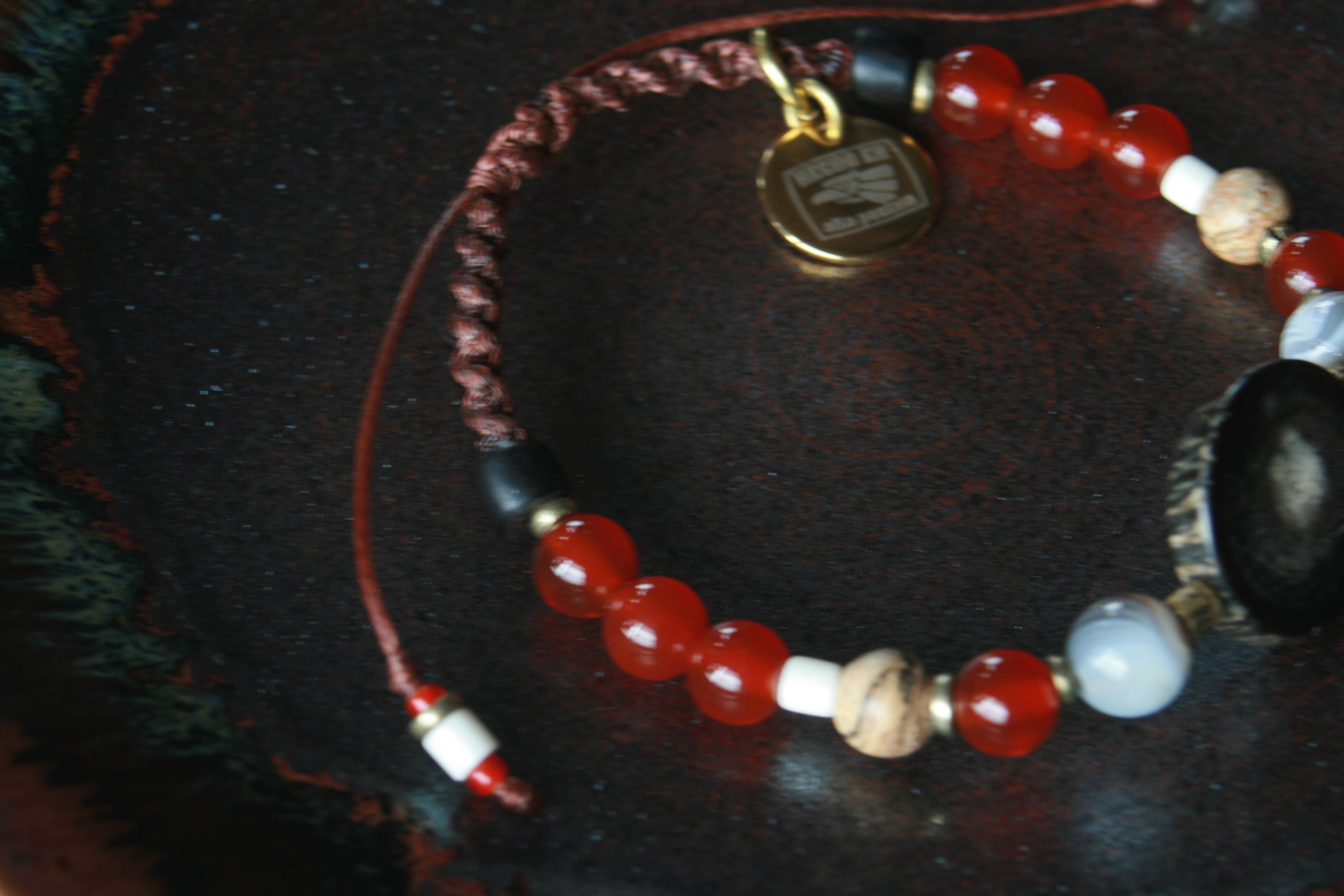 7月誕生石【カーネリアン&水牛】紐タイプブレスレット
