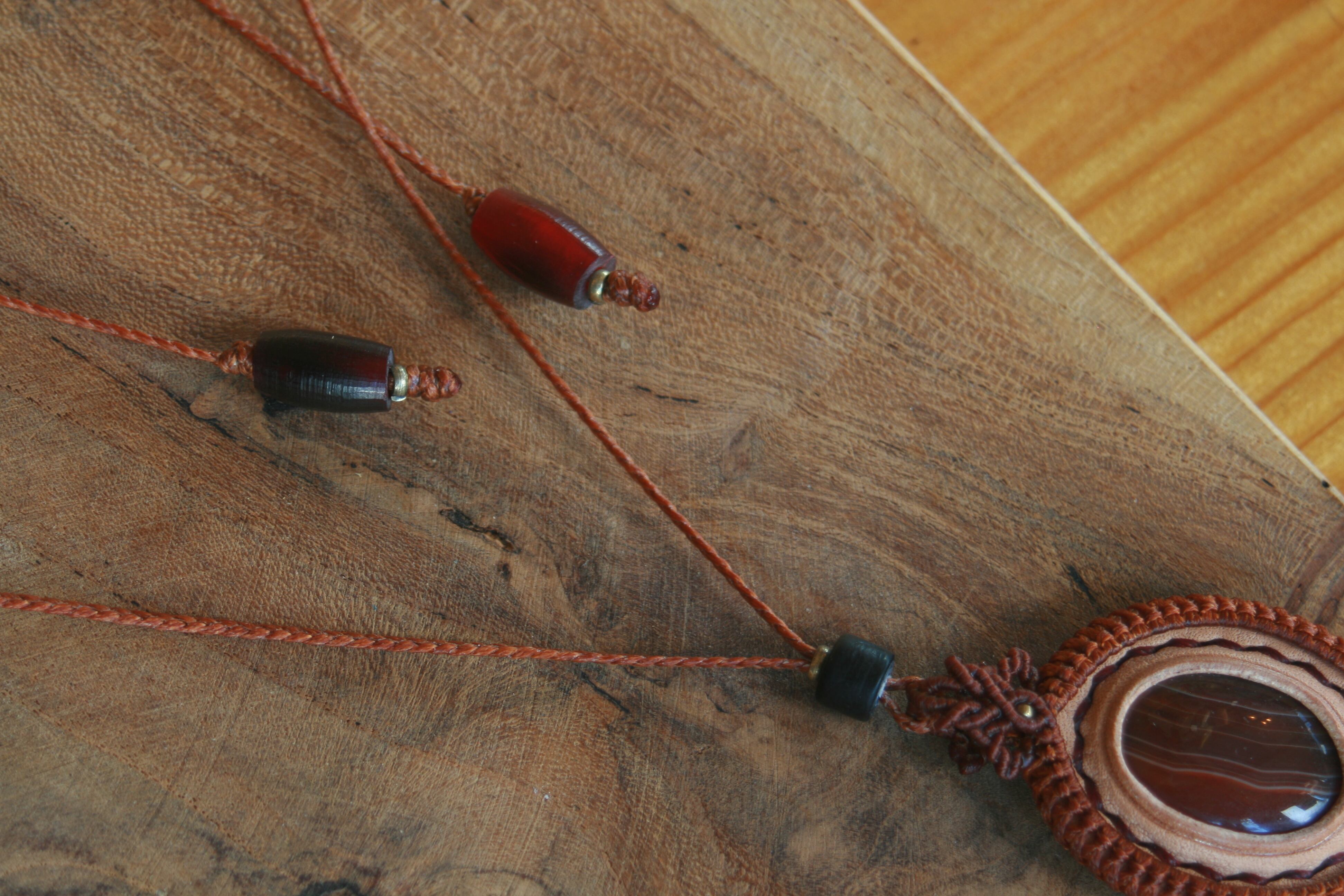 8月誕生石【サードオニキス】天然石の革包MACRAMEネックレス