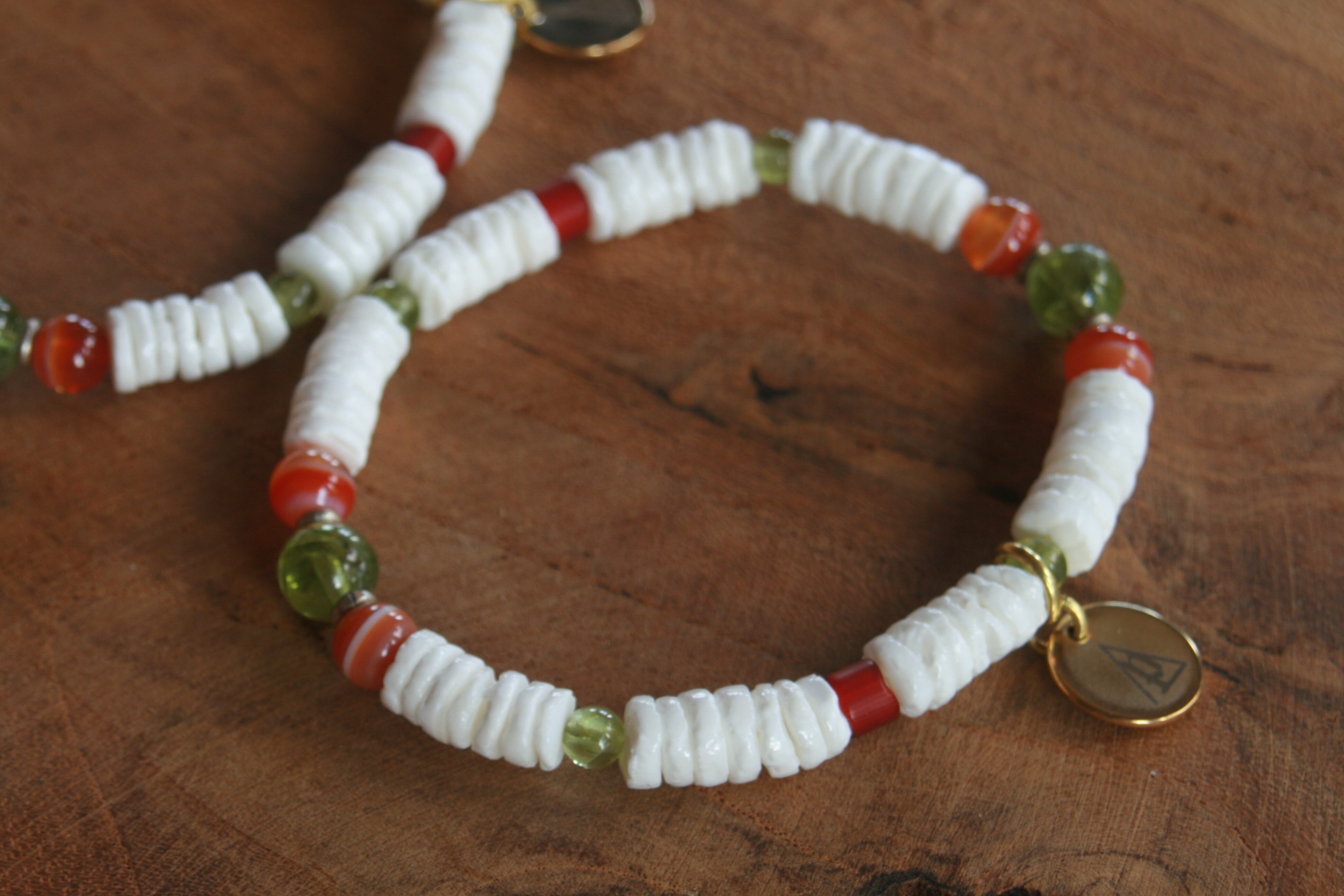 8月誕生石【ペリドット×サードオニキス】ゴムタイプブレスレット