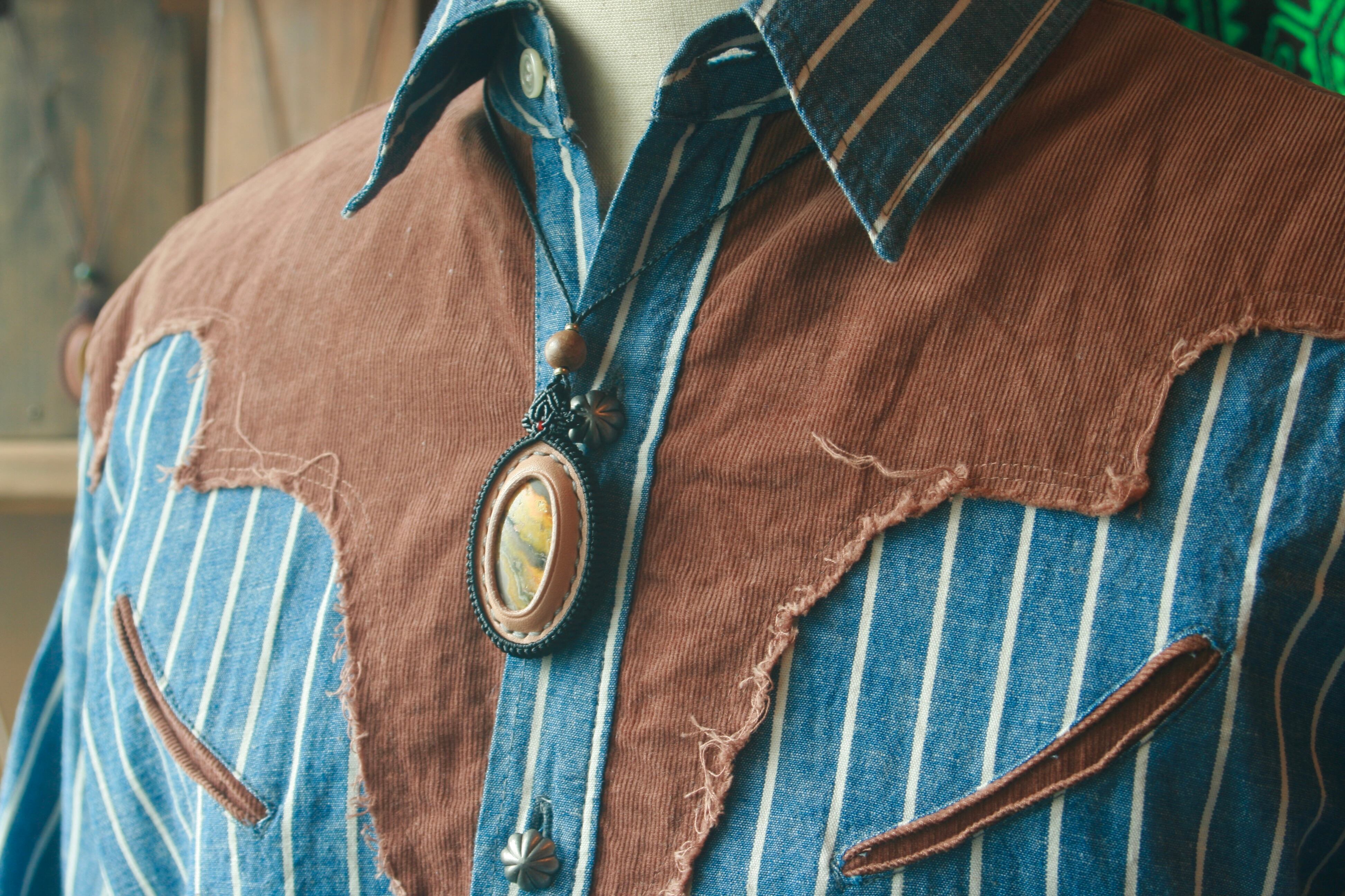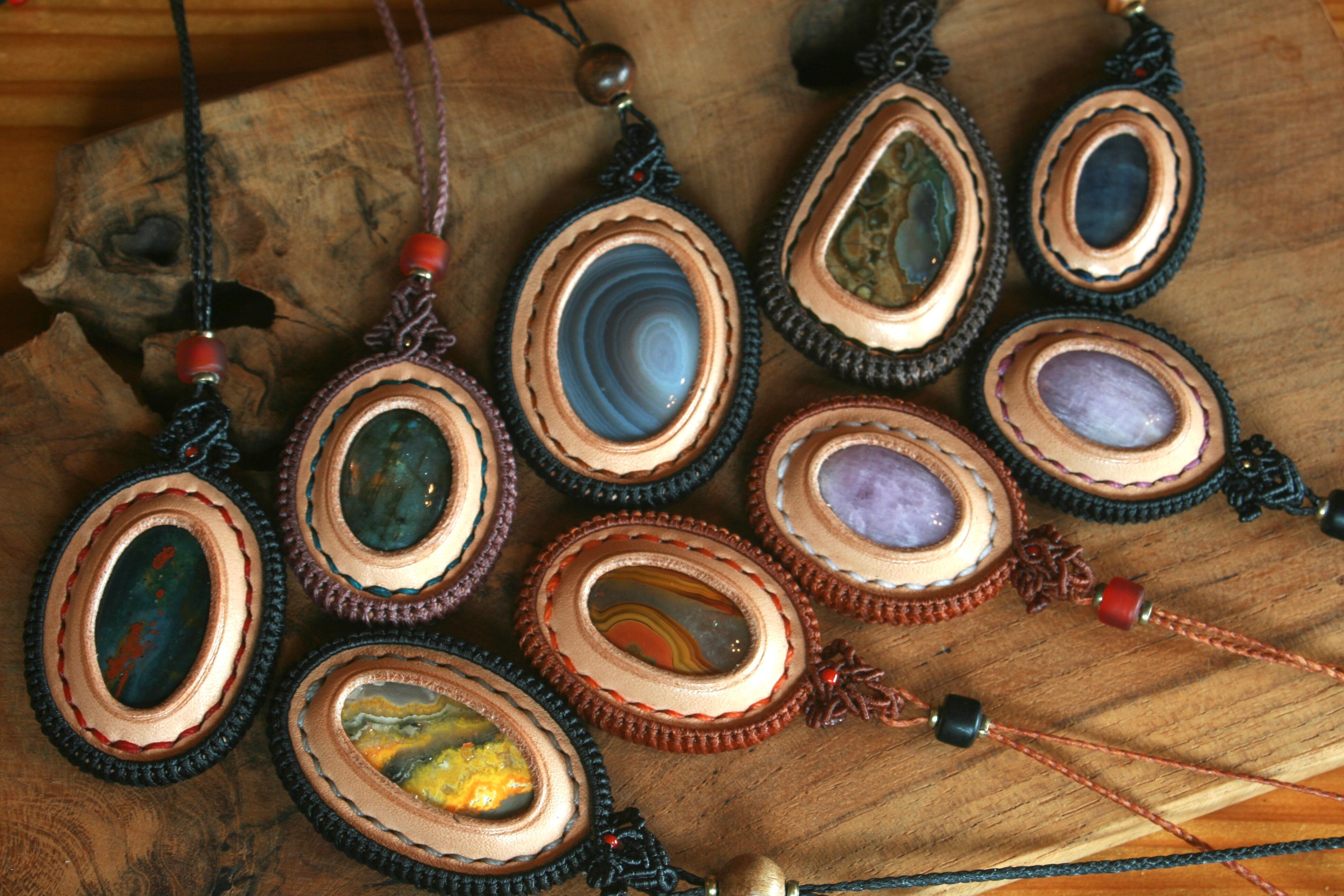 【エクリプスジャスパー】天然石の革包MACRAMEネックレス