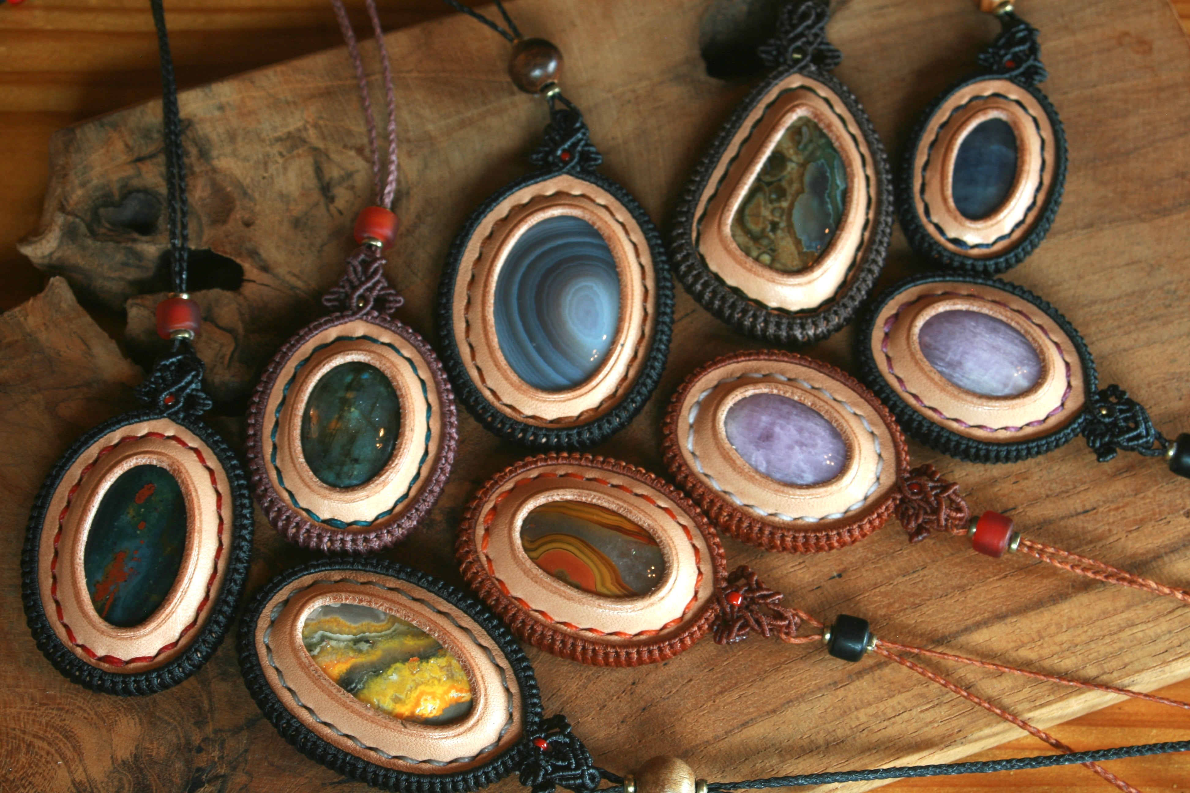 【ブラッドストーン】天然石の革包MACRAMEネックレス