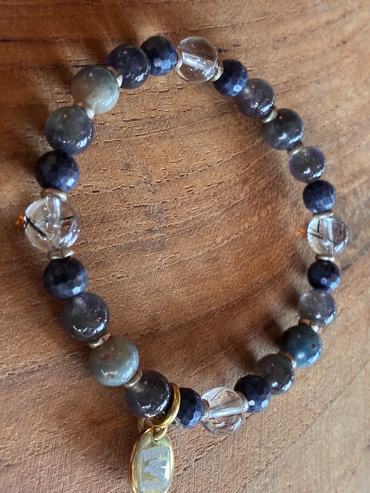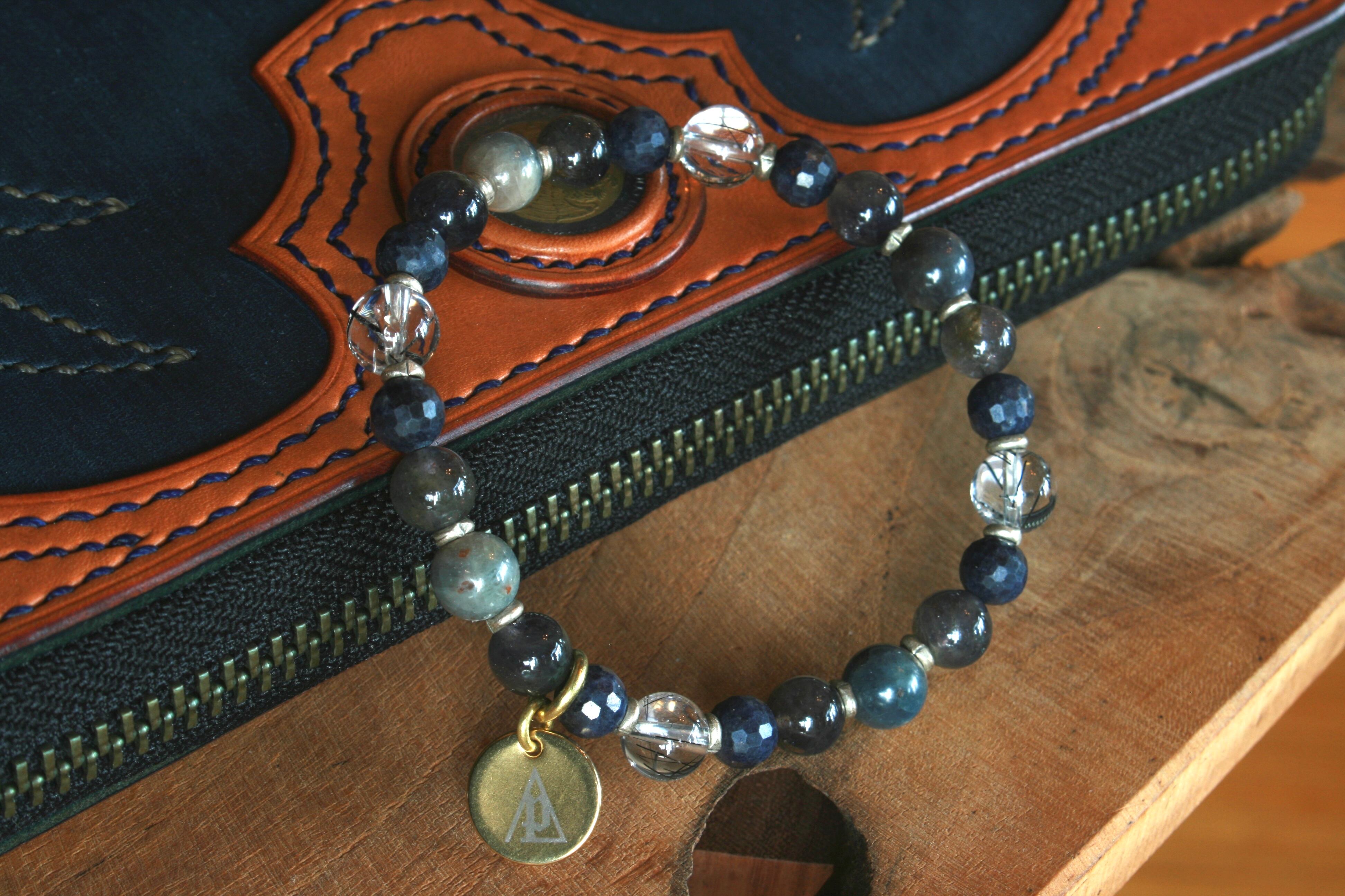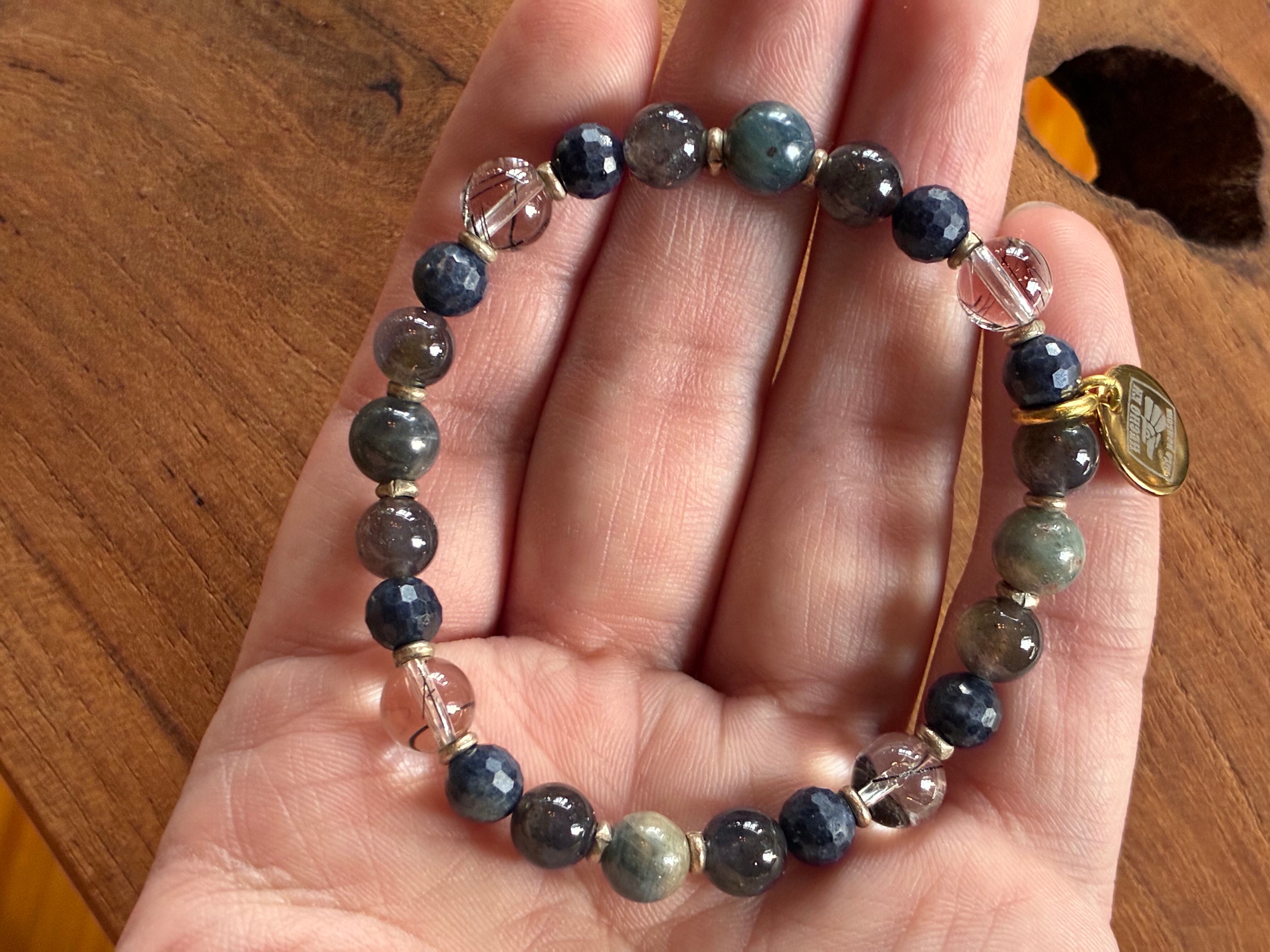 9月誕生石【サファイア×ブラックルチルクォーツ】ゴムタイプブレスレット