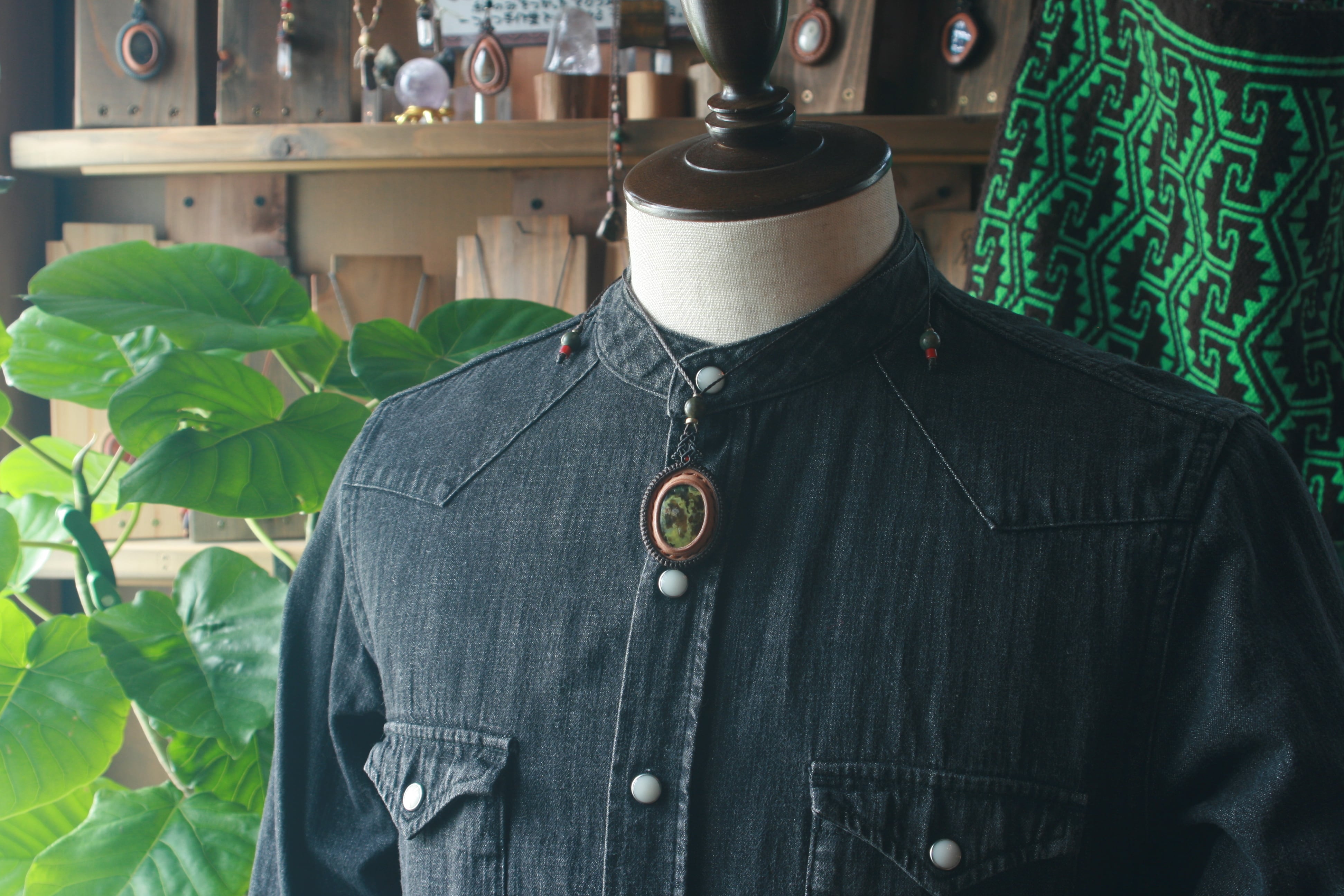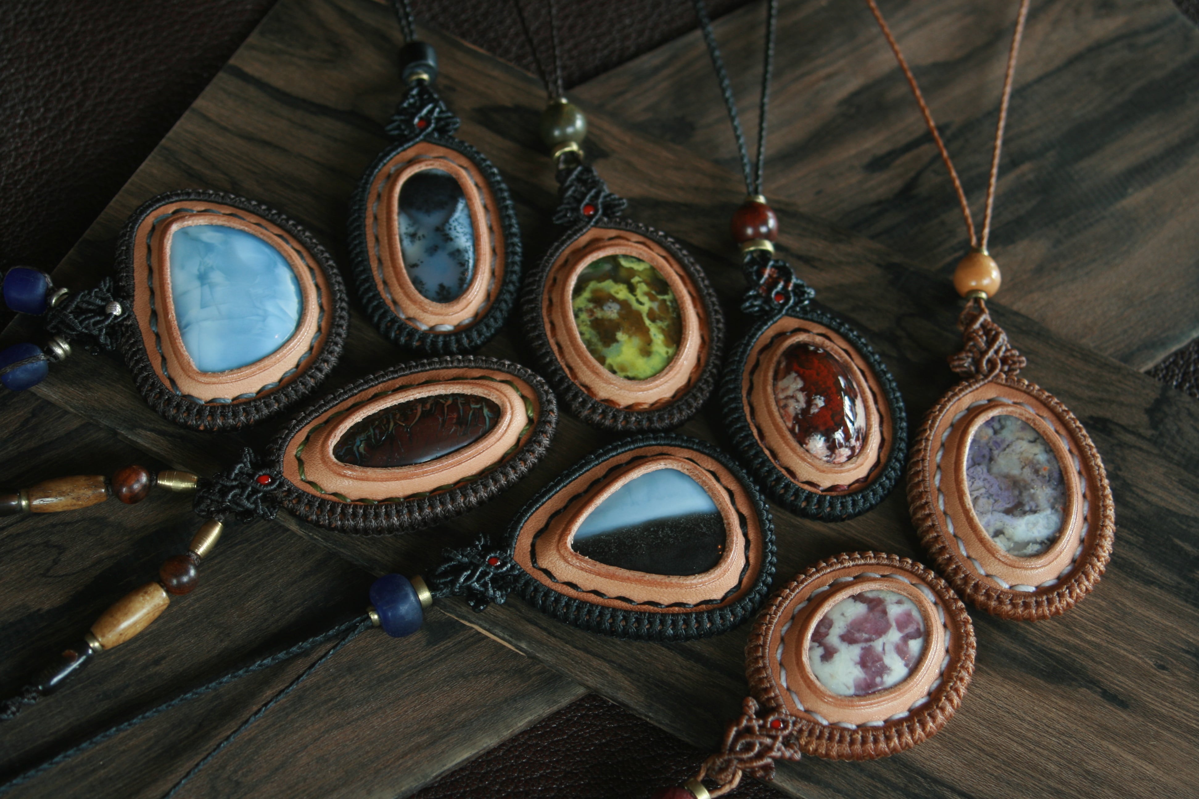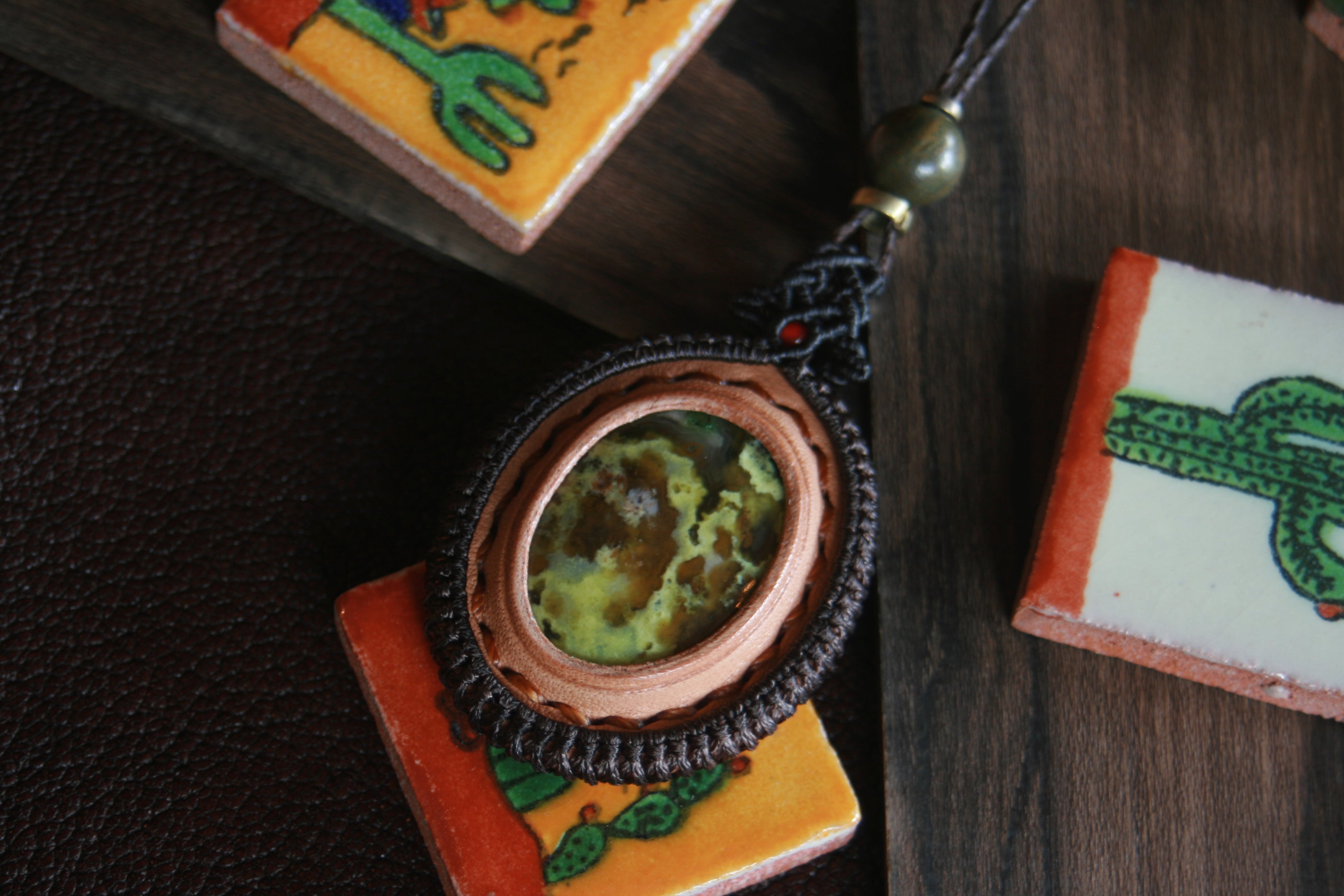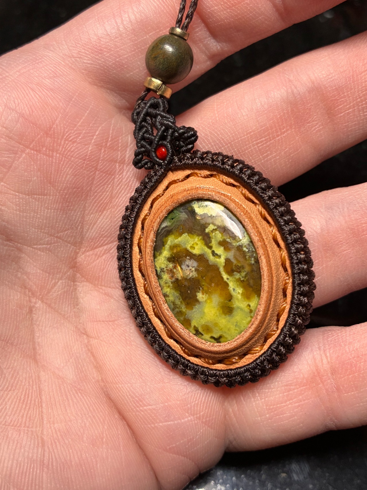 10月誕生石【グリーンオパール】革包MACRAMEネックレス