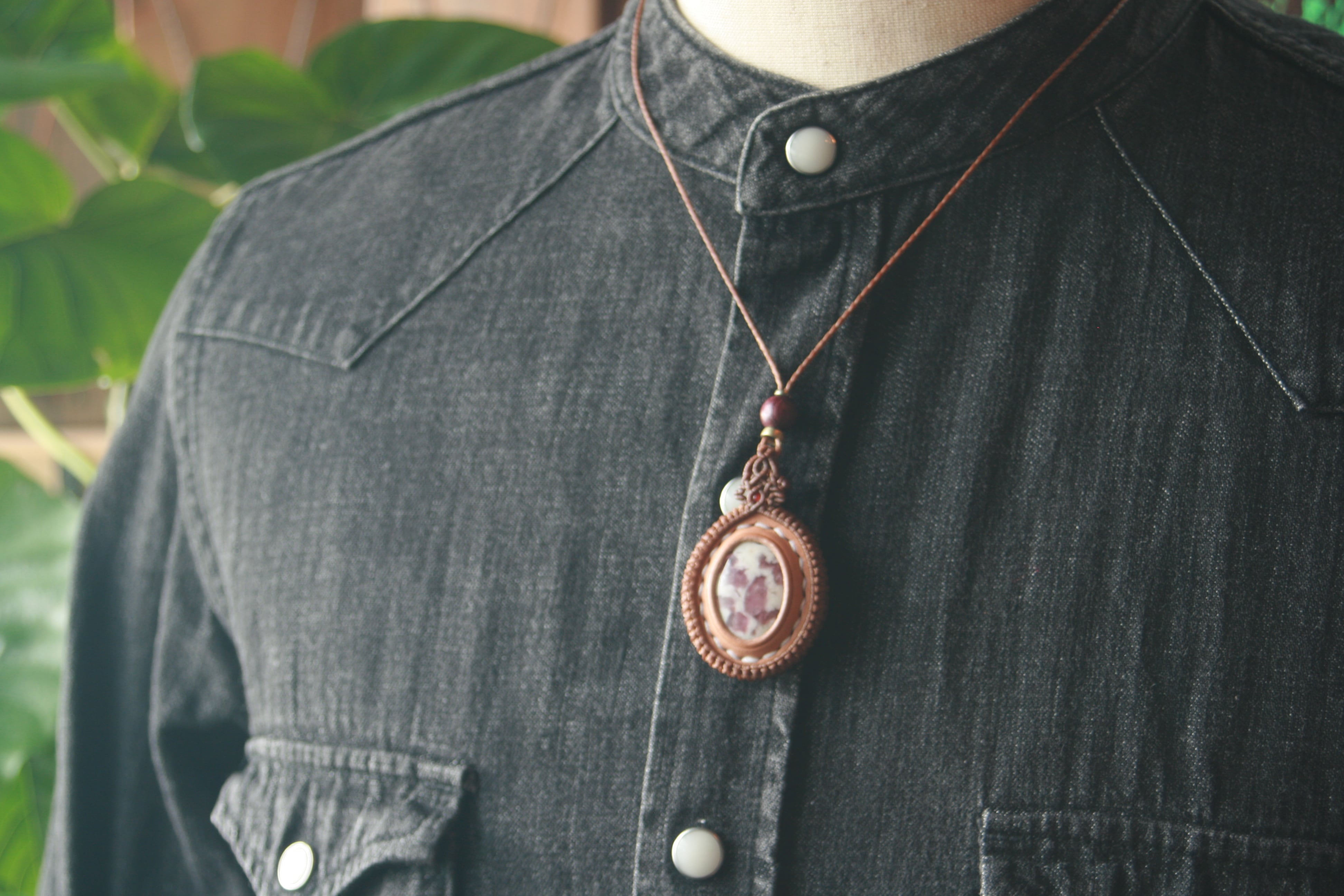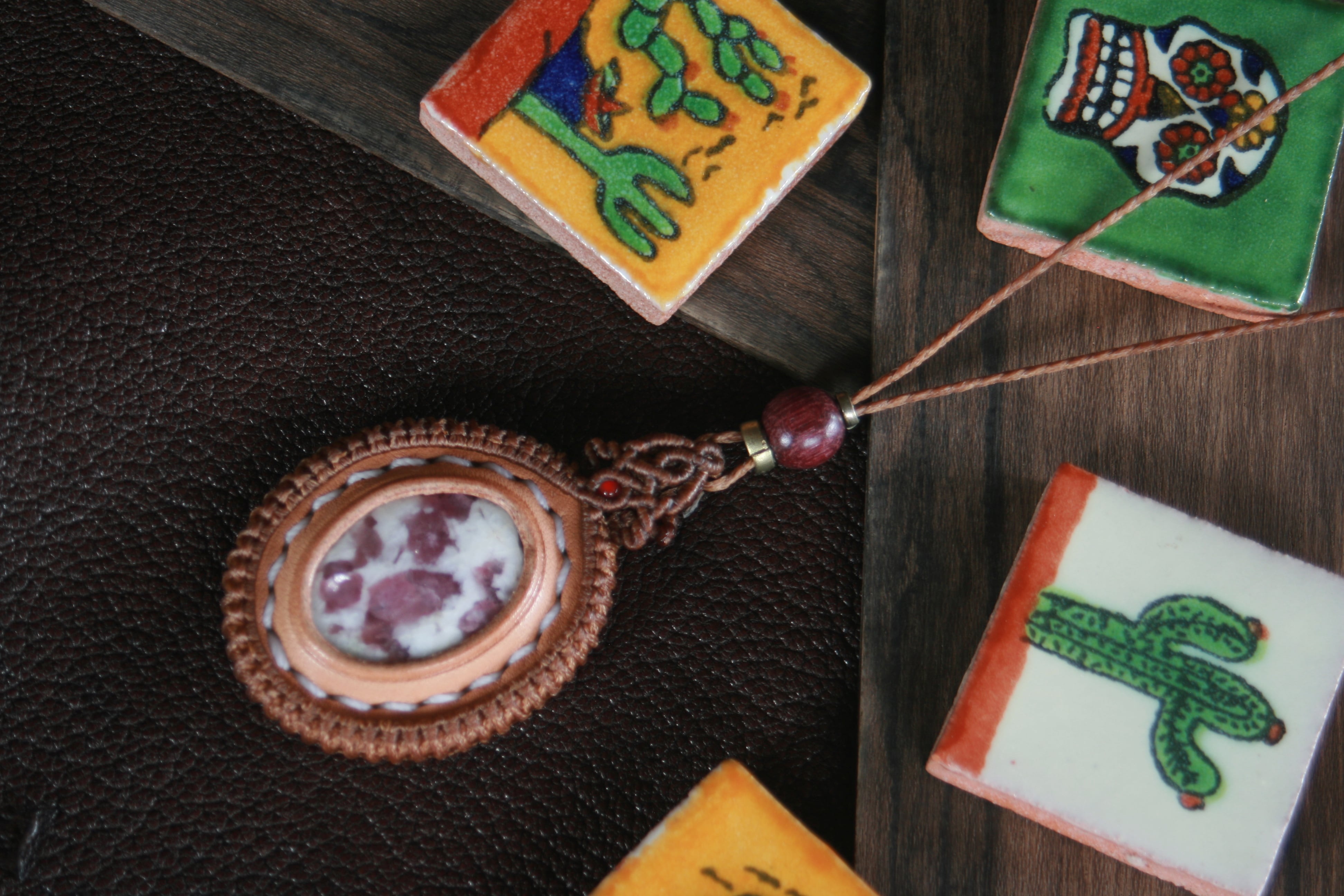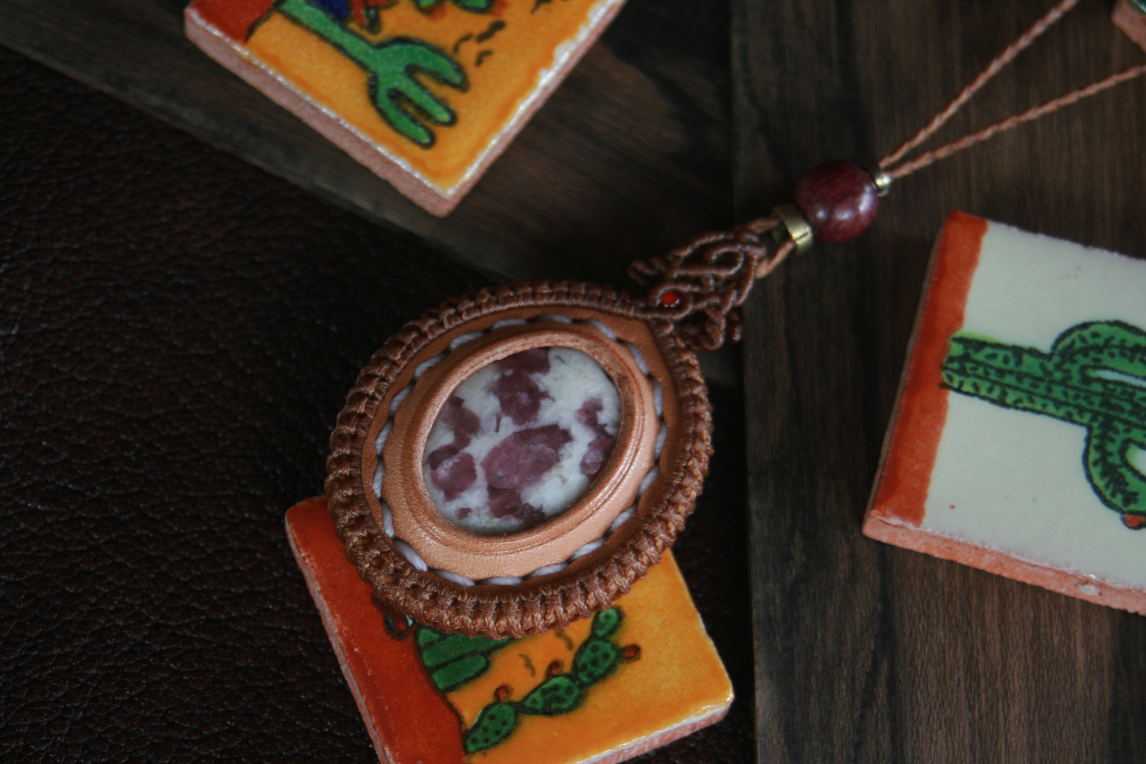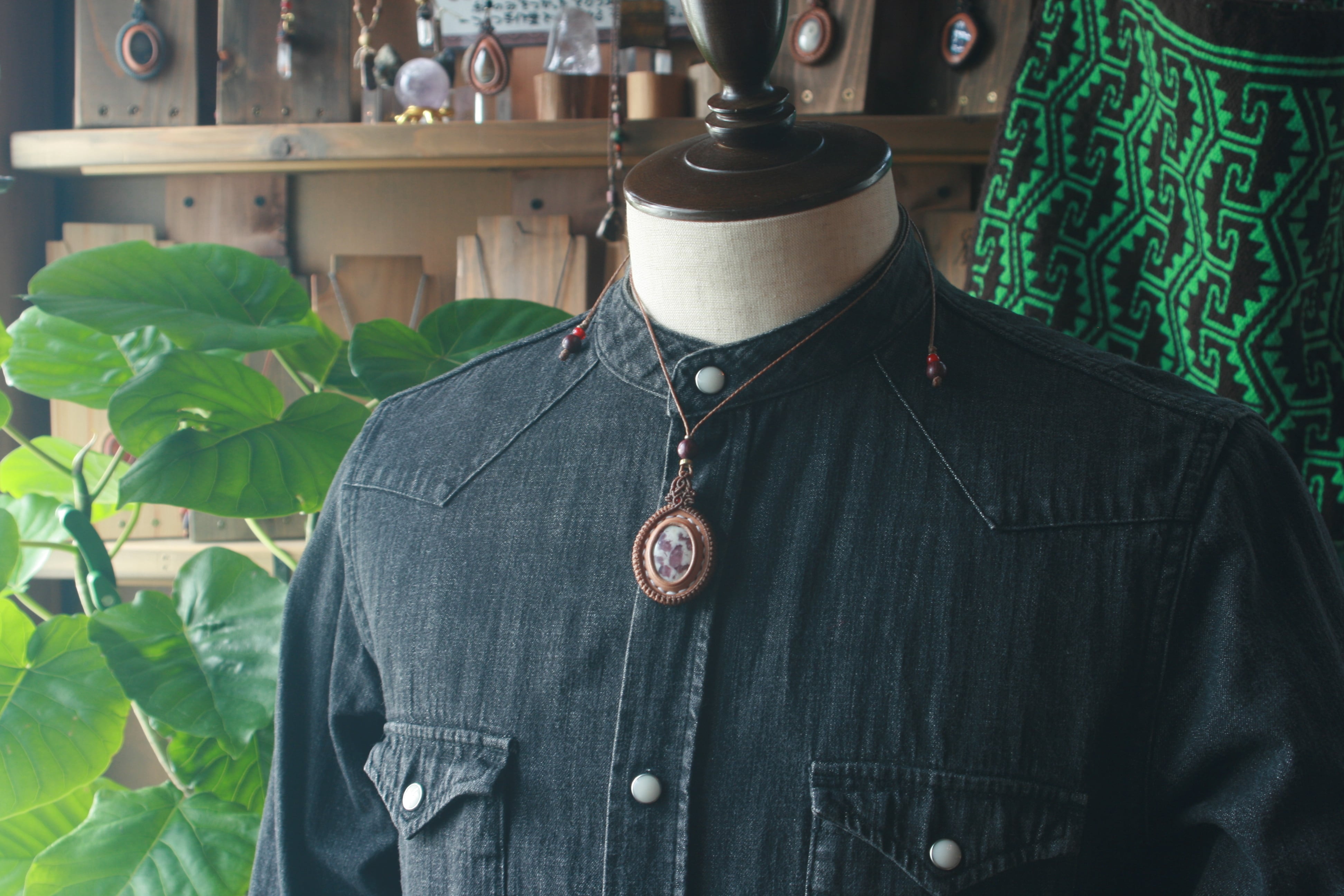 10月誕生石【ピンクトルマリンinクォーツ】革包MACRAMEネックレス