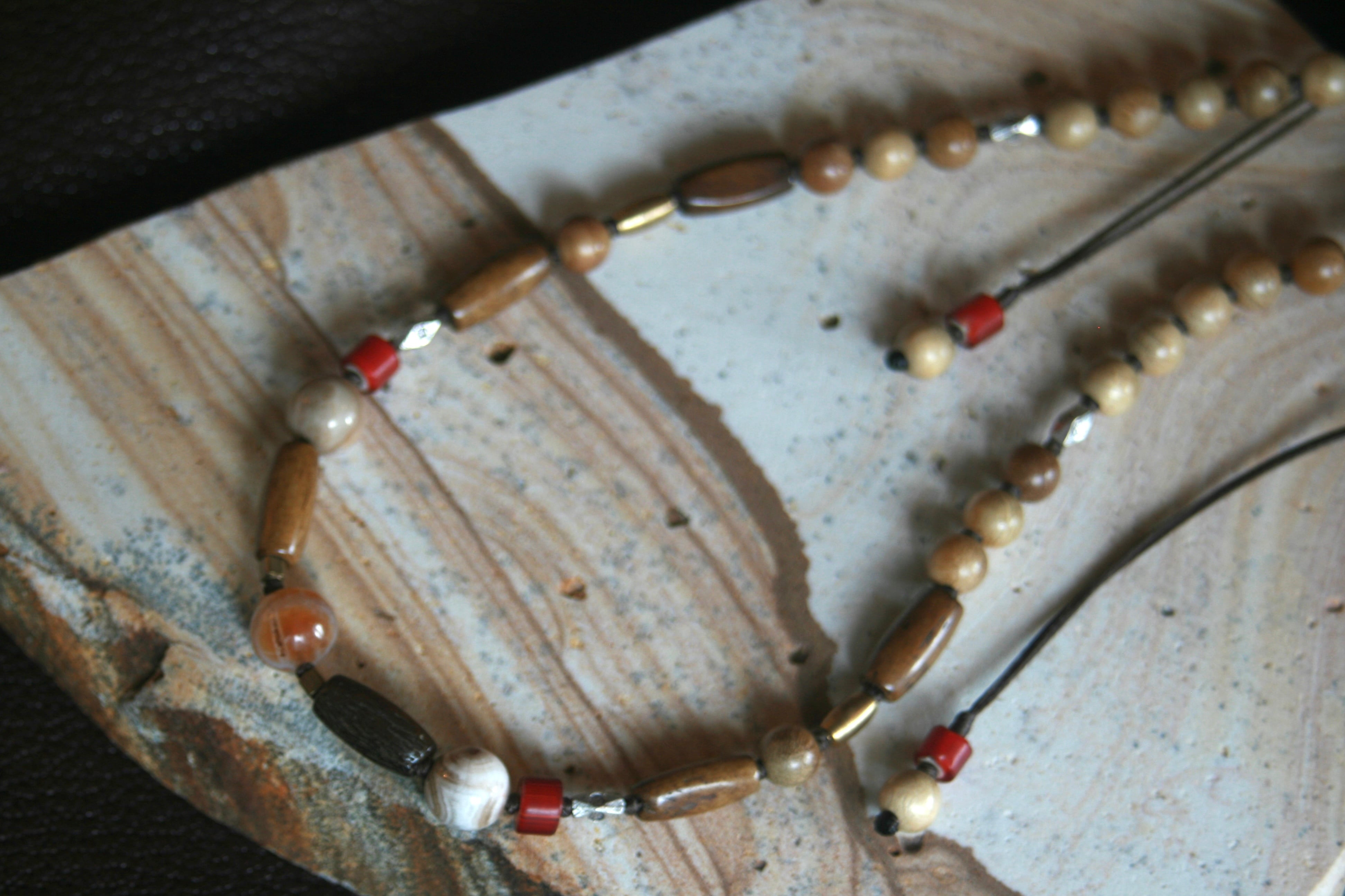 イタリア、アフリカ、メキシコ、インドネシア、ネパール等の民族ビーズ、トレードビーズを使用。