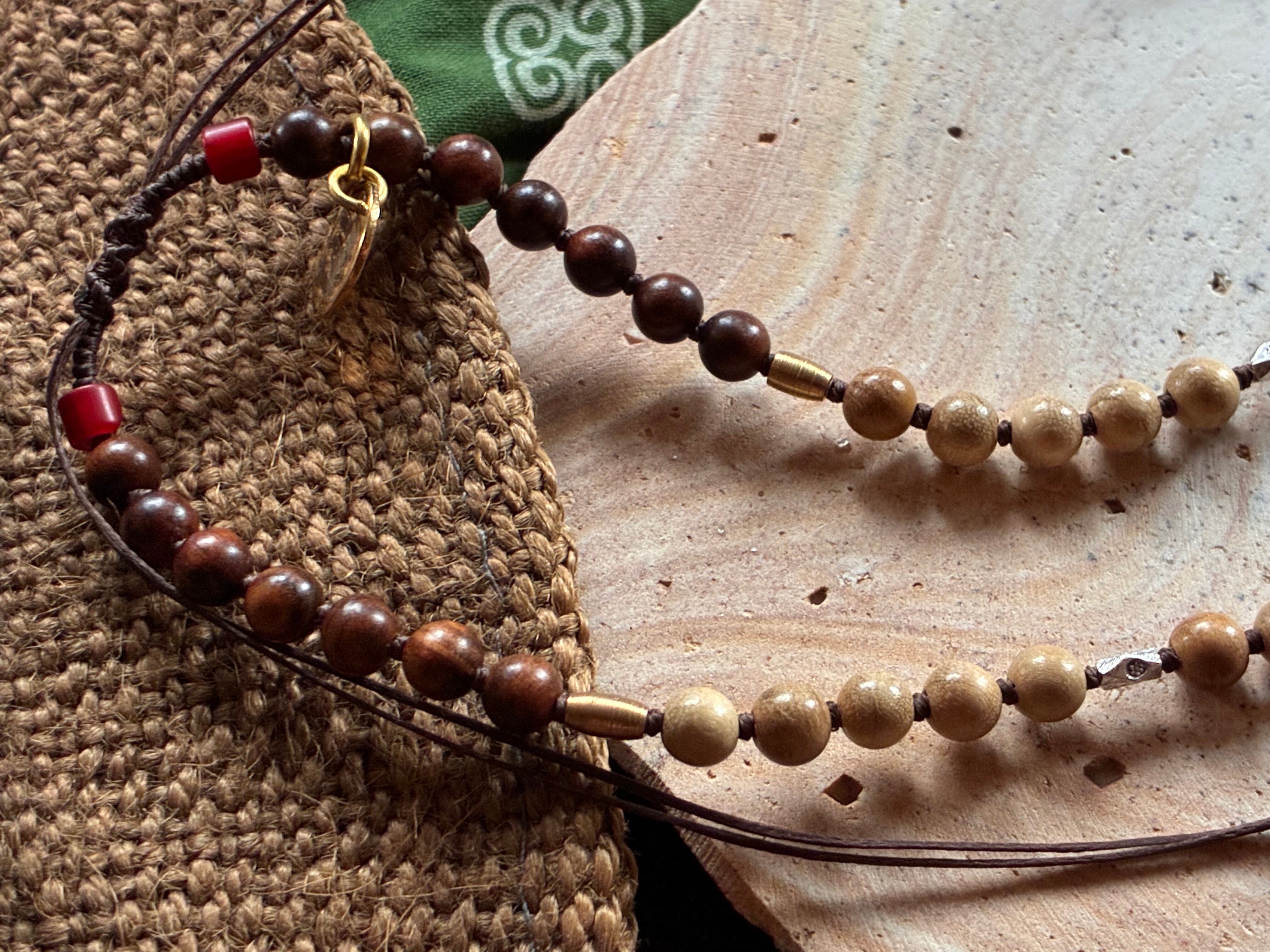 10月誕生石【ファイヤーオパール】ウッドビーズネックレス