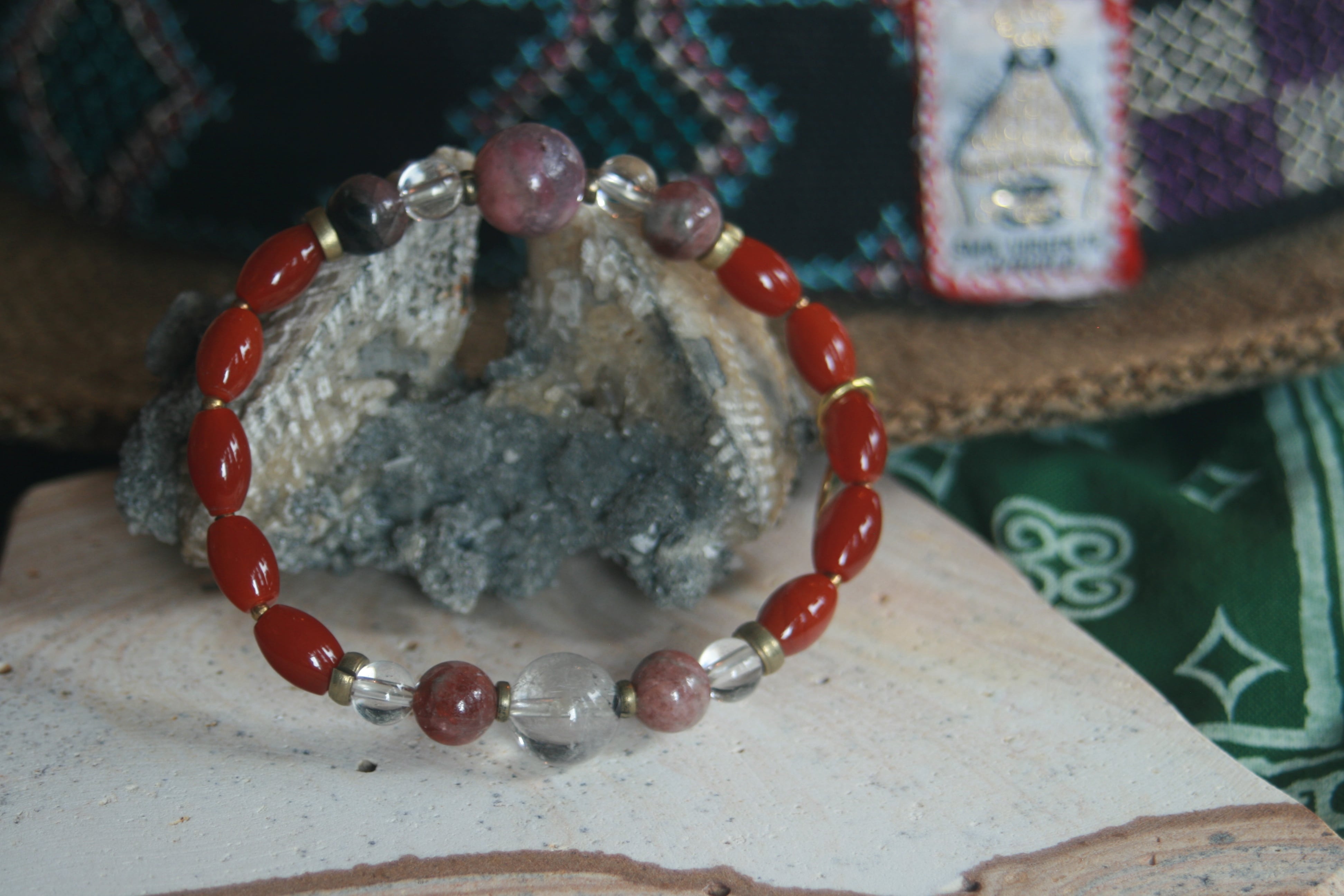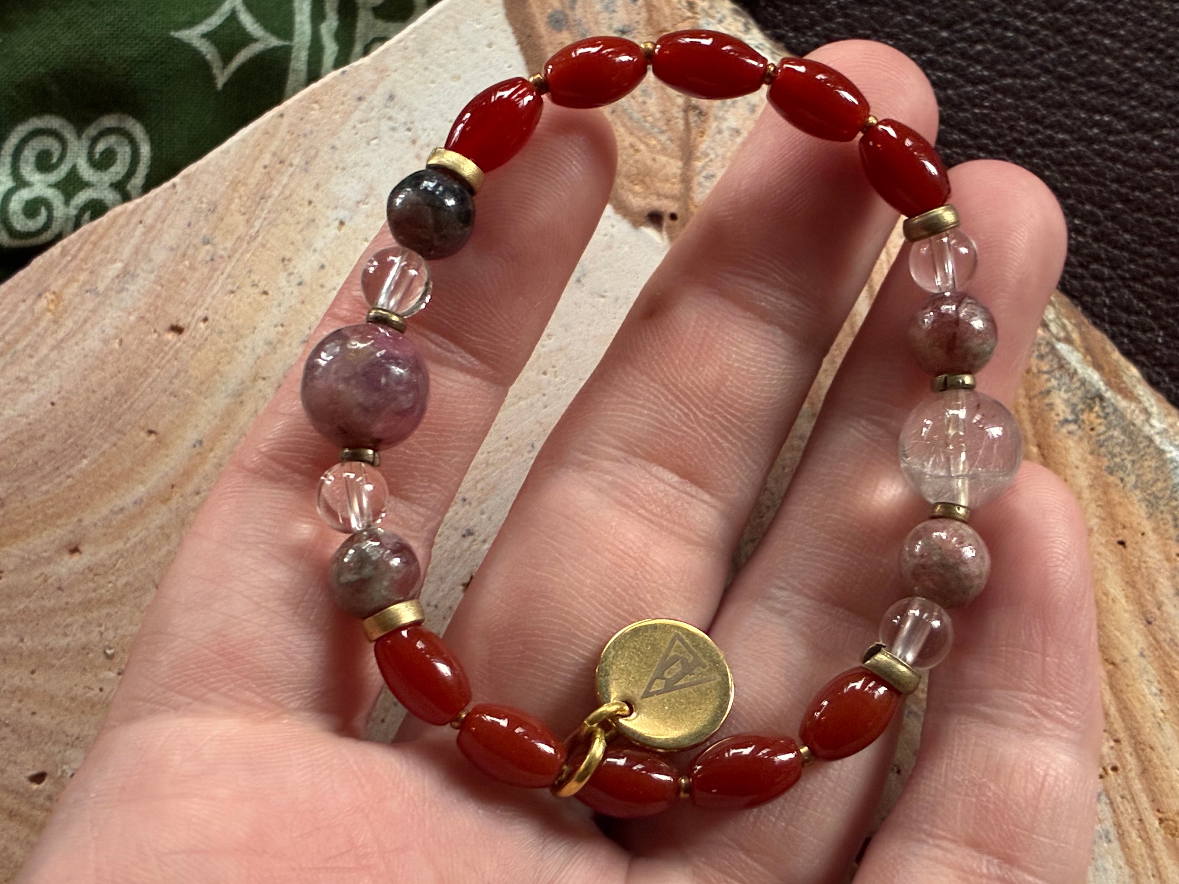 10月誕生石【ルベライト×プラチナルチルクォーツ】ゴムタイプブレスレット