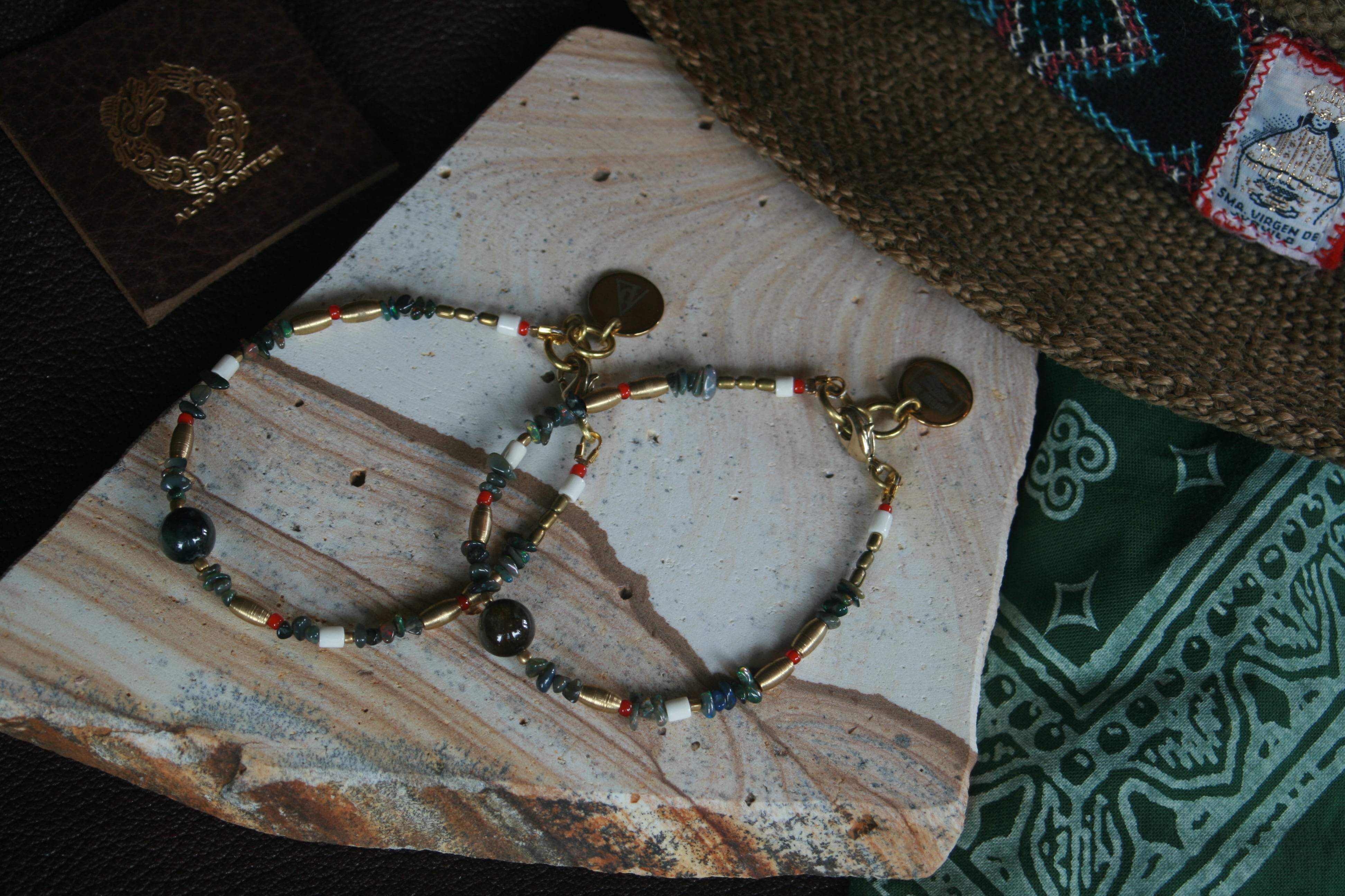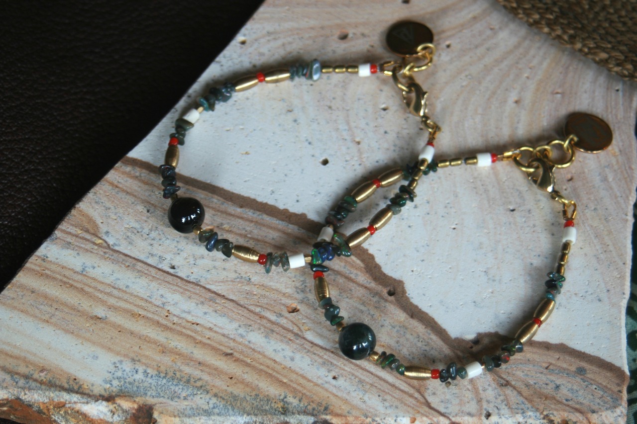 10月誕生石【ドラバイト×ブラックオパール】ワイヤーブレスレット