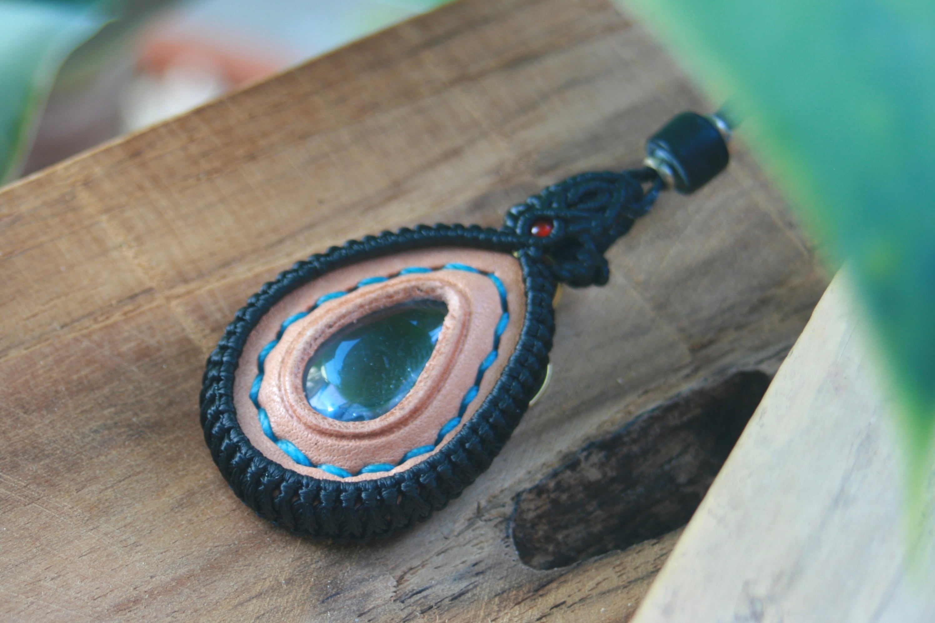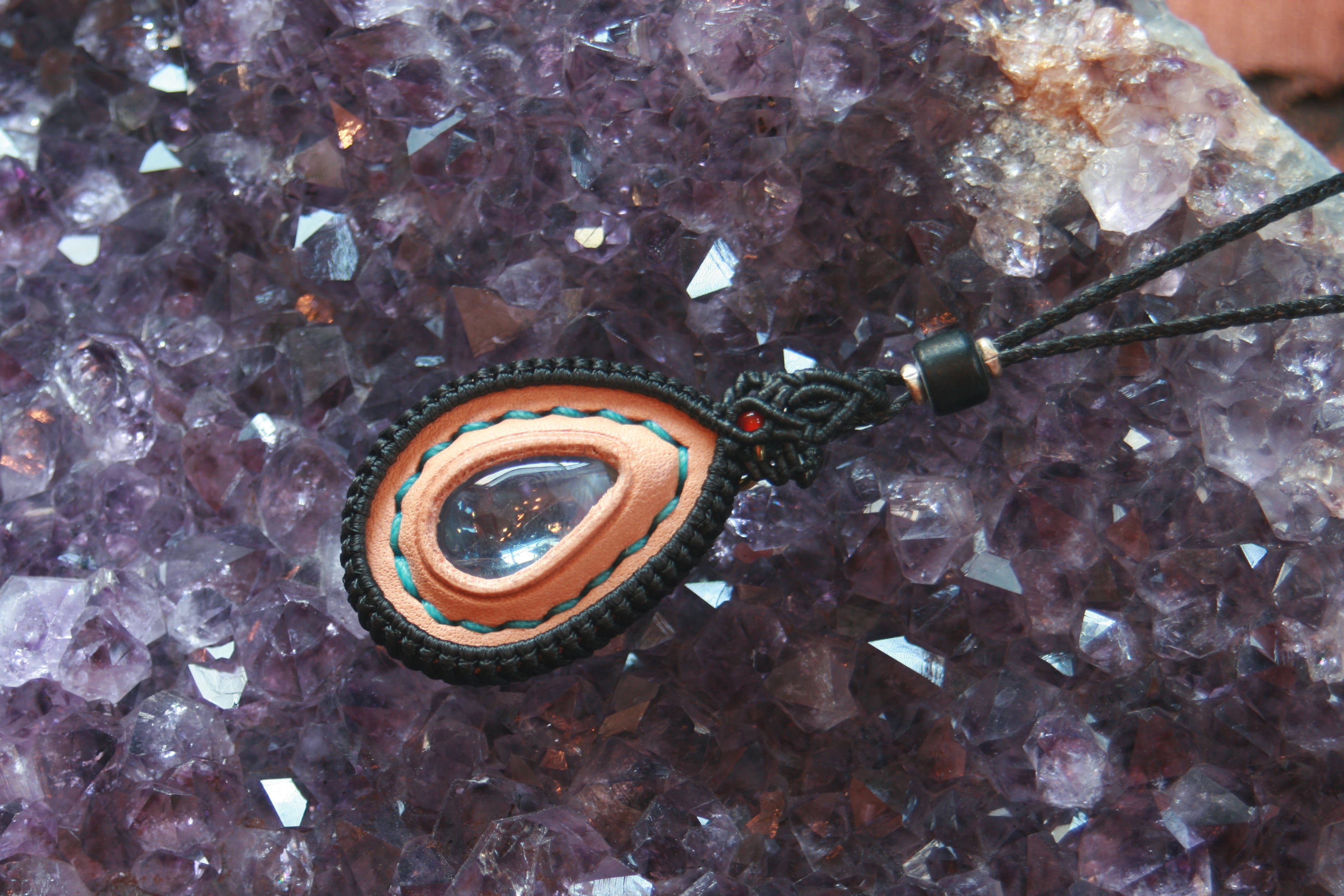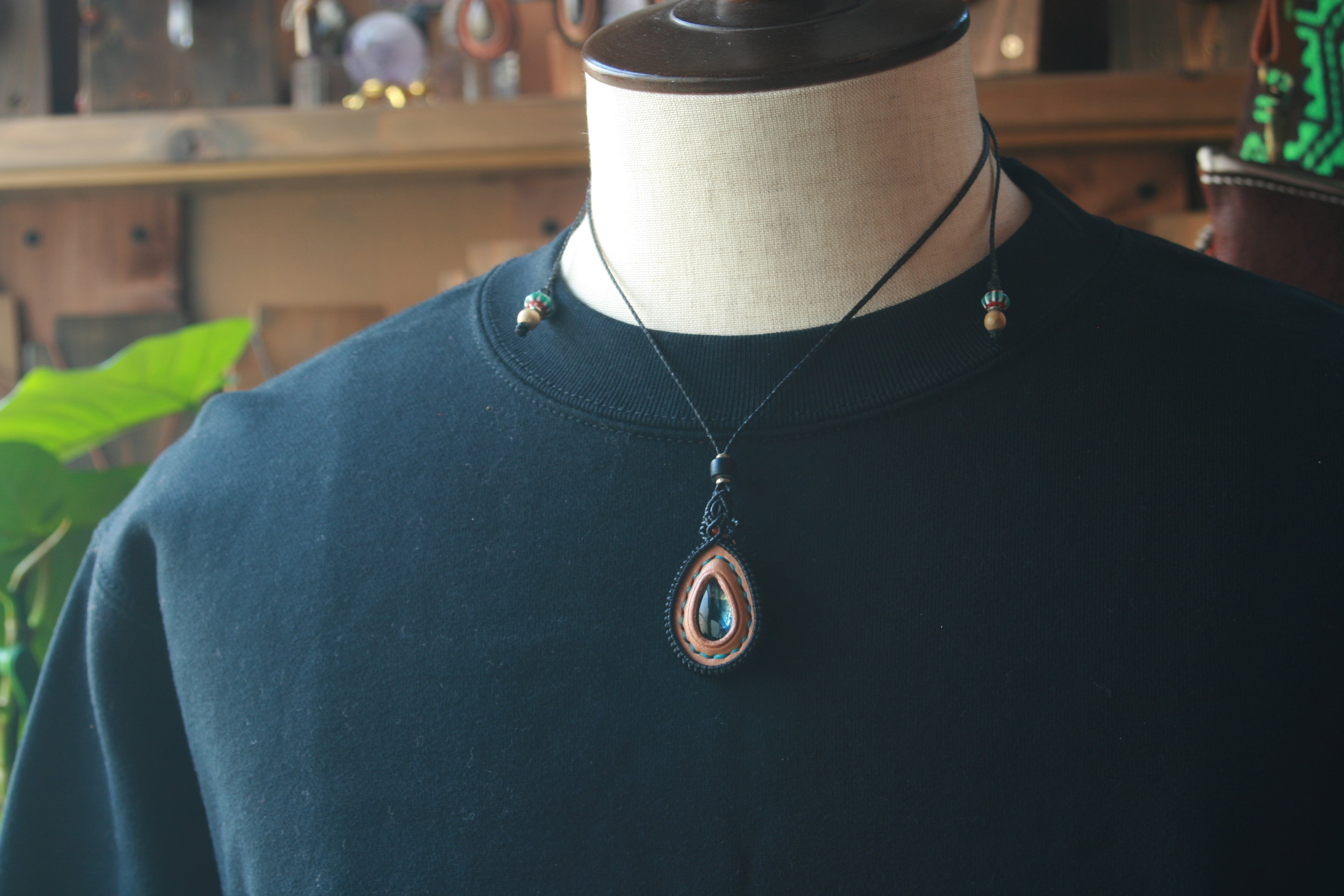 11月誕生石【ブルートパーズ】革包MACRAMEネックレス