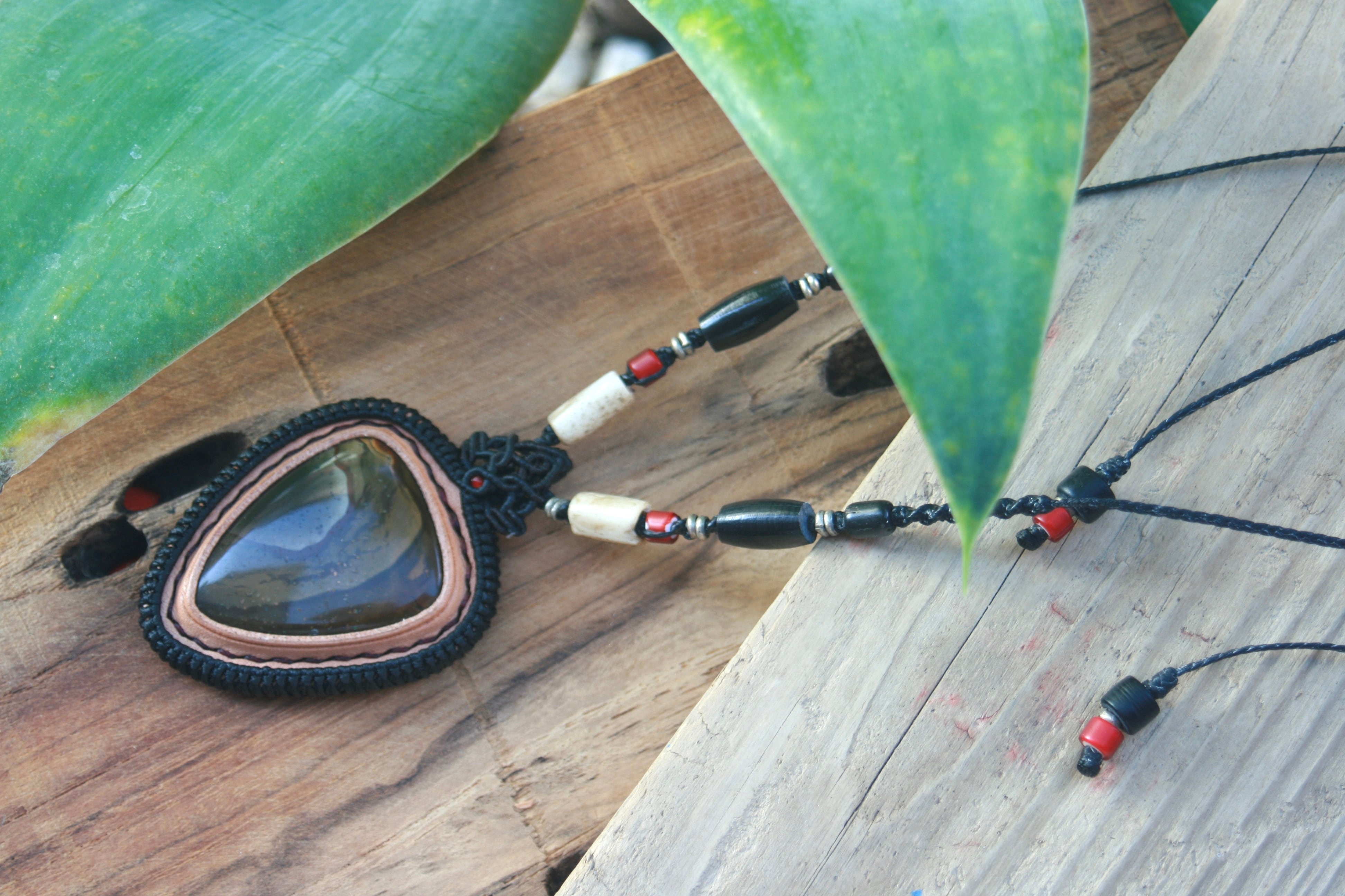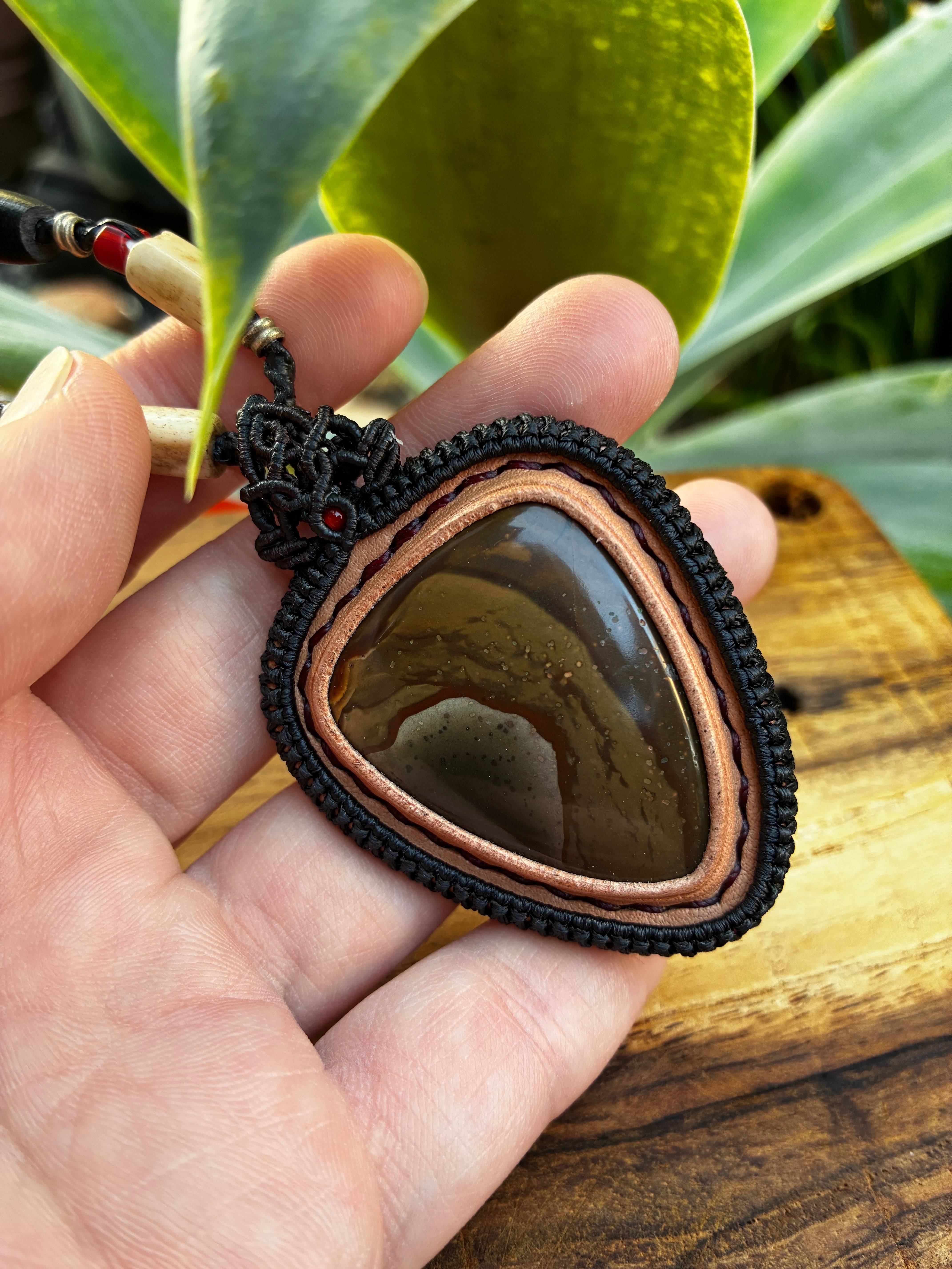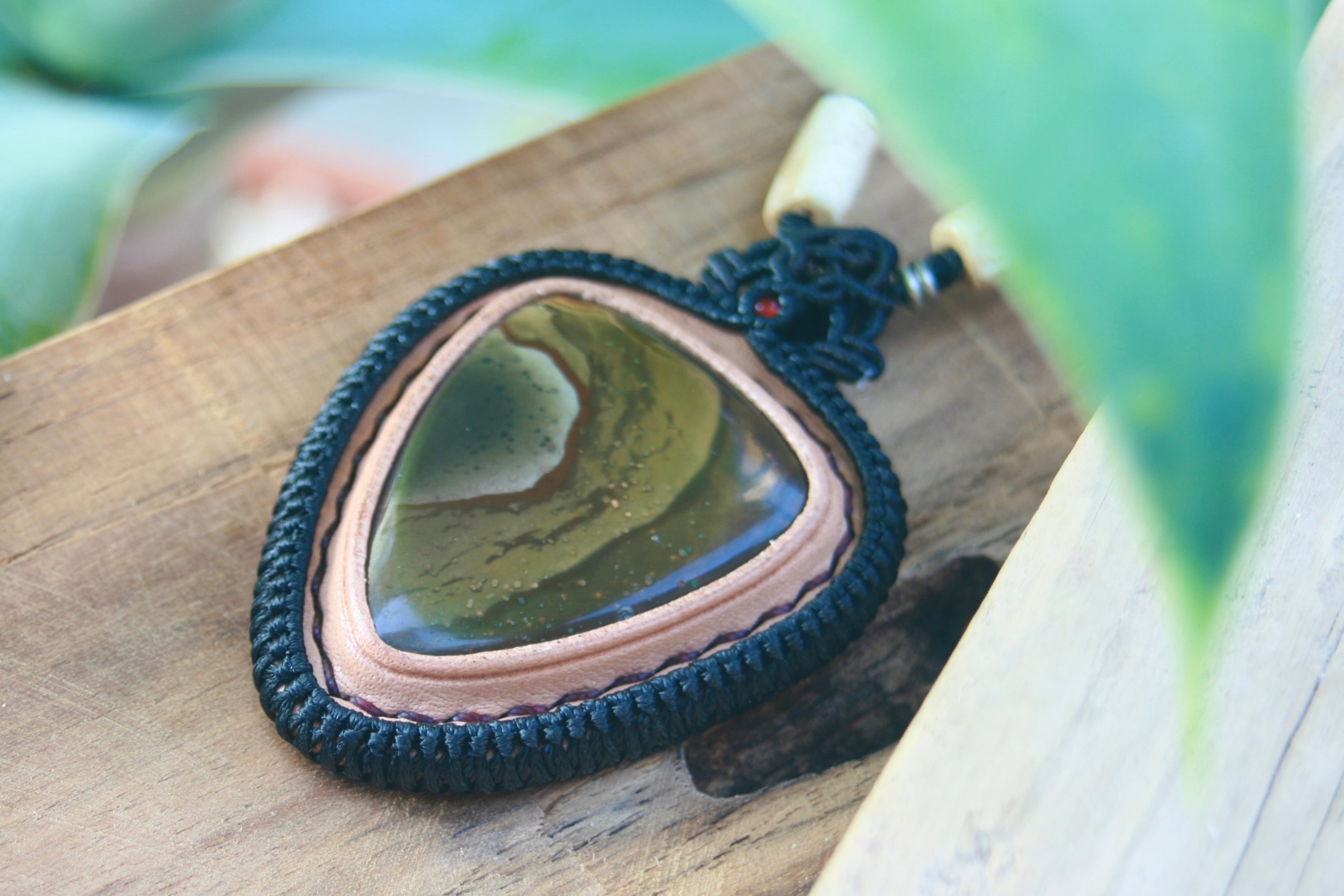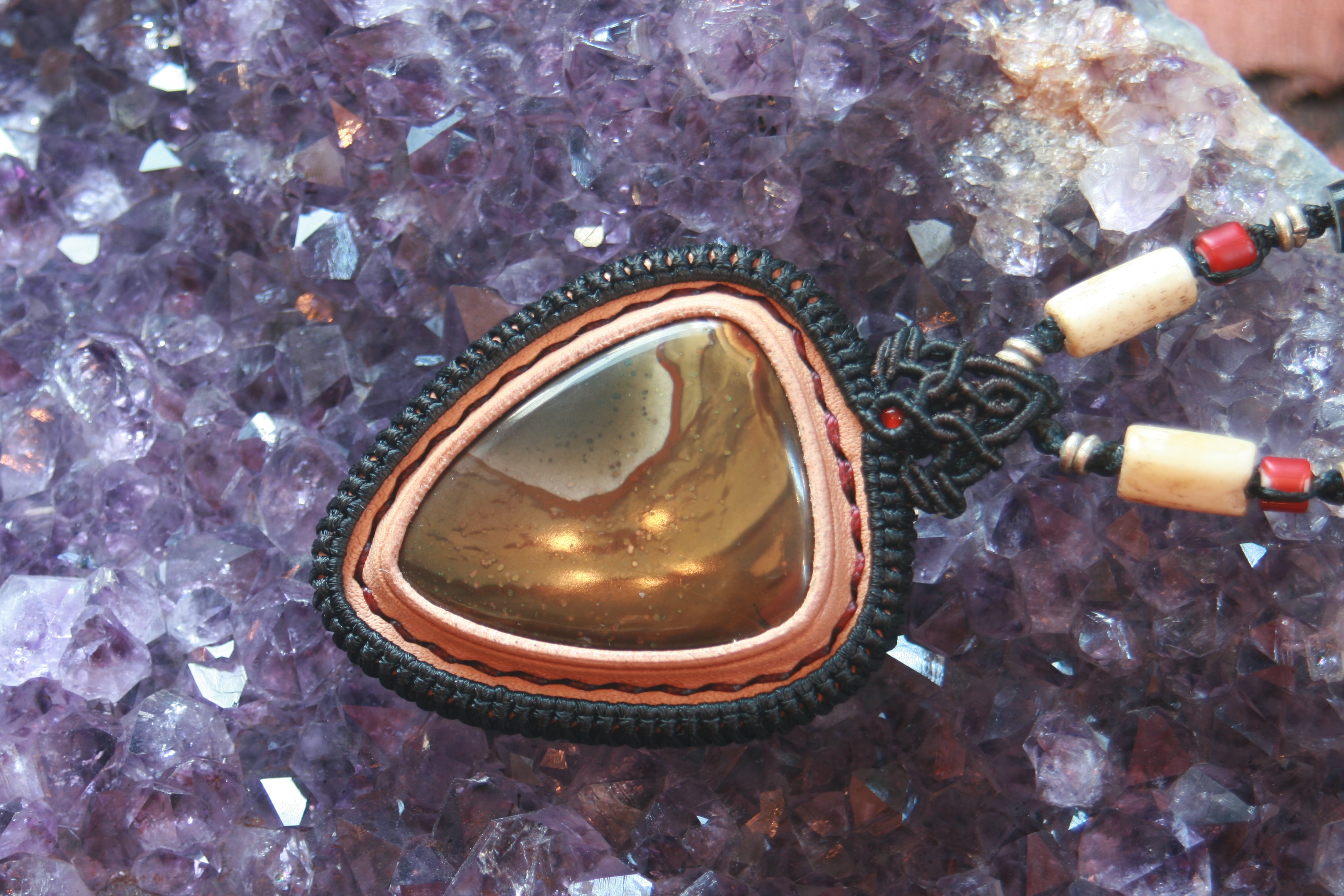 【ポリクロームジャスパー】革包MACRAMEネックレス