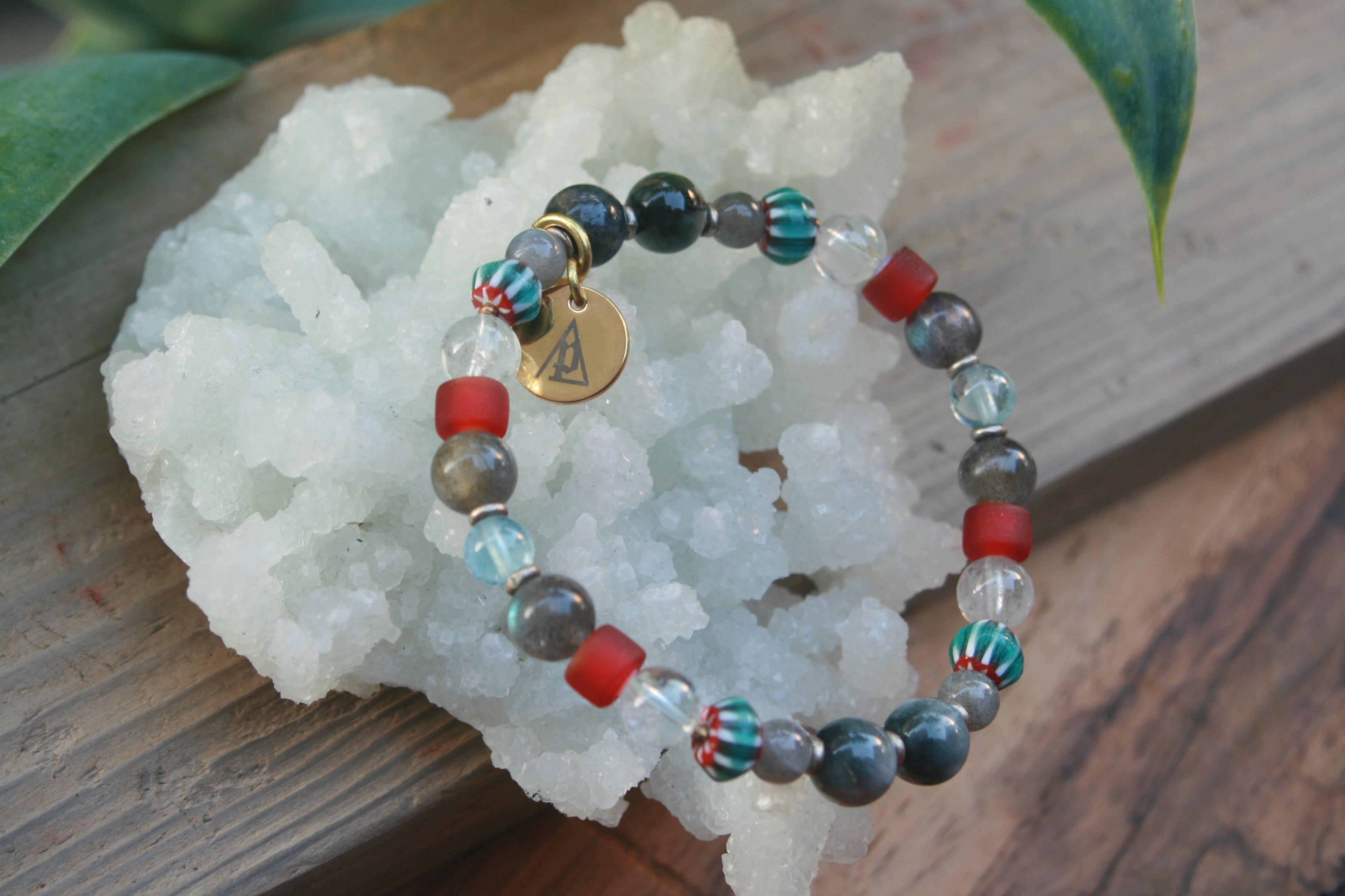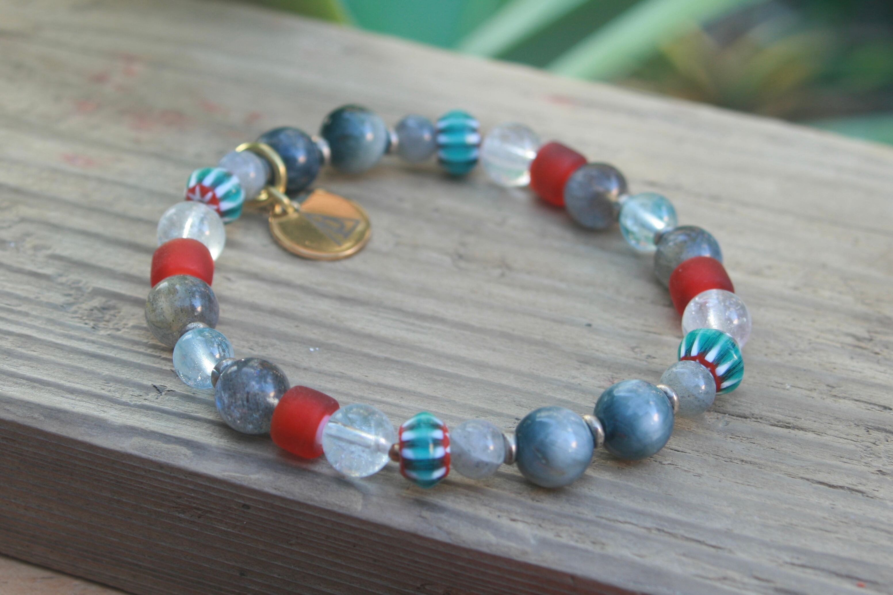 11月誕生石【トパーズ×ラブラドライト】ゴムタイプブレスレット