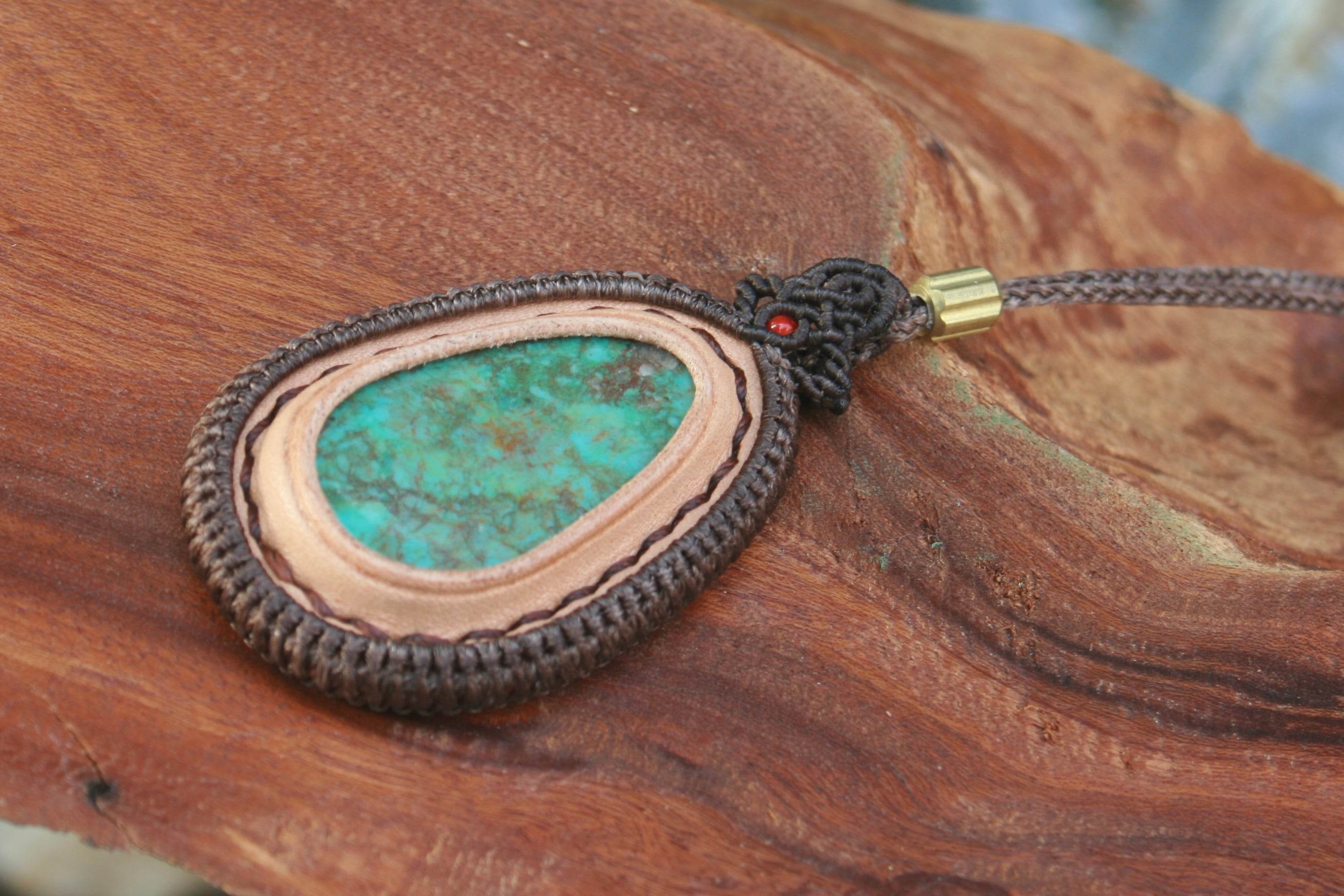 12月誕生石【レッドマウンテンターコイズ】革包MACRAMEネックレス
