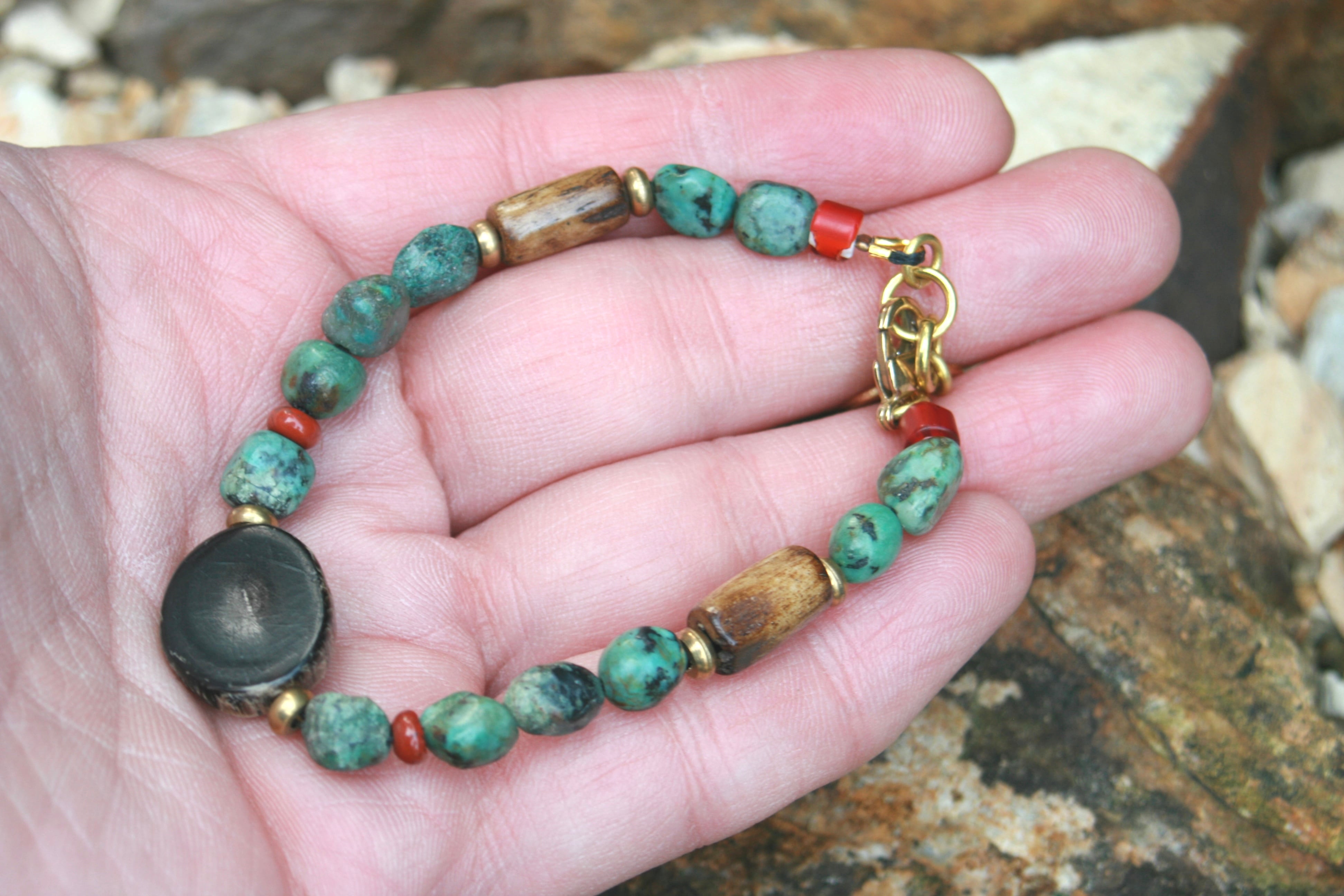 12月誕生石【チベットターコイズ×水牛】紐タイプ留め具式ブレスレット