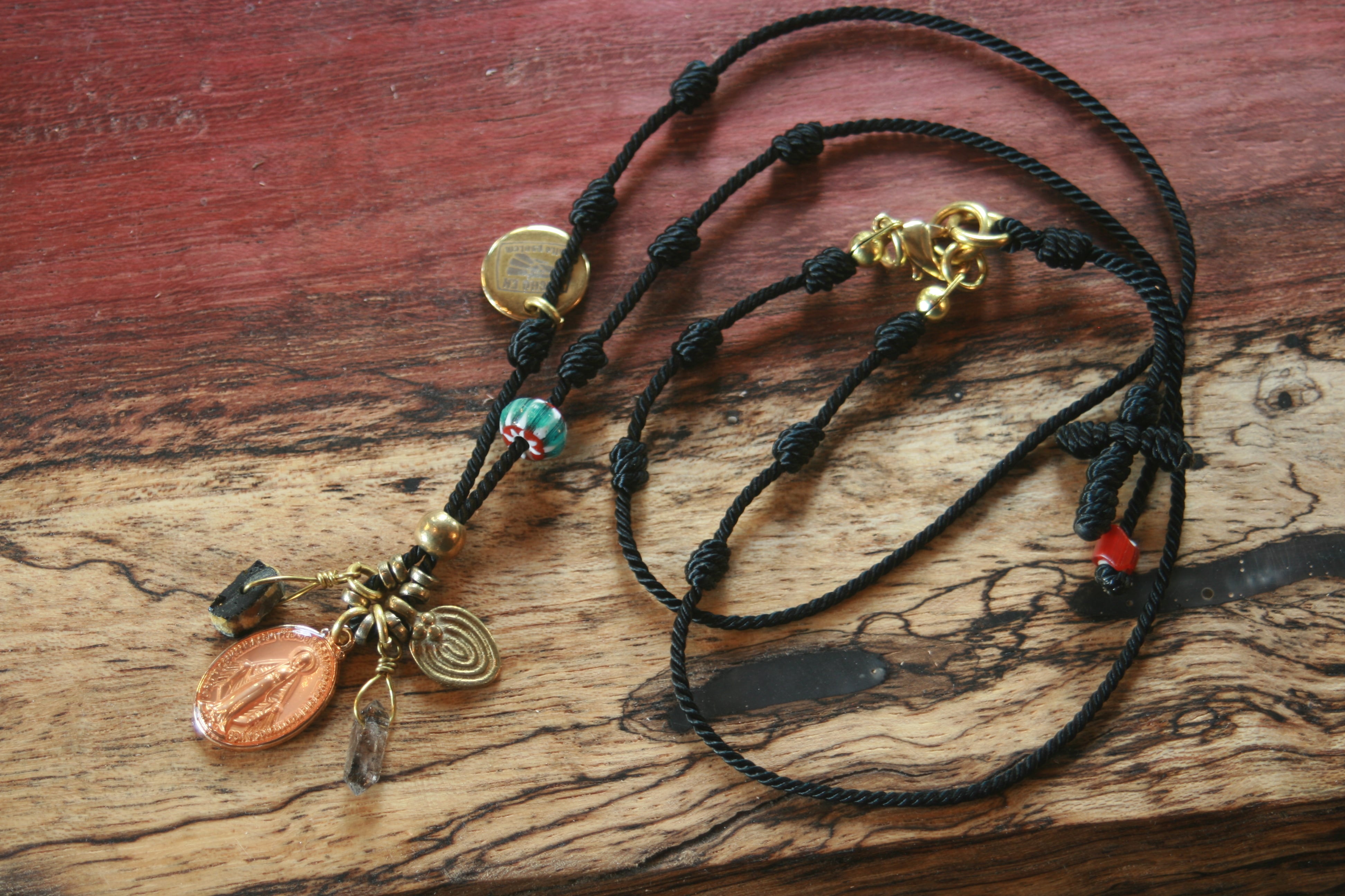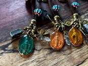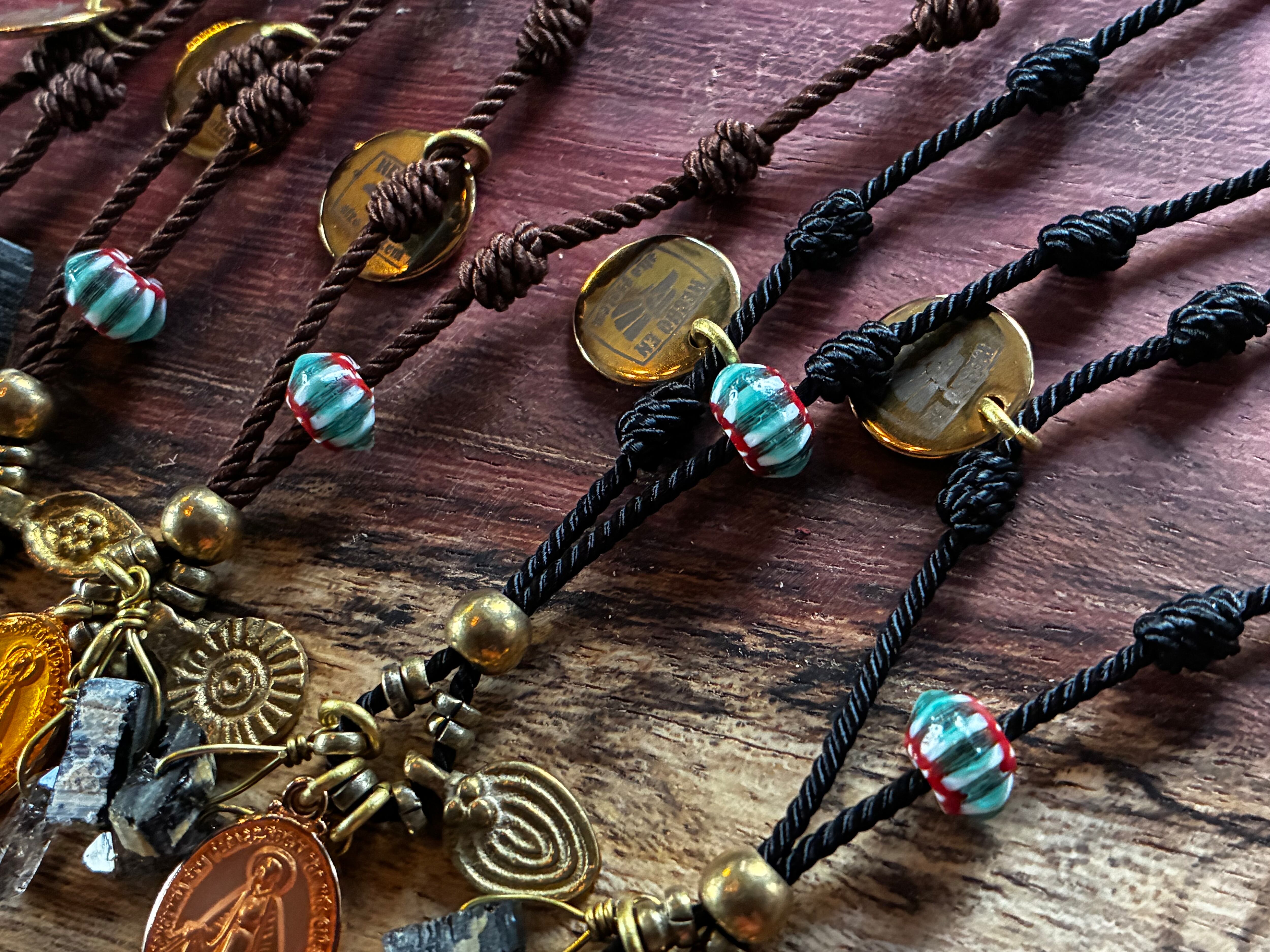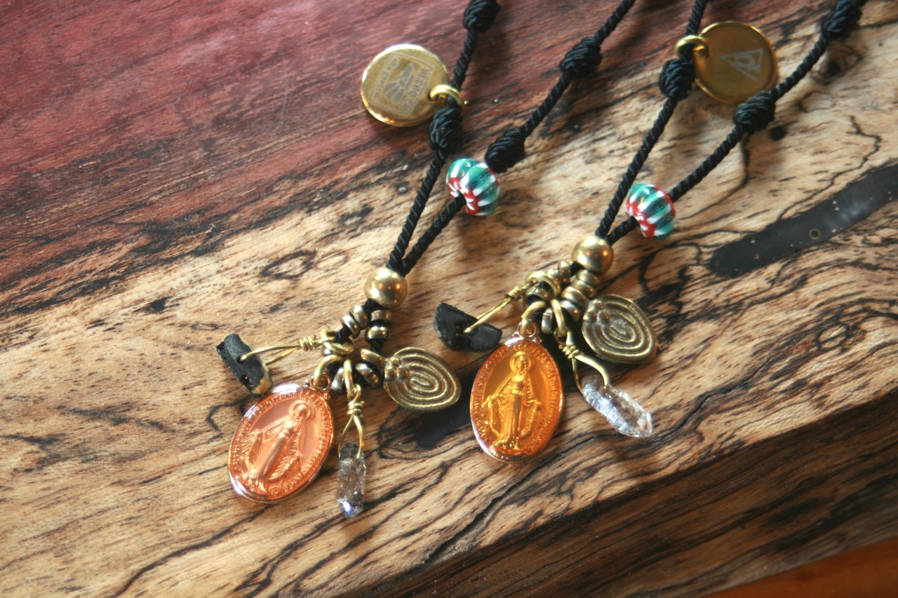 イタリア、アフリカ、メキシコ、インドネシア、ネパール等の民族ビーズ、トレードビーズを使用。