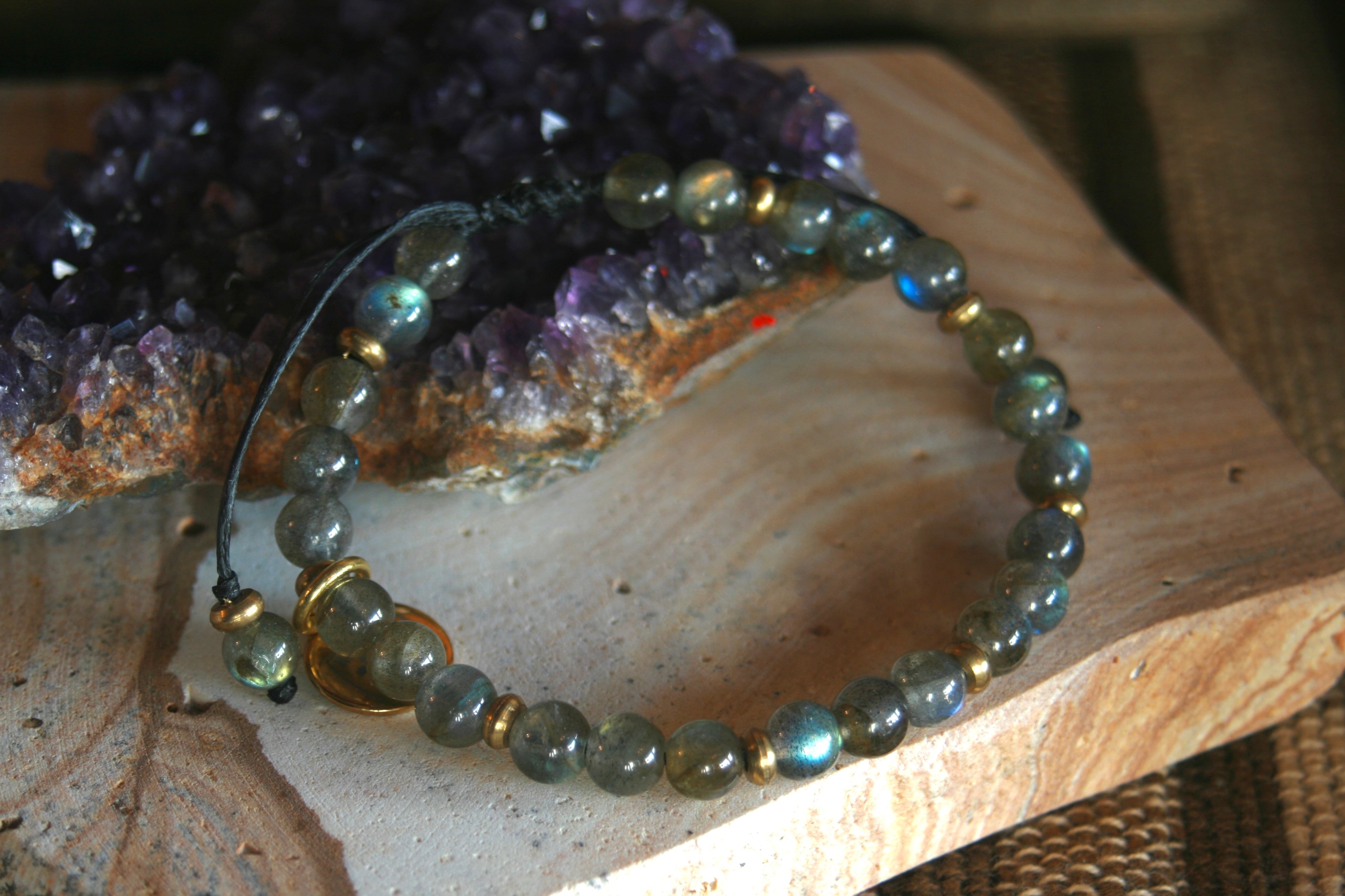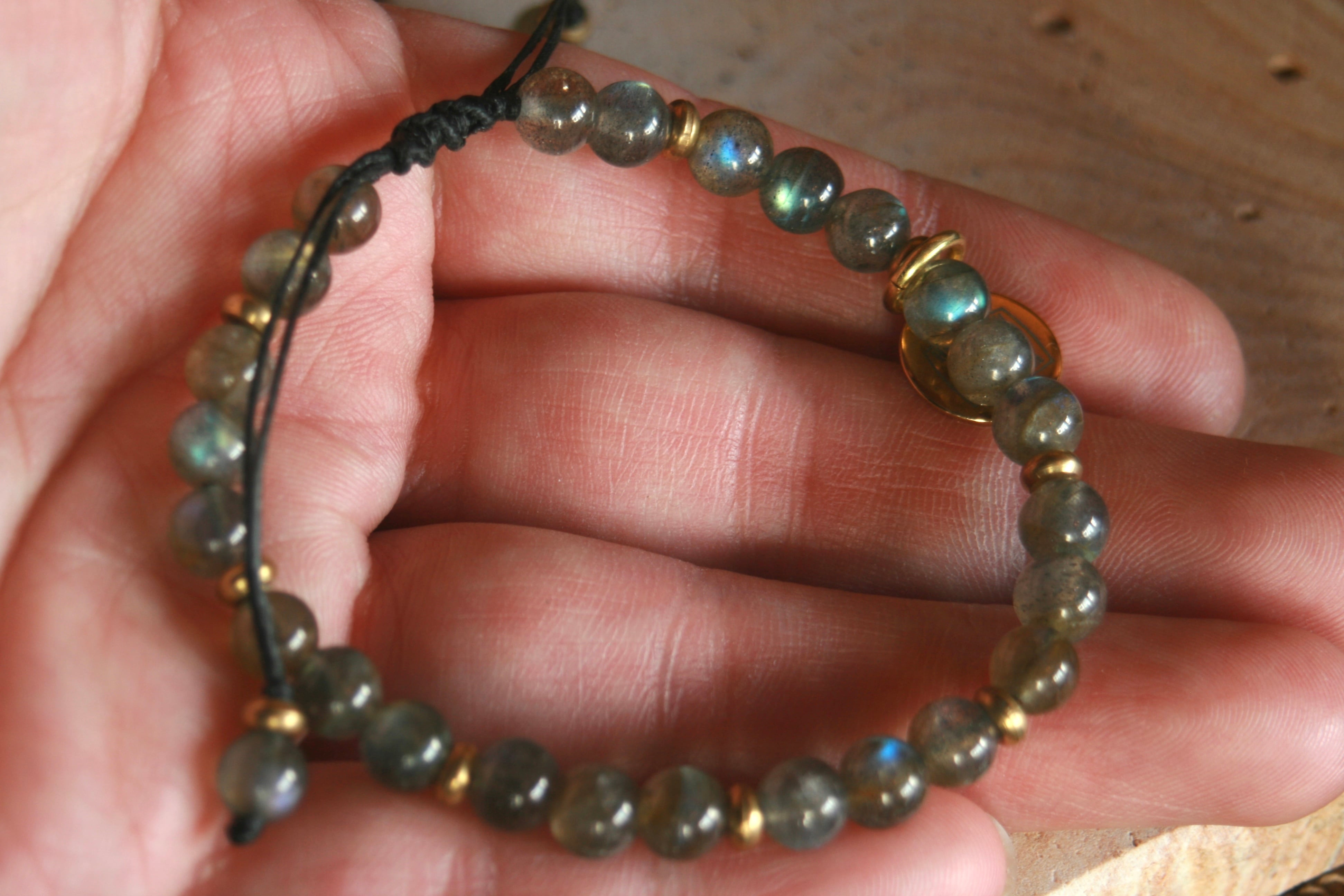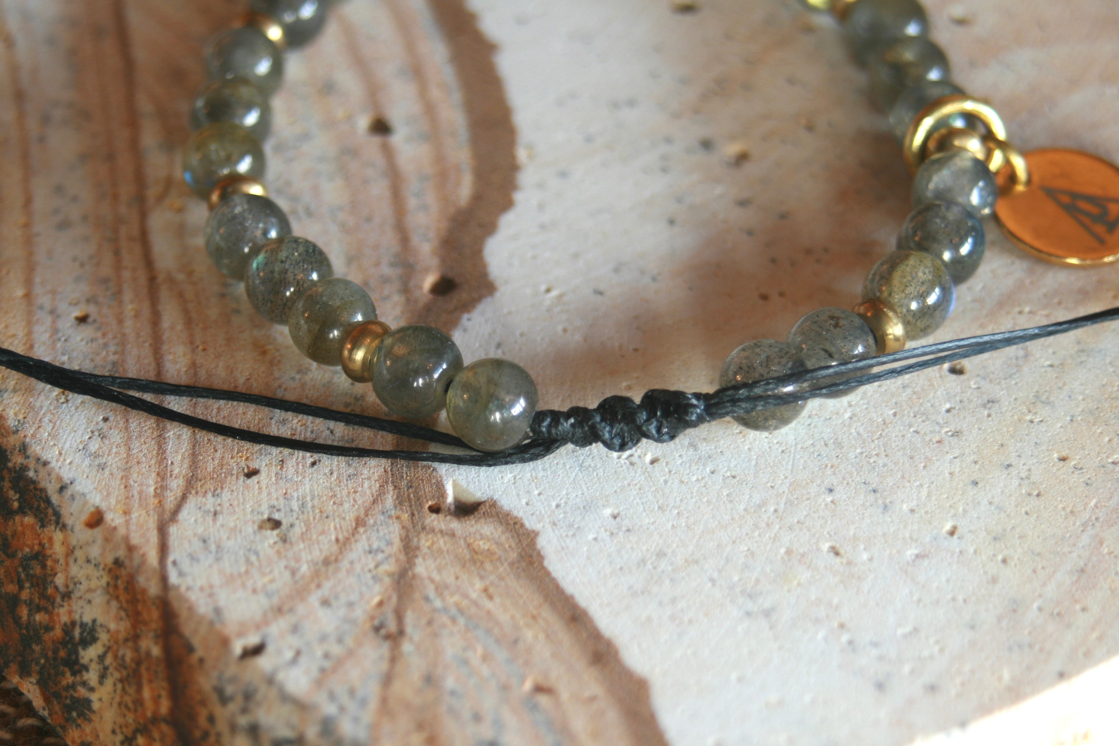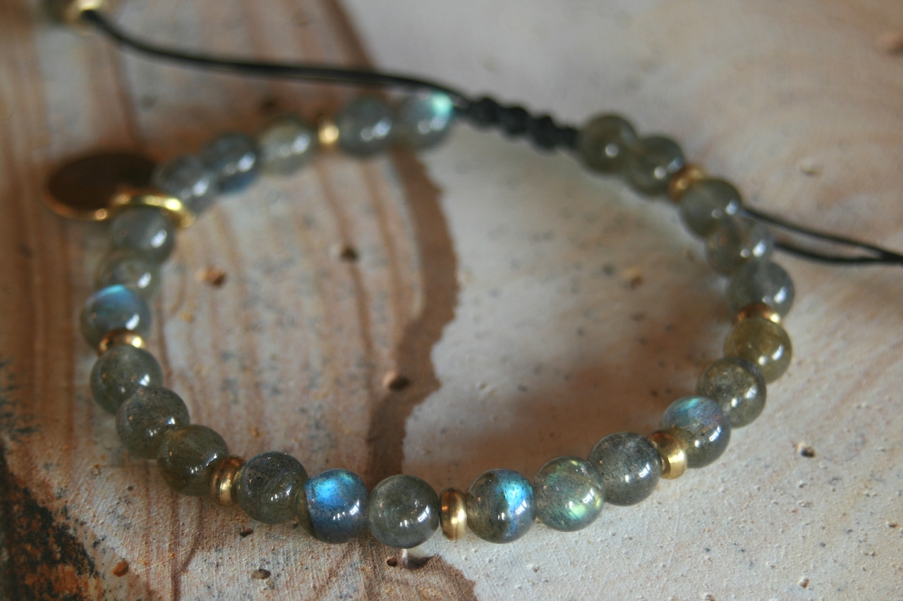 シンプルな天然石【ラブラドライト・ハイグレード】紐タイプブレスレット