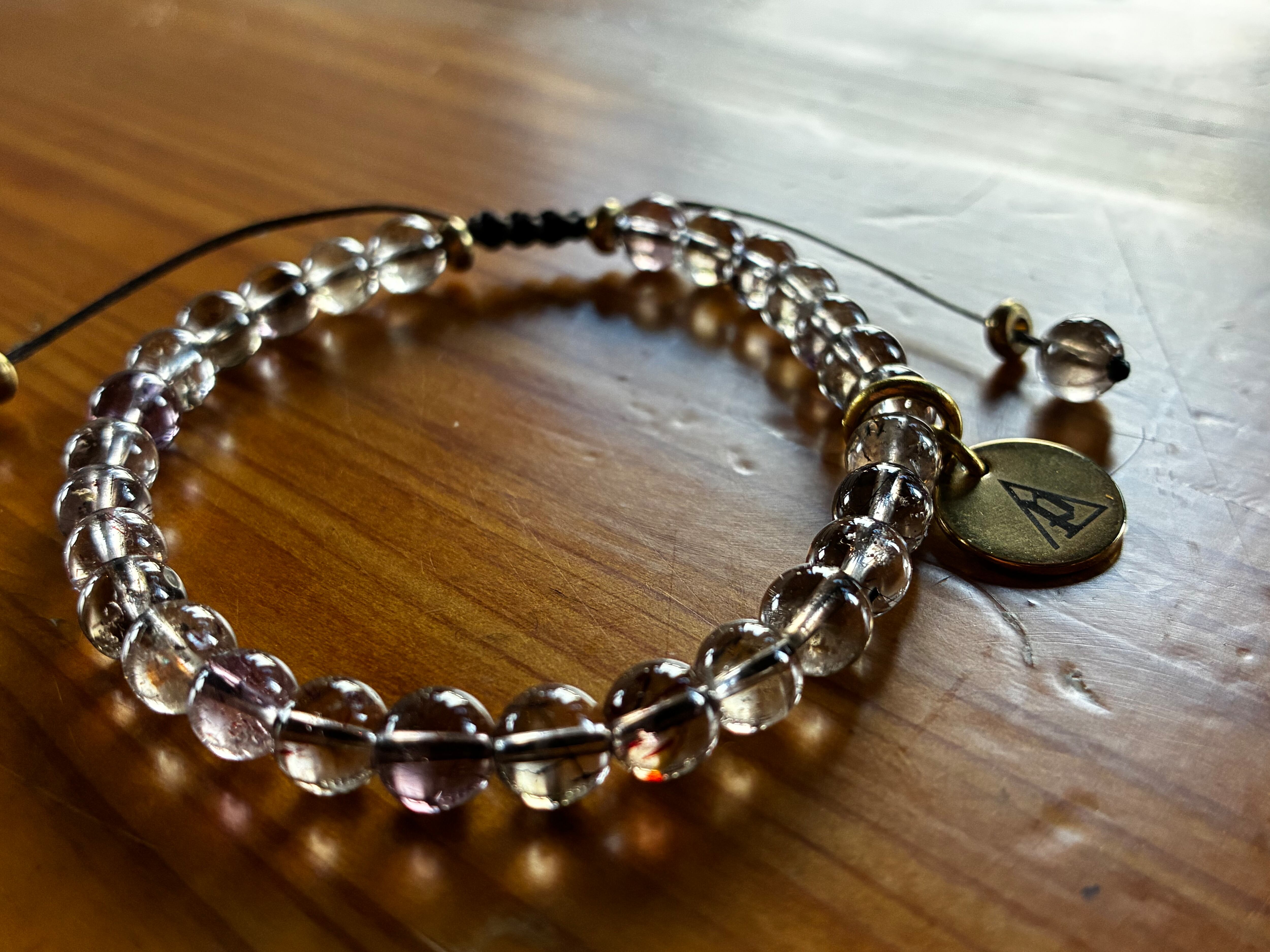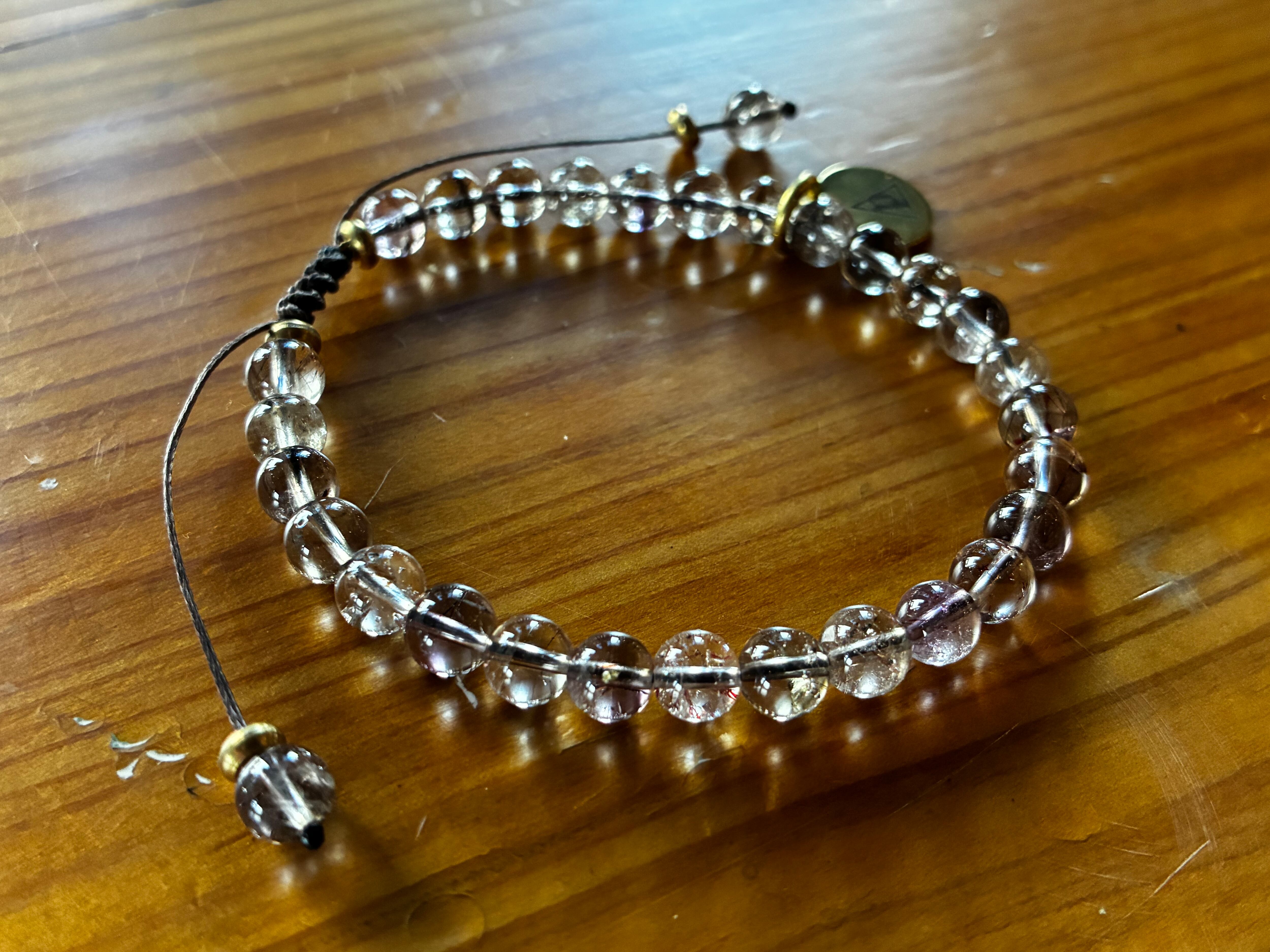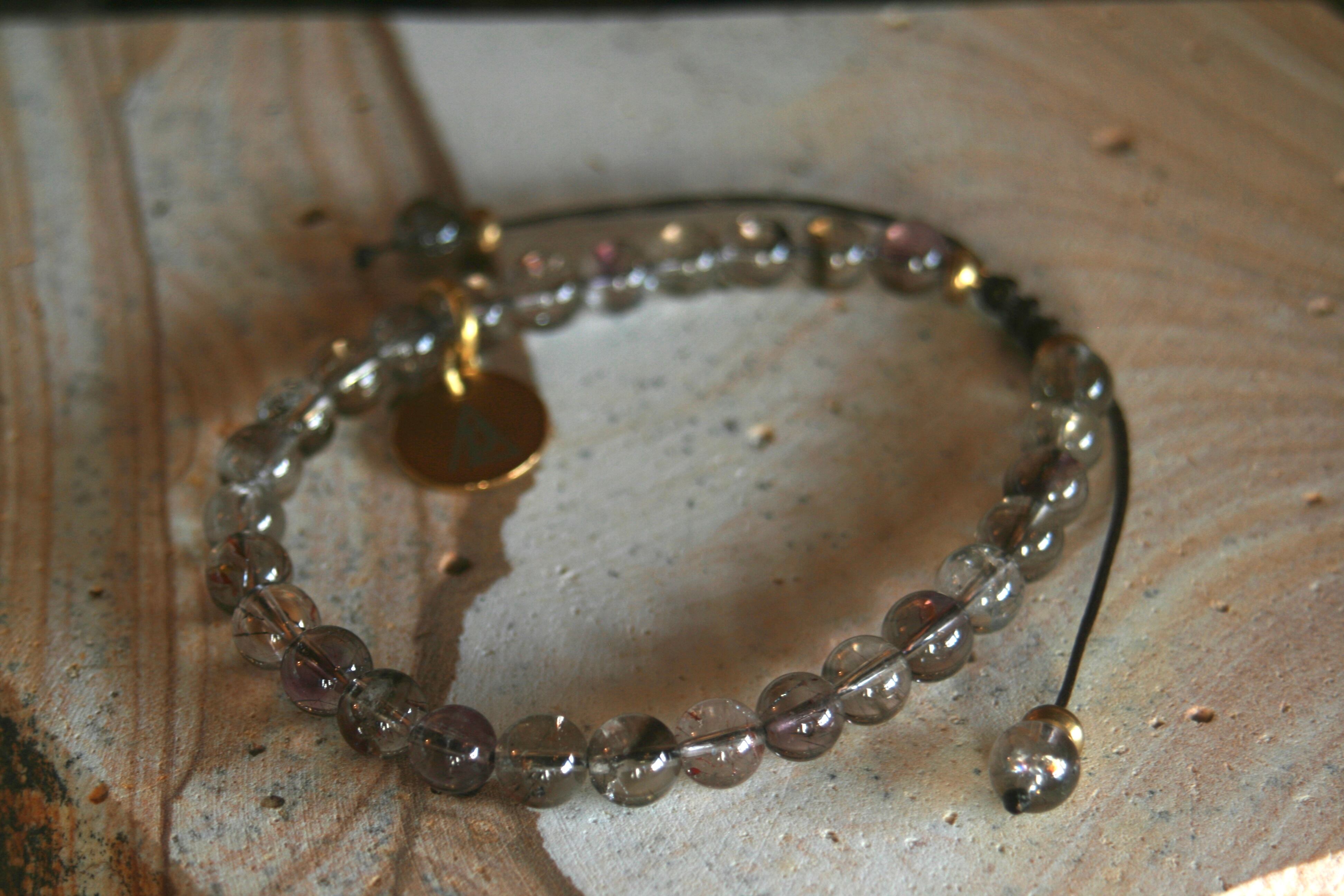 シンプルな天然石【エレスチャル水晶】紐タイプブレスレット