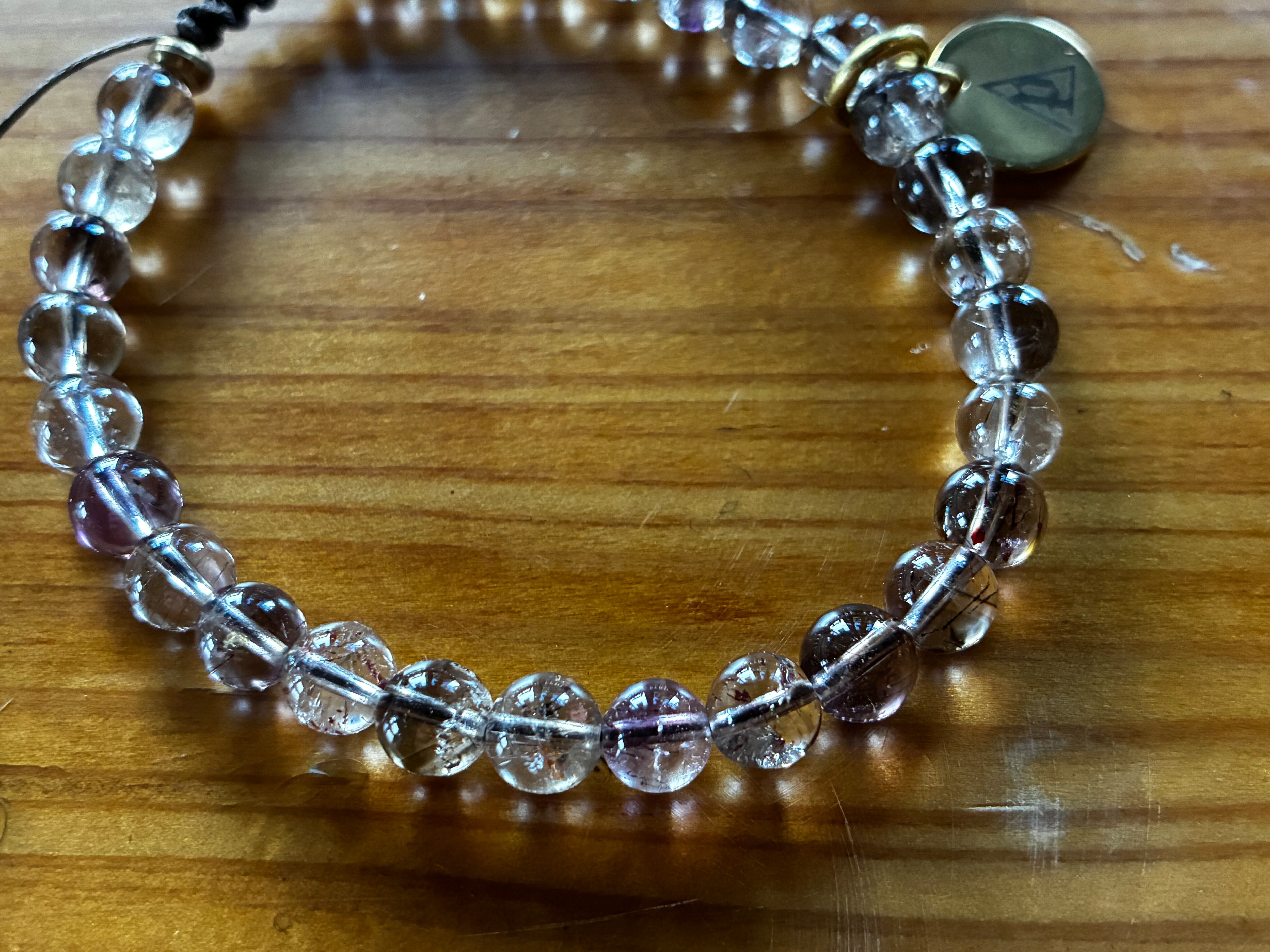 そもそも7つの元素がこんな小さなブレスレットになる玉のサイズに入ってるはずもなく、その地層から採れればスーパーセブンと、、無粋な事はいうな、暗黙の了解だと言わんばかり。