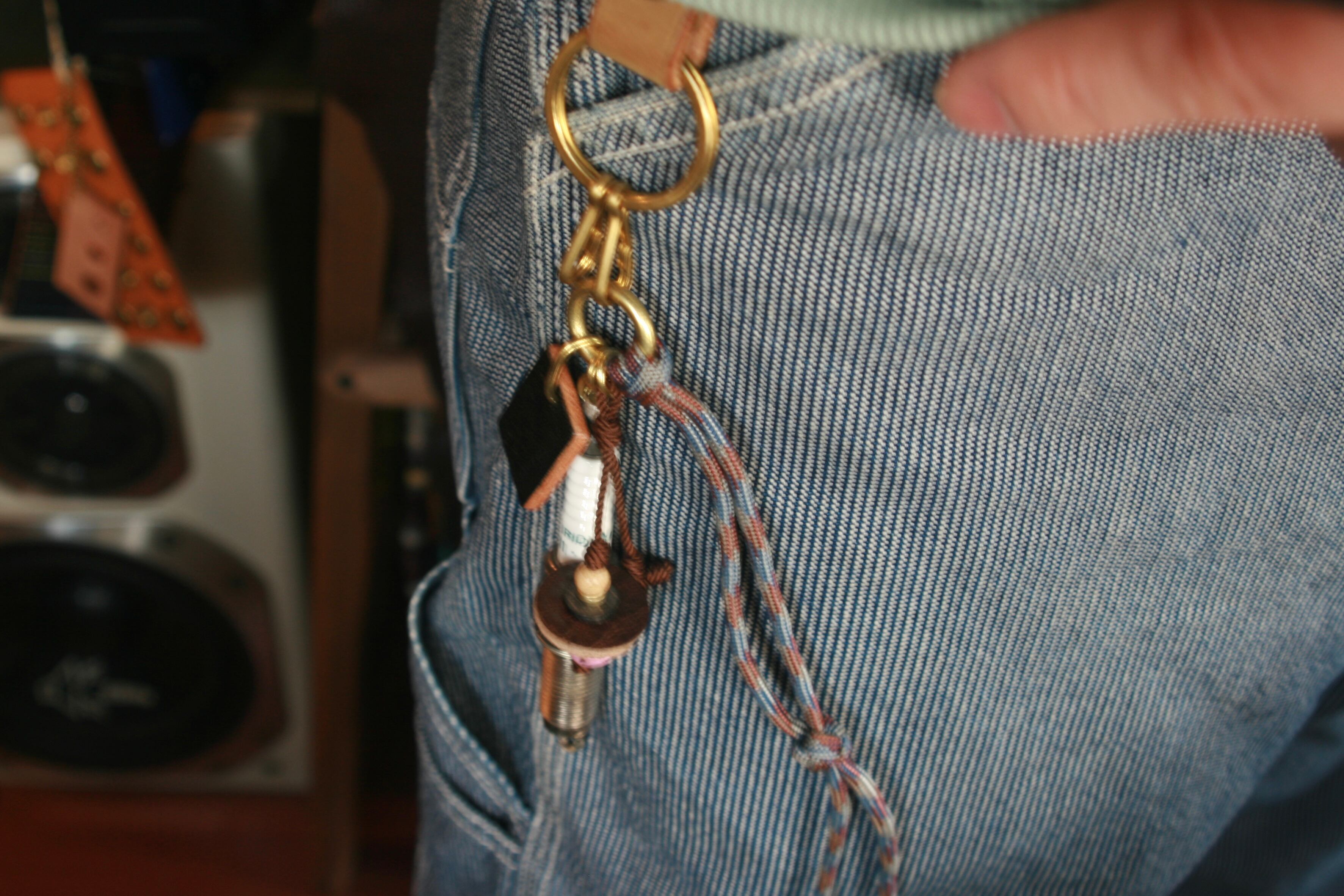 腰のキーリングにしても