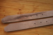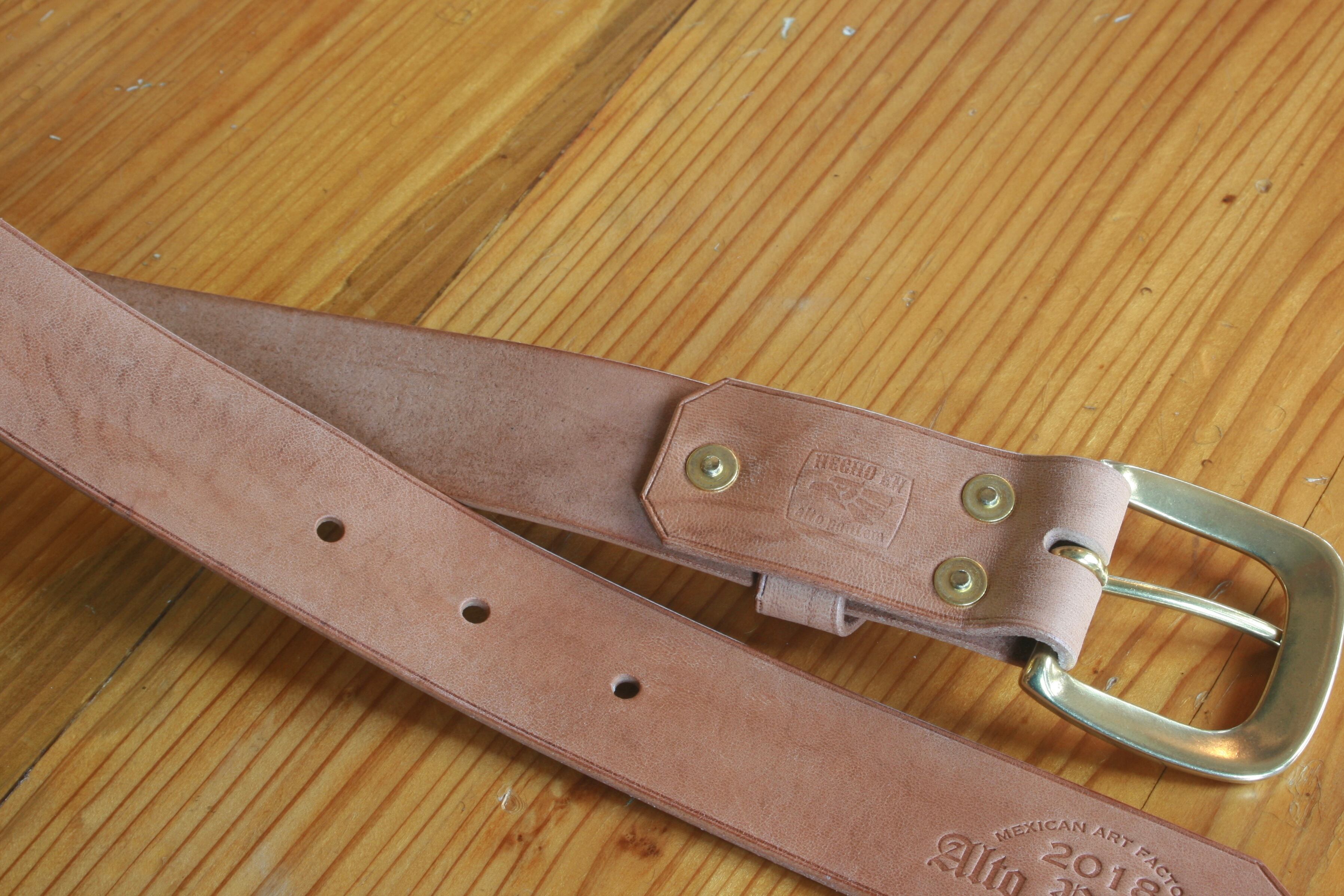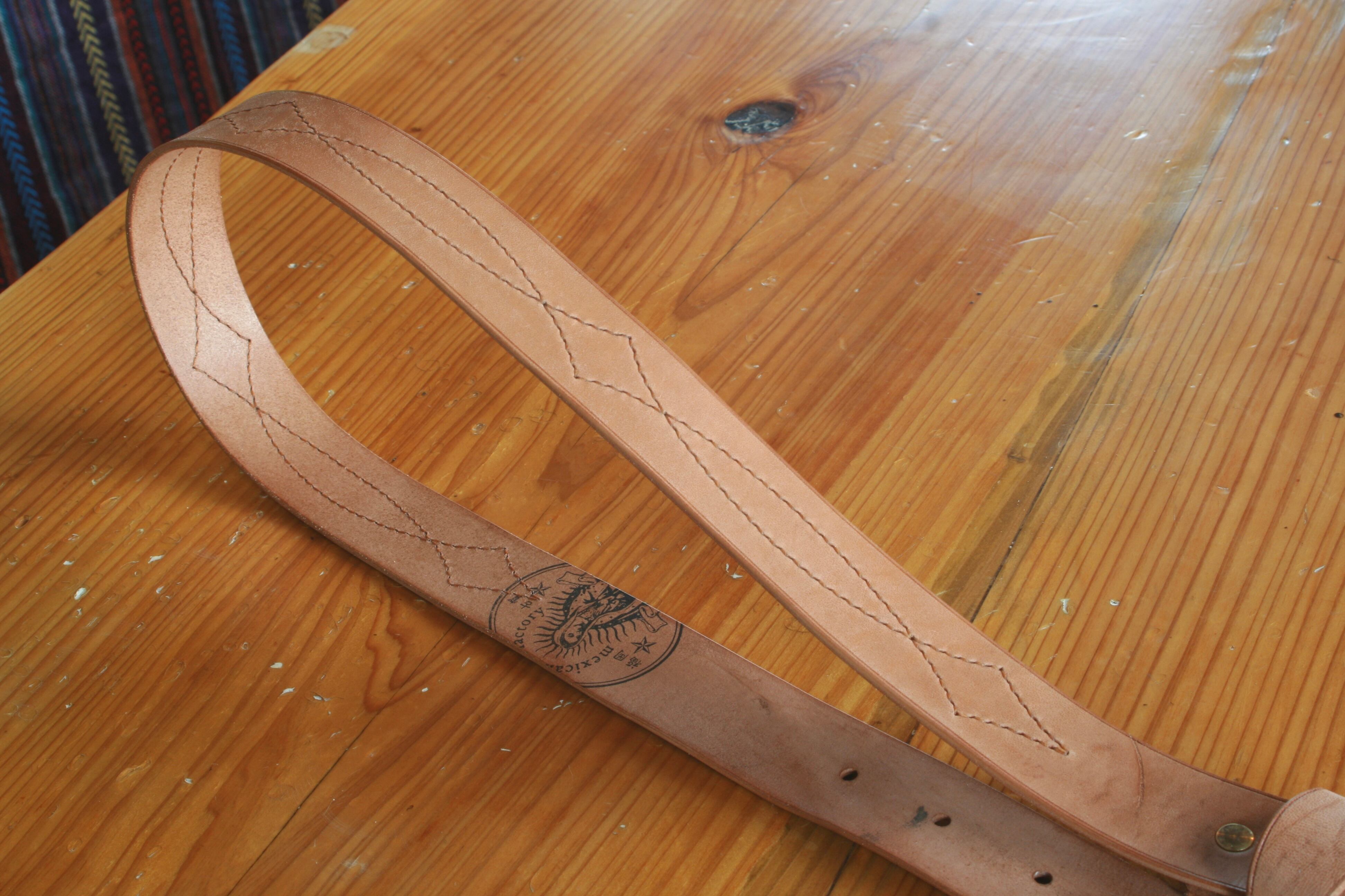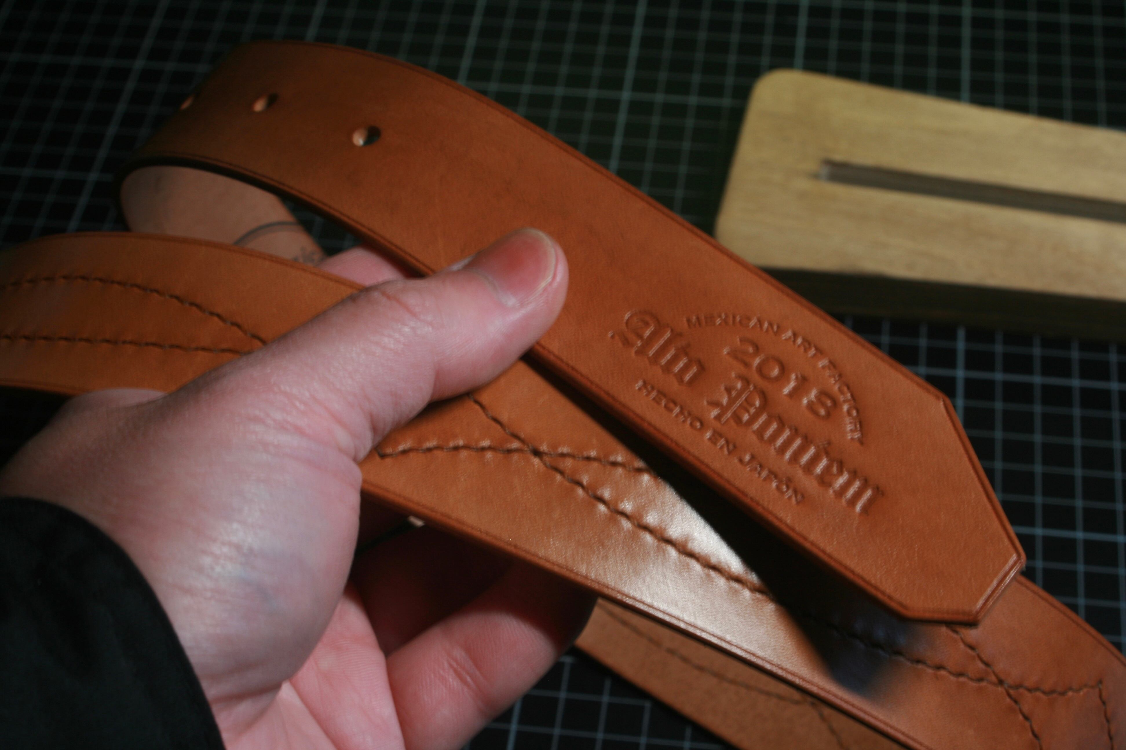 13枚目の写真に写る一番左のベルトが最終仕上げ後で、右2本は未仕上げです。
