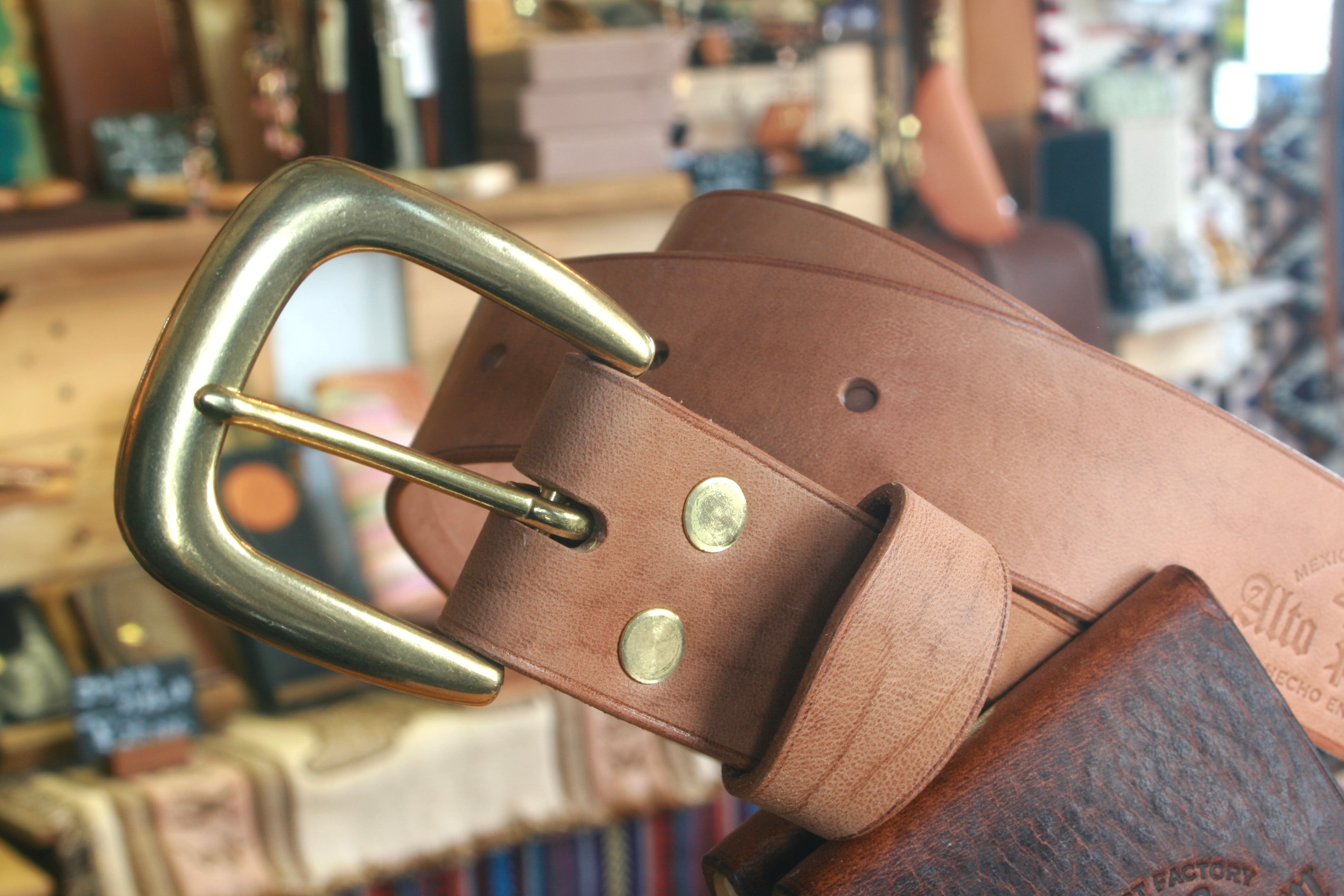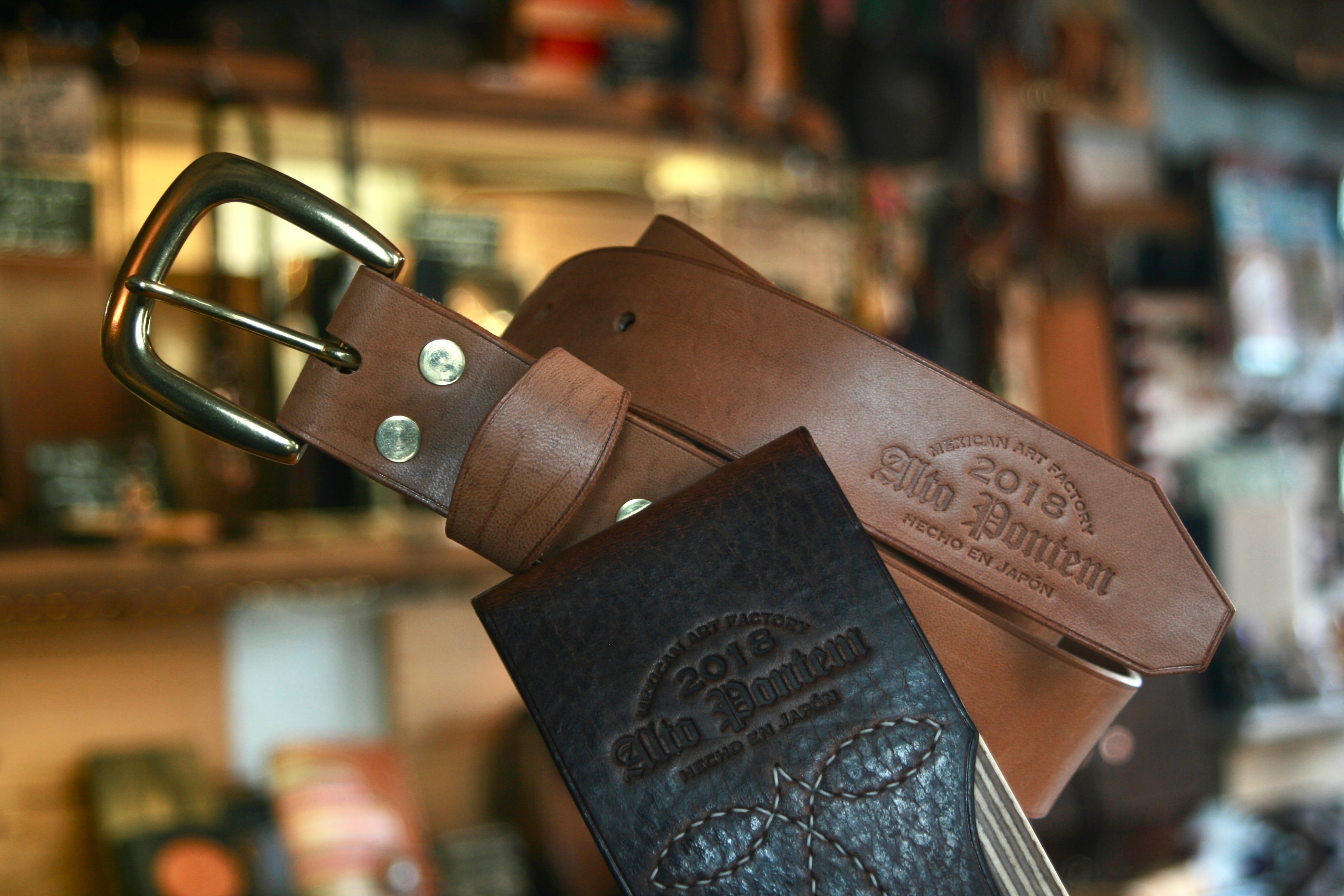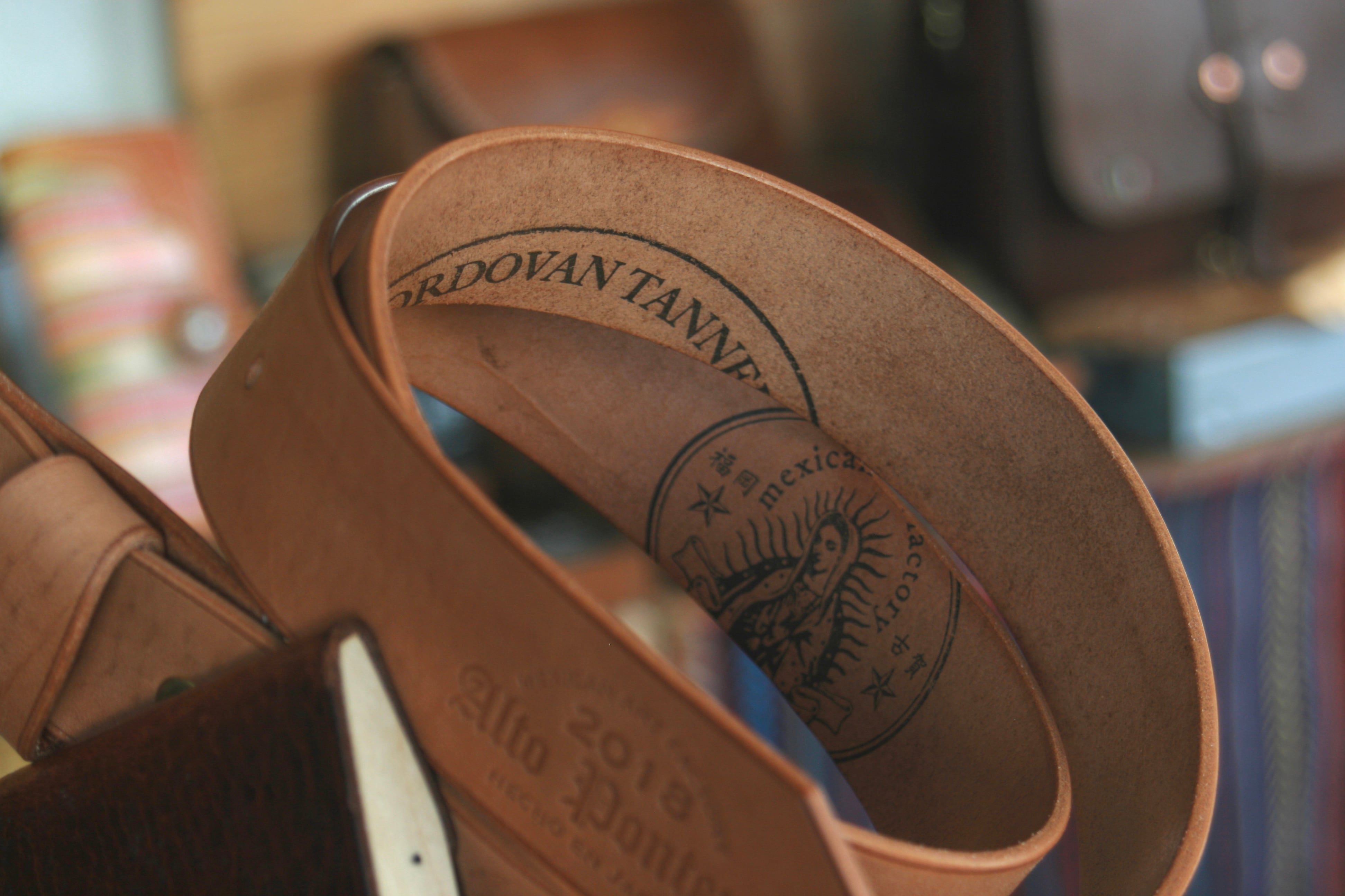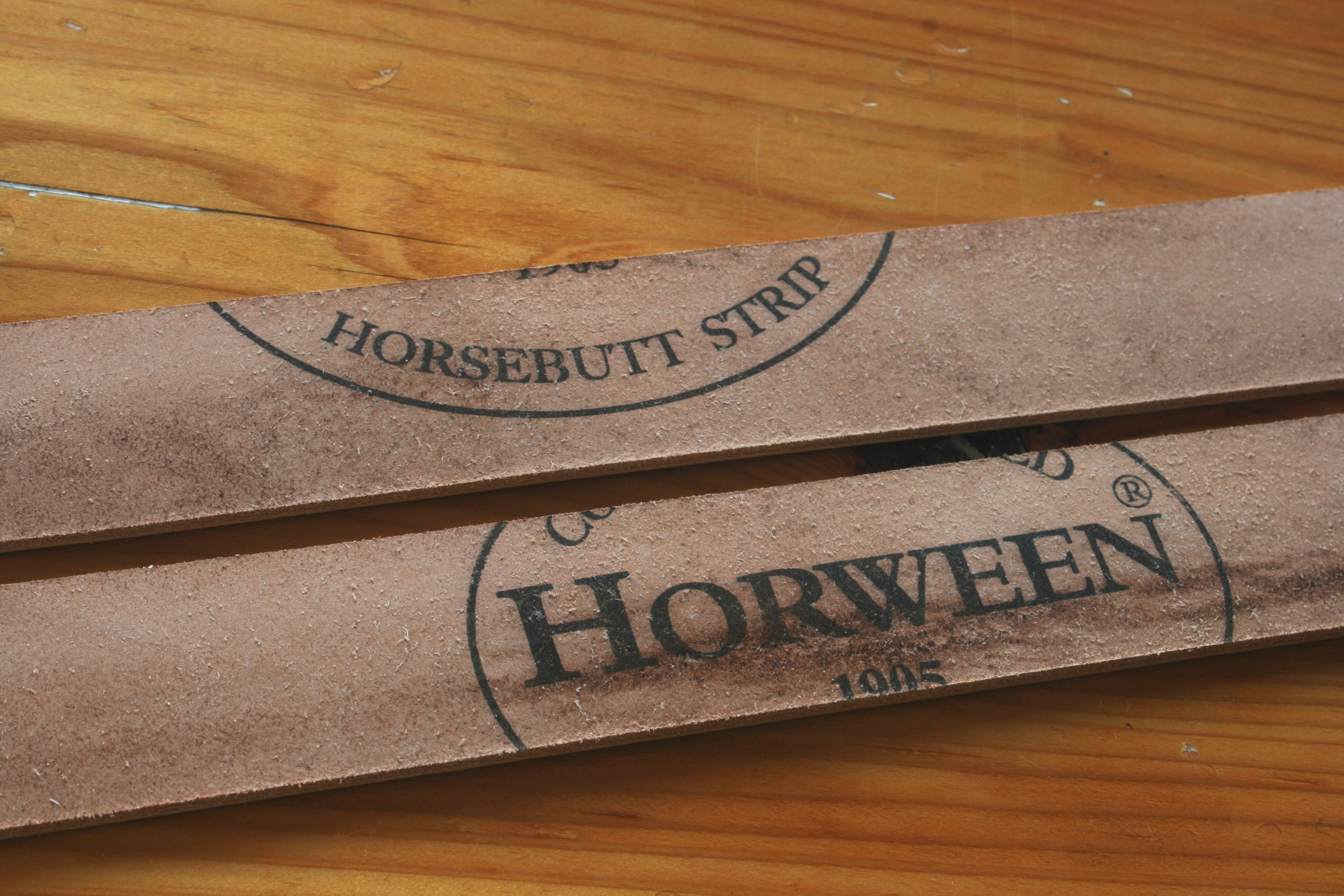 13枚目の写真に写る一番左のベルトが最終仕上げ後で、右2本は未仕上げです。