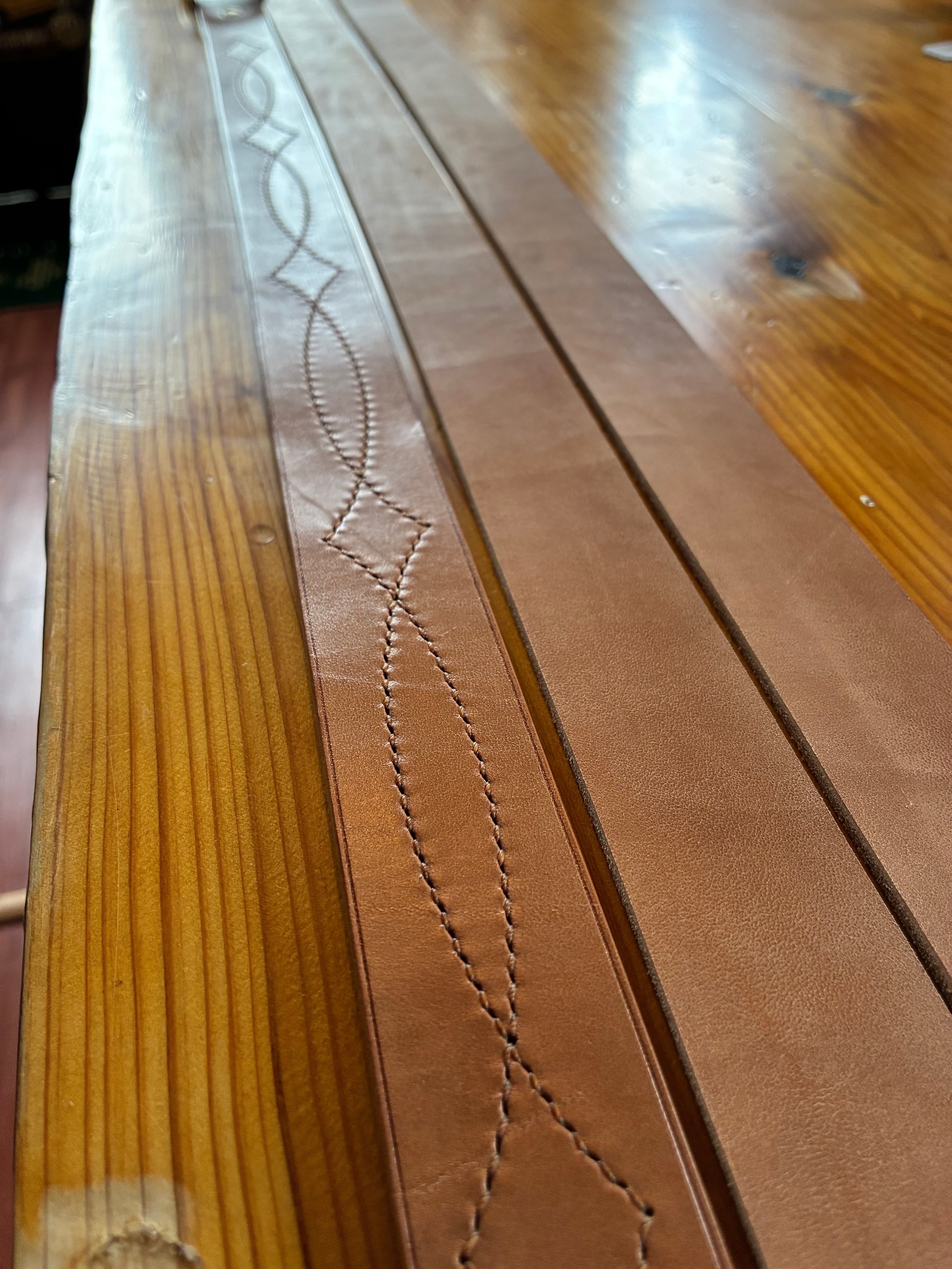 こちらのホースバットストリップは素仕上げの革をアルトポンテムで数種類のオイルやワックスを用いて最終仕上げを施しています。