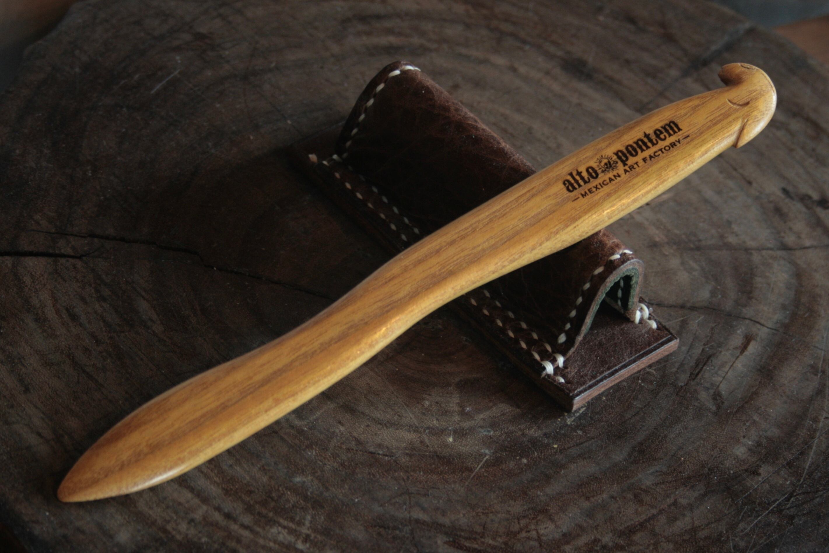 曲線や先端の尖り具合、スリッカーとしても使えるように平面出し、先端の逆側はかぎ針形状でファスナータイプの財布等の先端が届かない部分まで型だしができる。