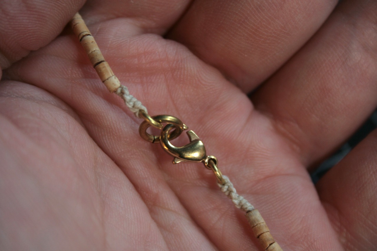 ビーズの間にアフリカの民族が作る真鍮ビーズを4つ使っています。