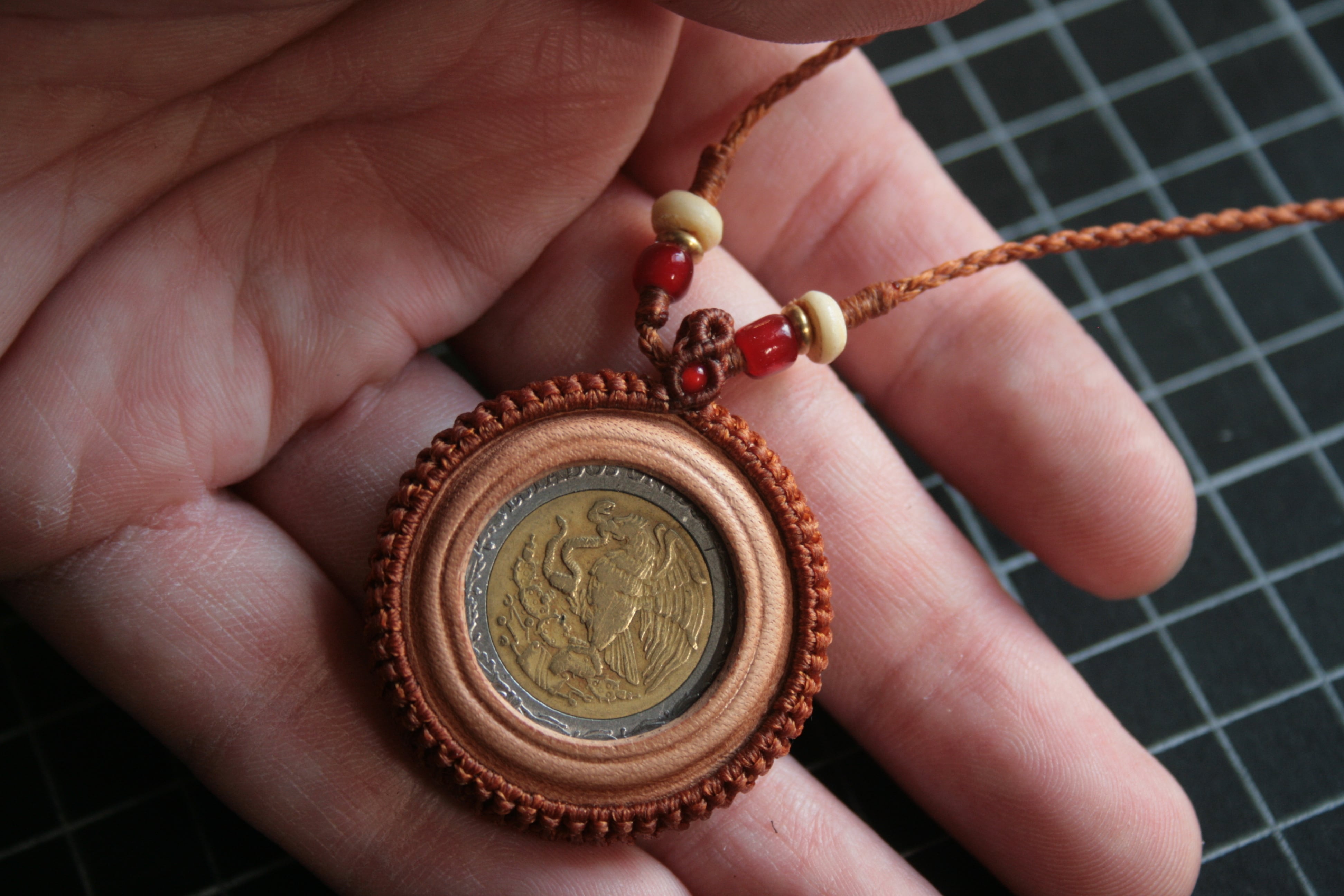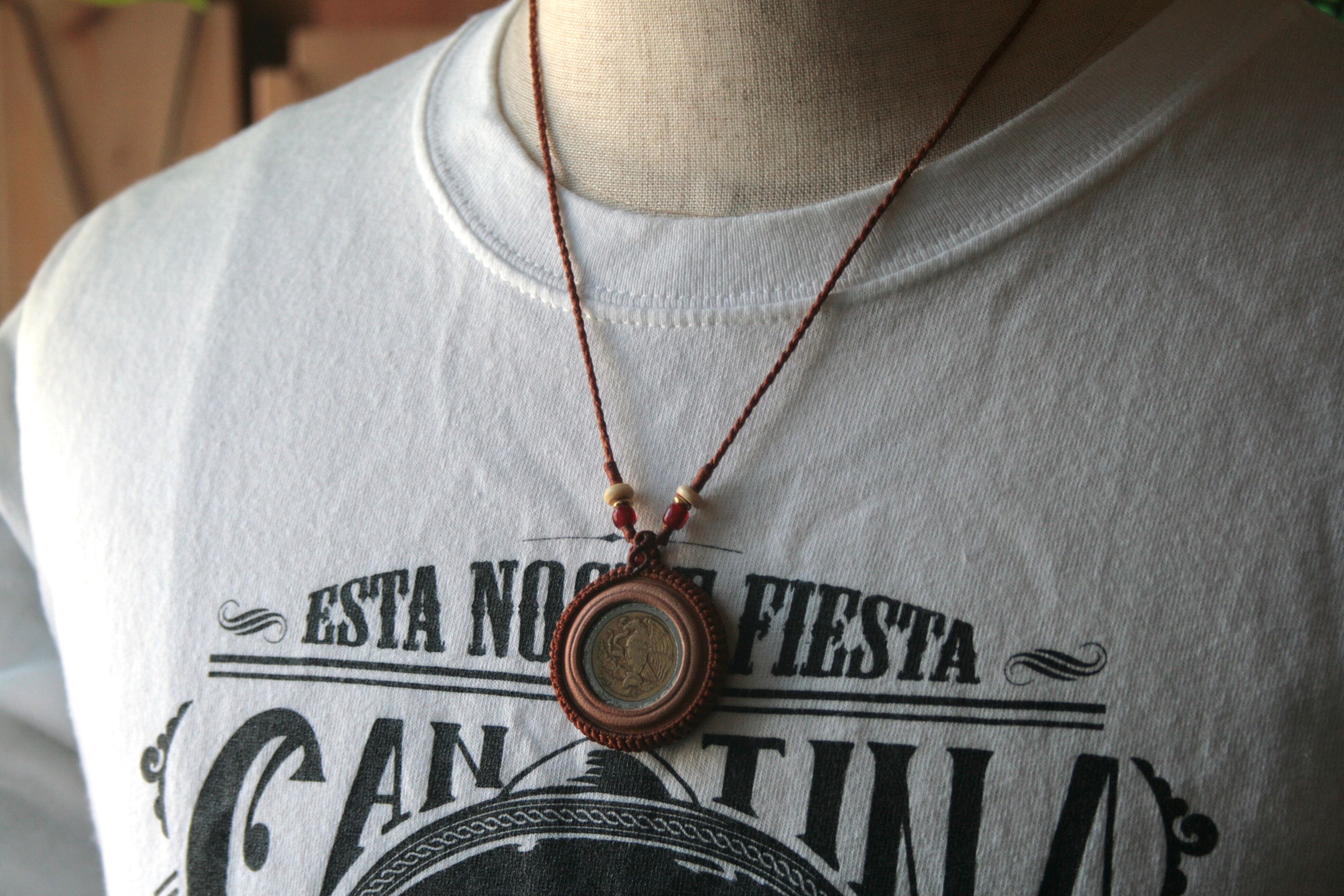Mexicoコイン 編み×革包み ネックレス(錆茶)