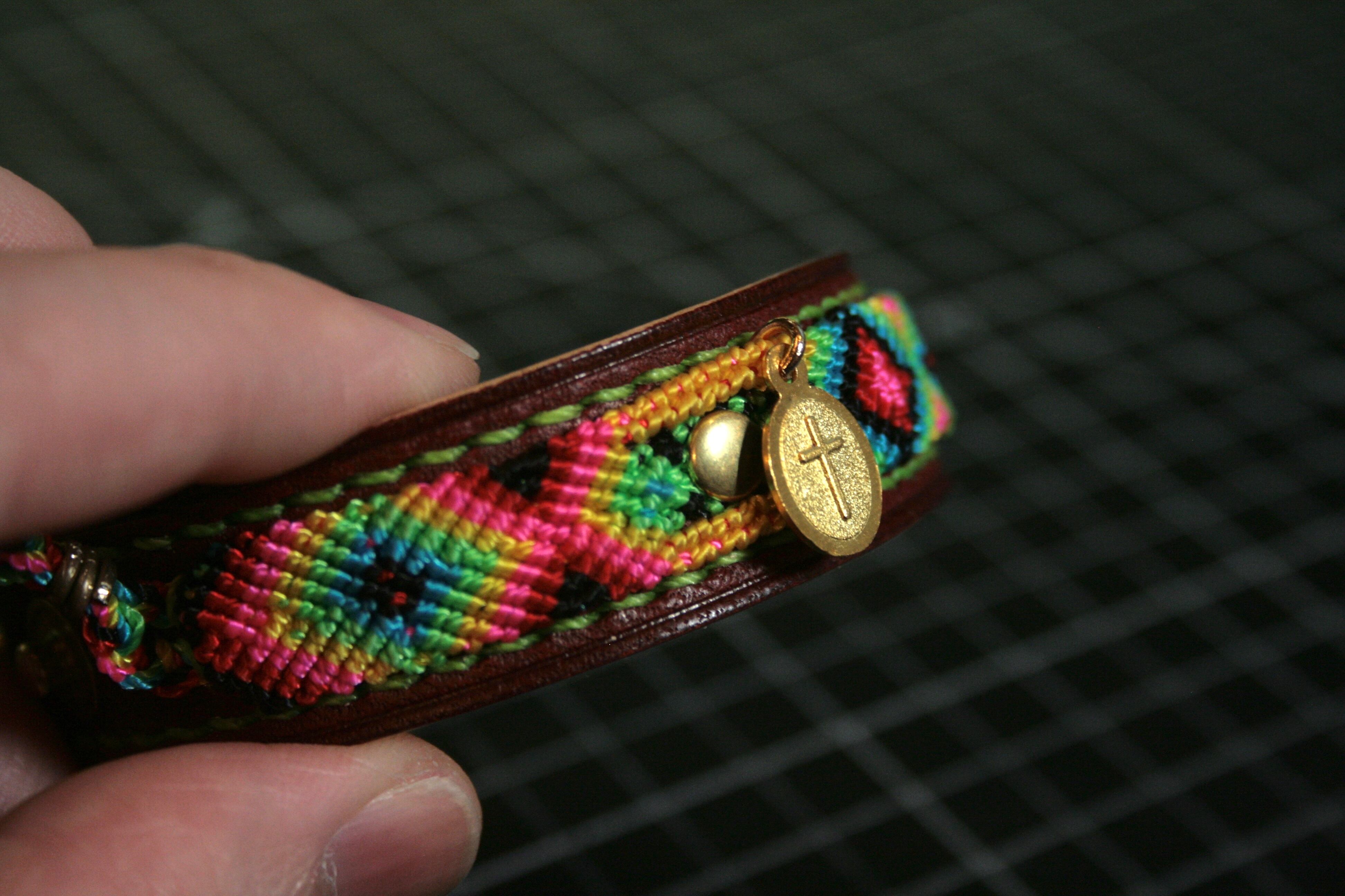 ホックとカシメを外すとそのままマクラメブレスレットとして再利用できるよう作ってます。