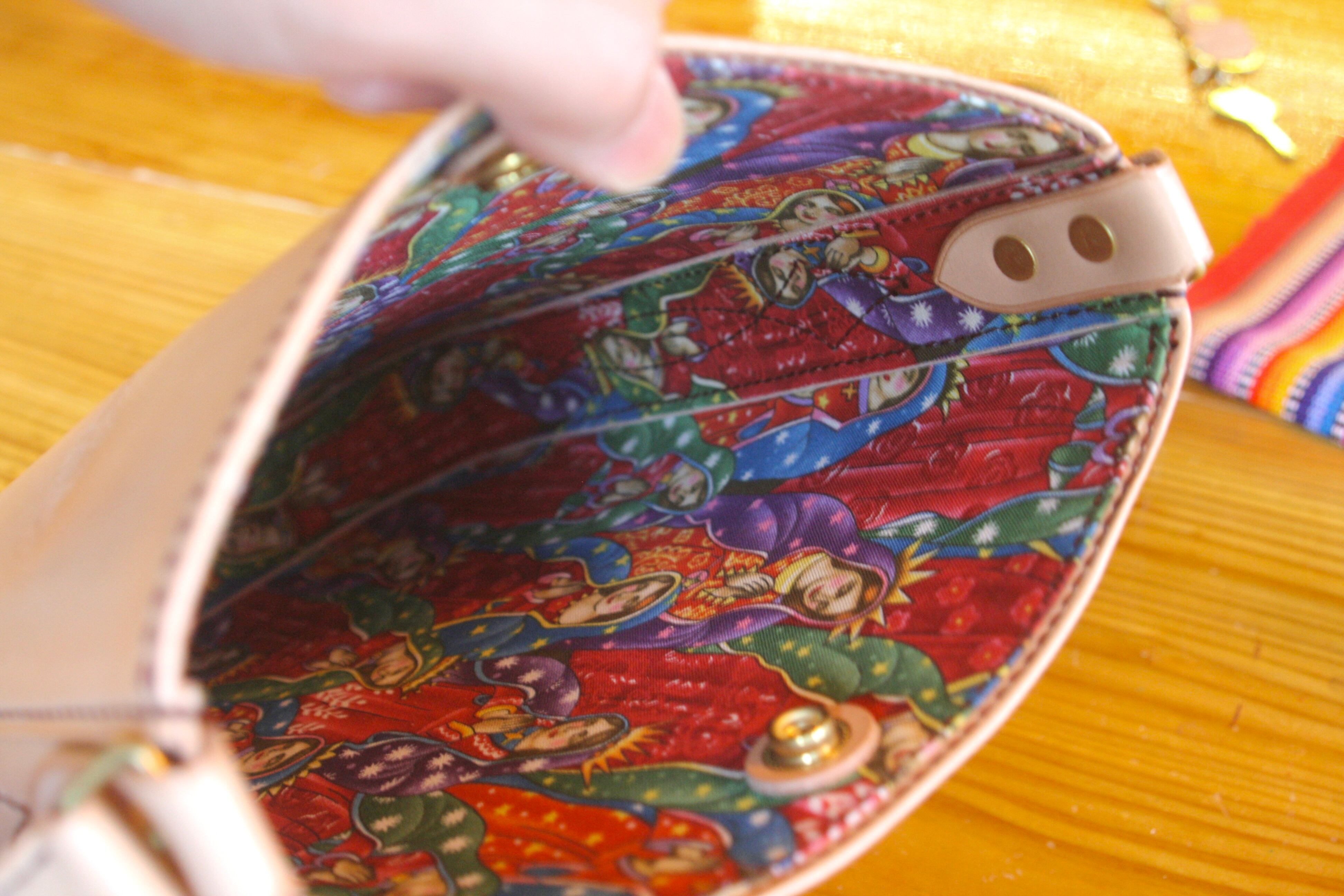 長さ調節式のショルダーベルトの付け根にキーホルダー等を提げられるようにしています。