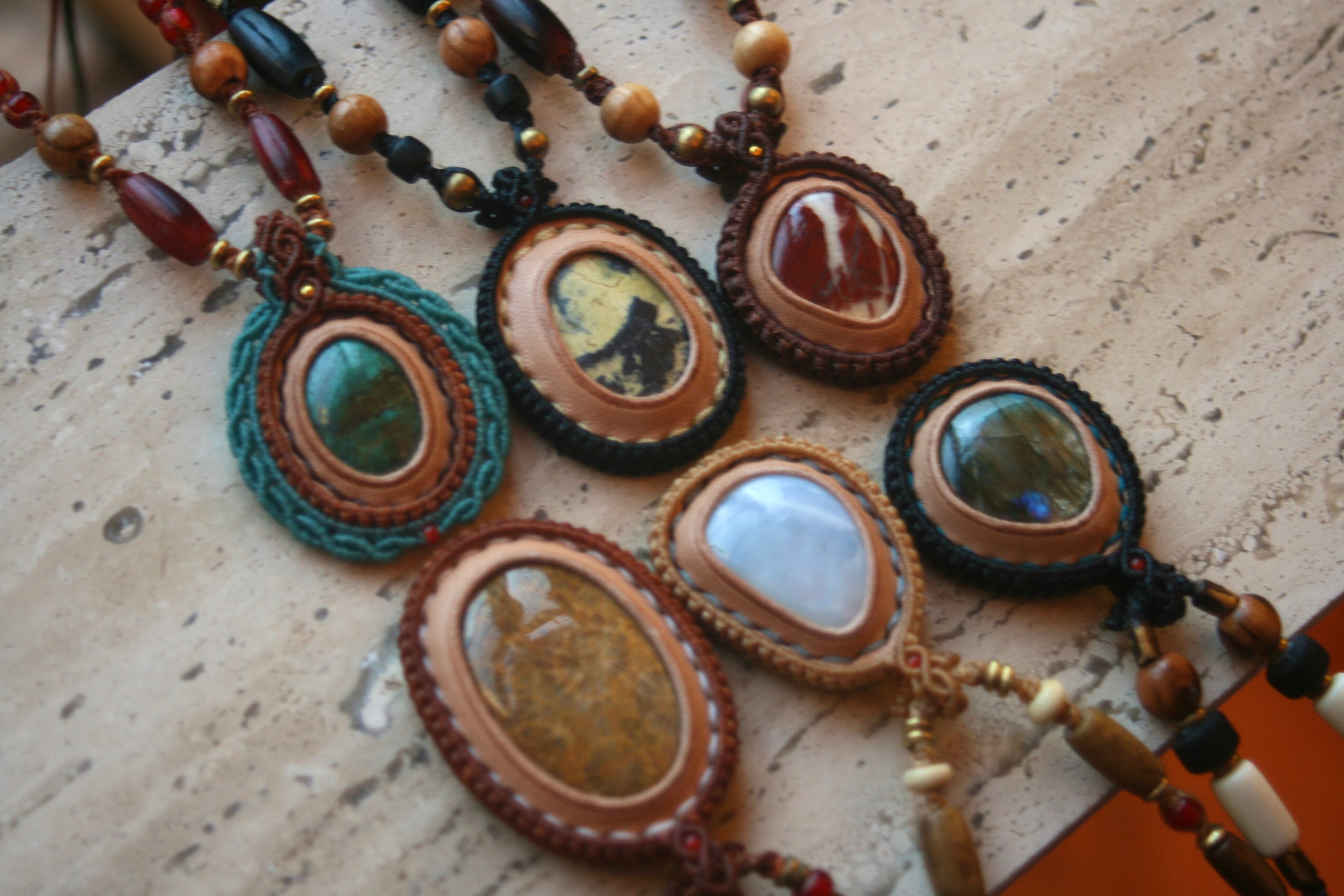 【エクリプスジャスパー】天然石の革包MACRAME ネックレス