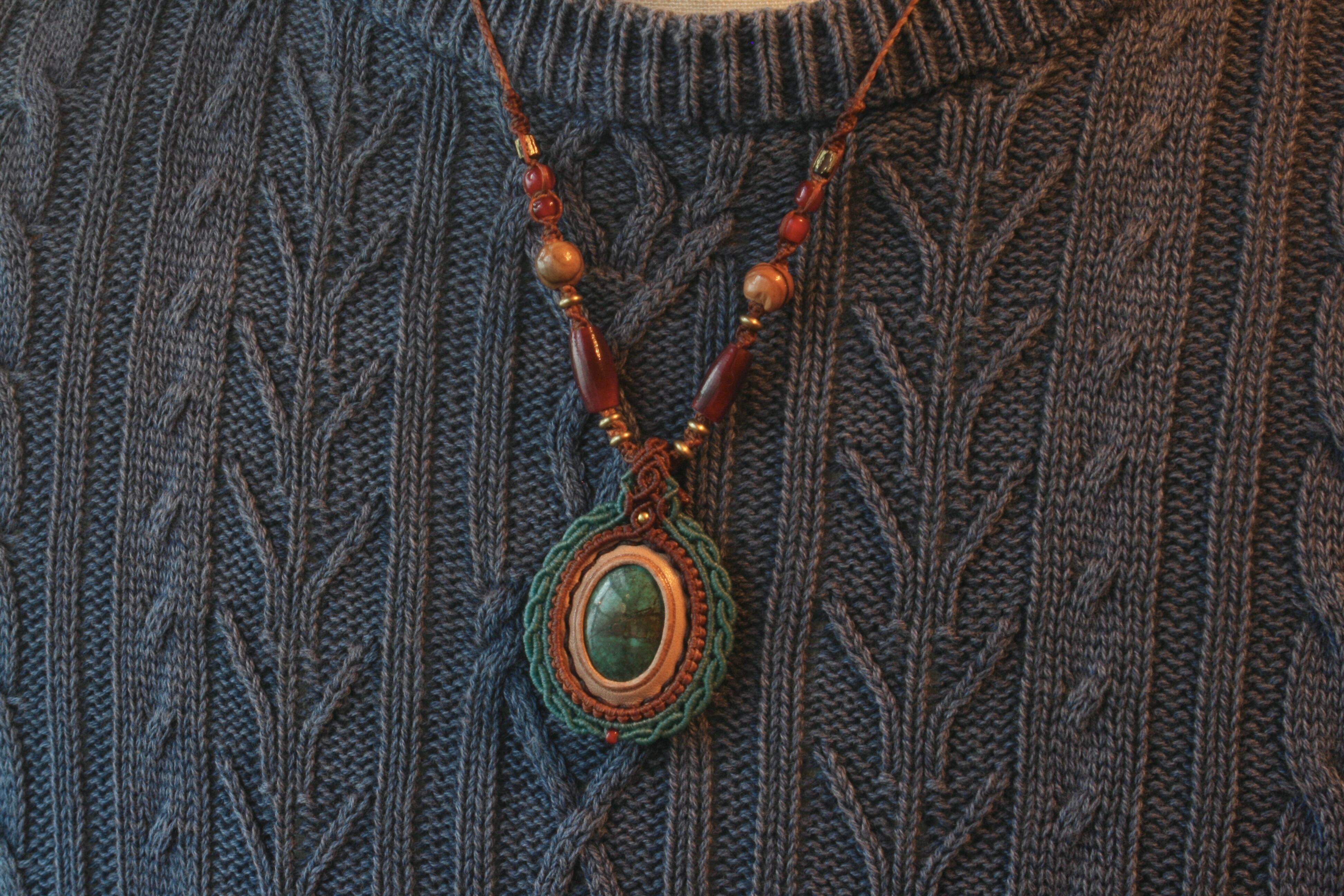 【ターコイズ】天然石の革包MACRAME ネックレス