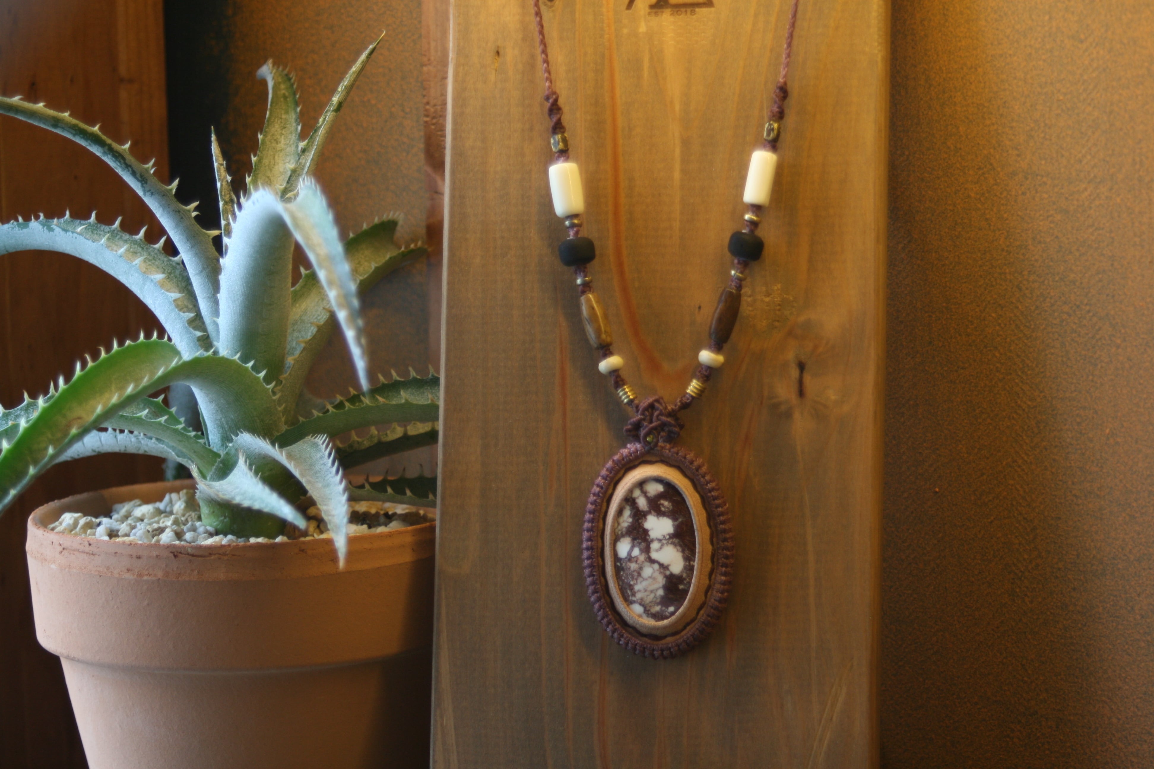【ホワイトバッファロー】天然石の革包MACRAMEネックレス