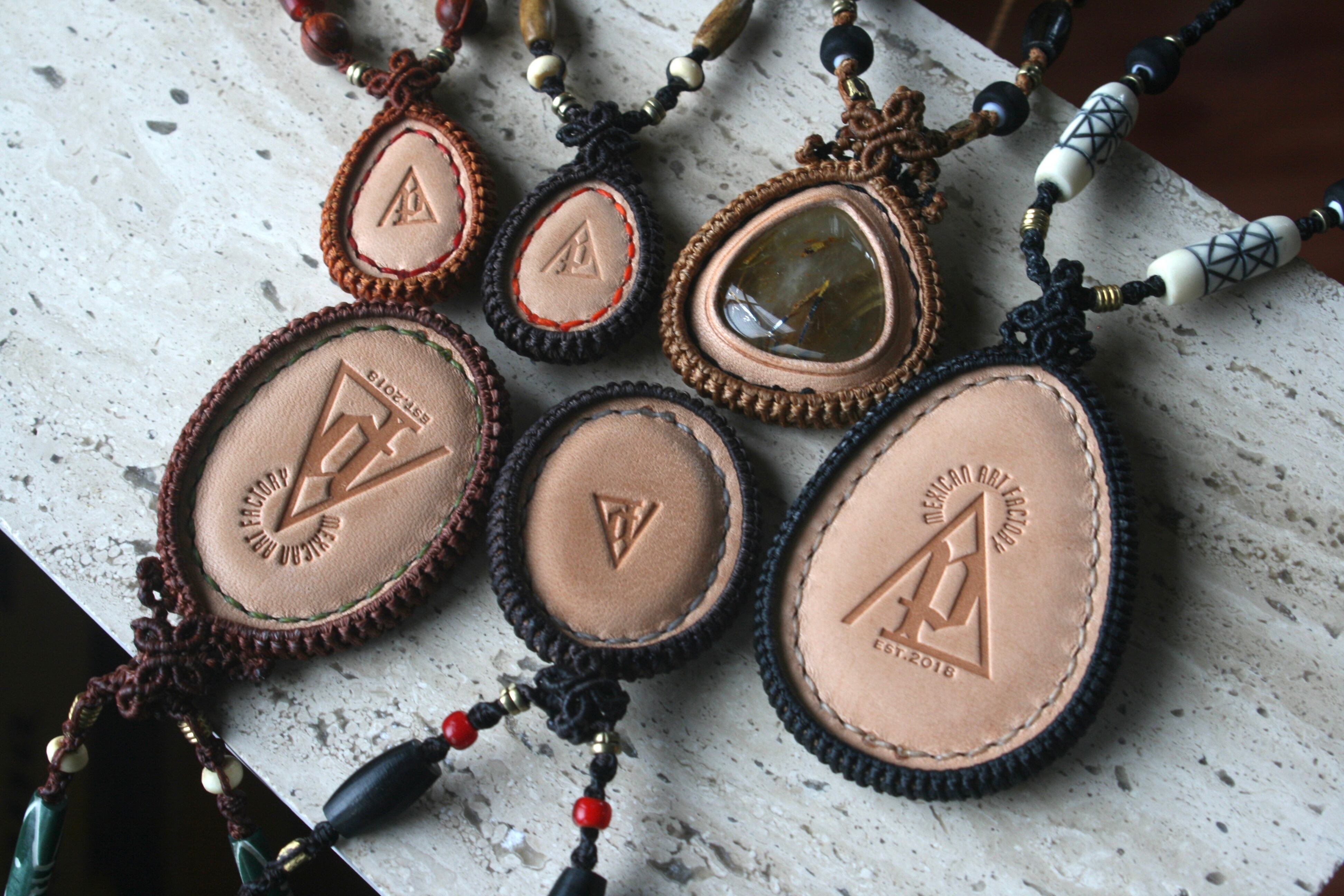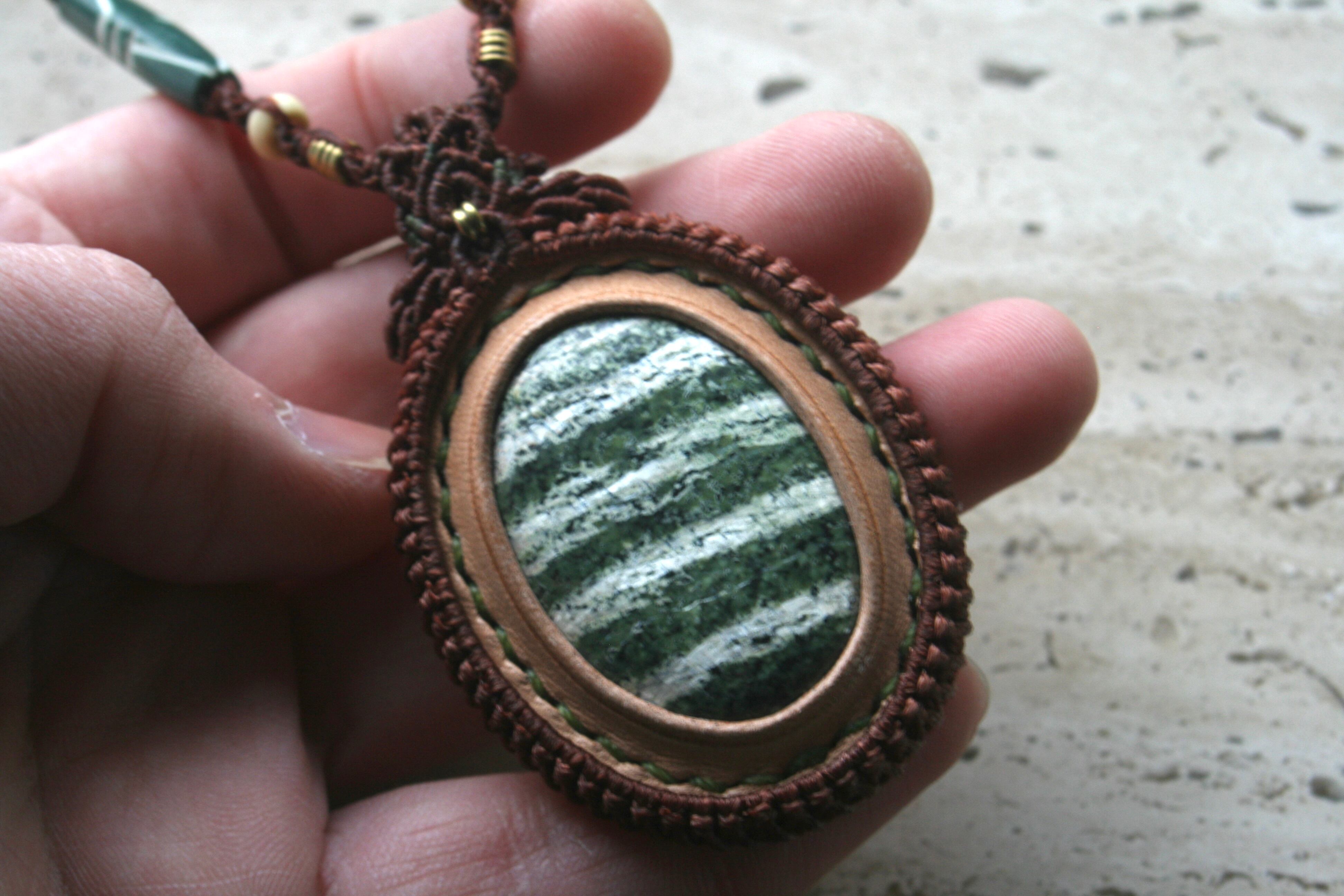 【サーペンティン】天然石の革包MACRAMEネックレス