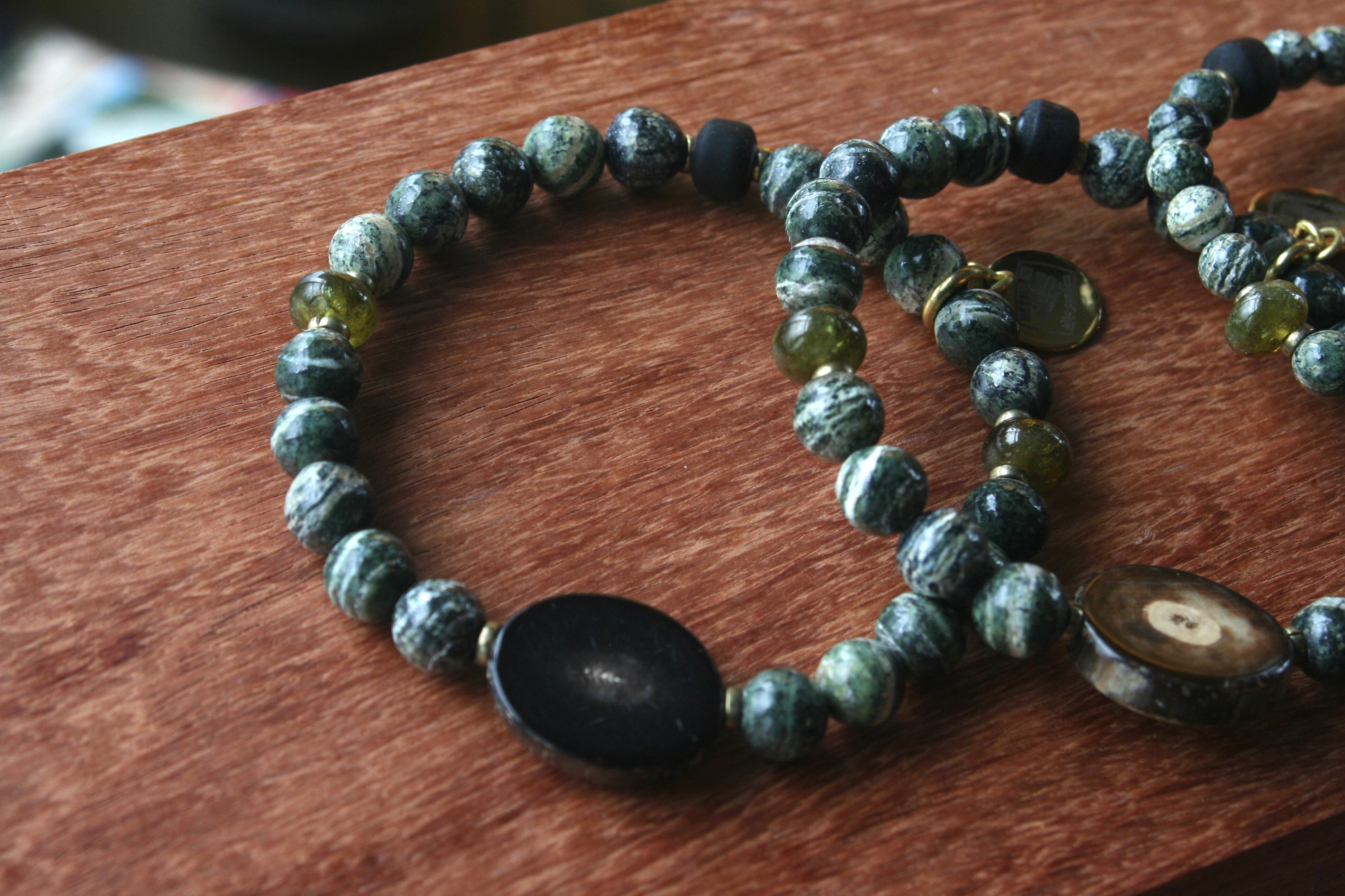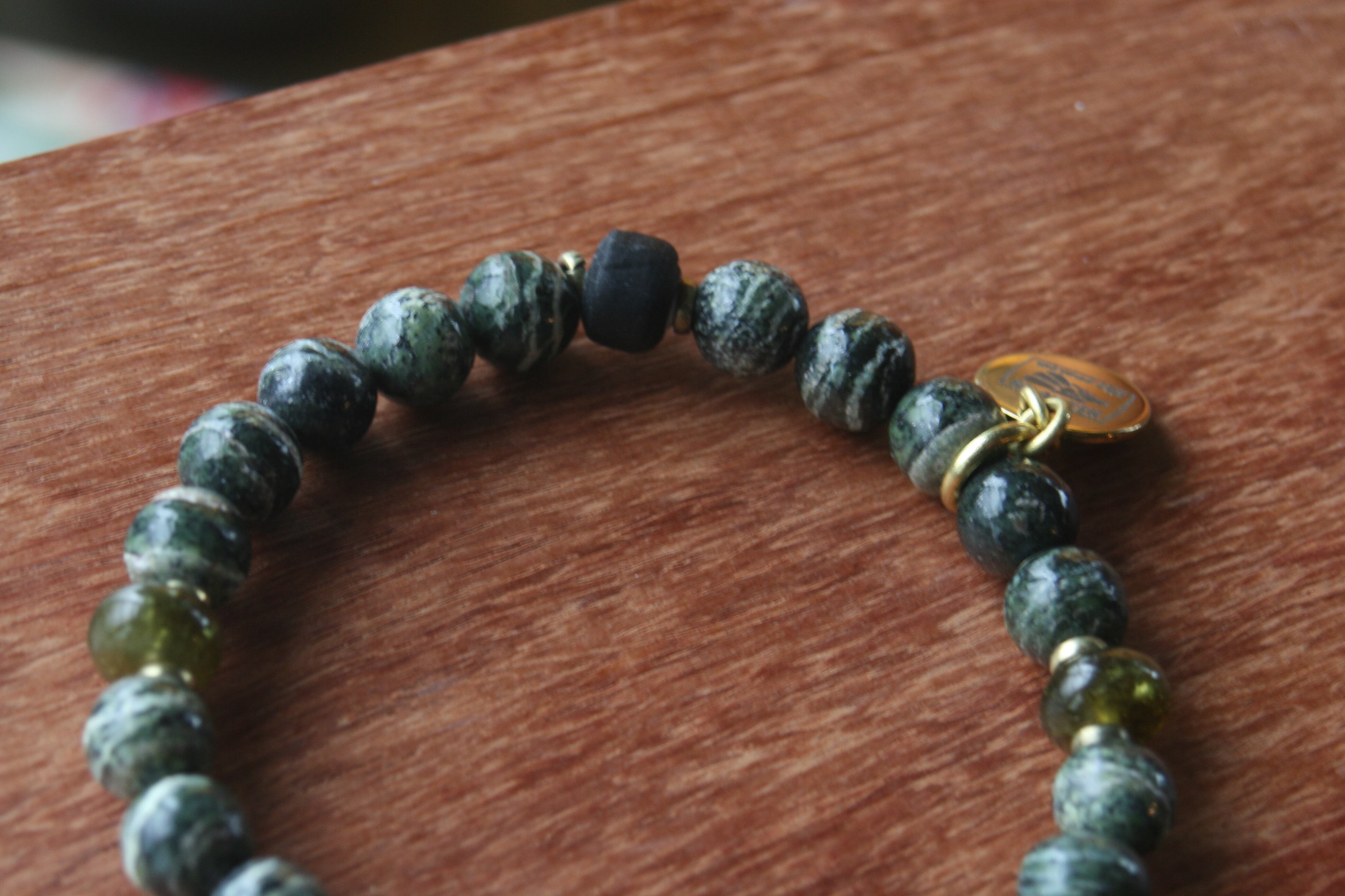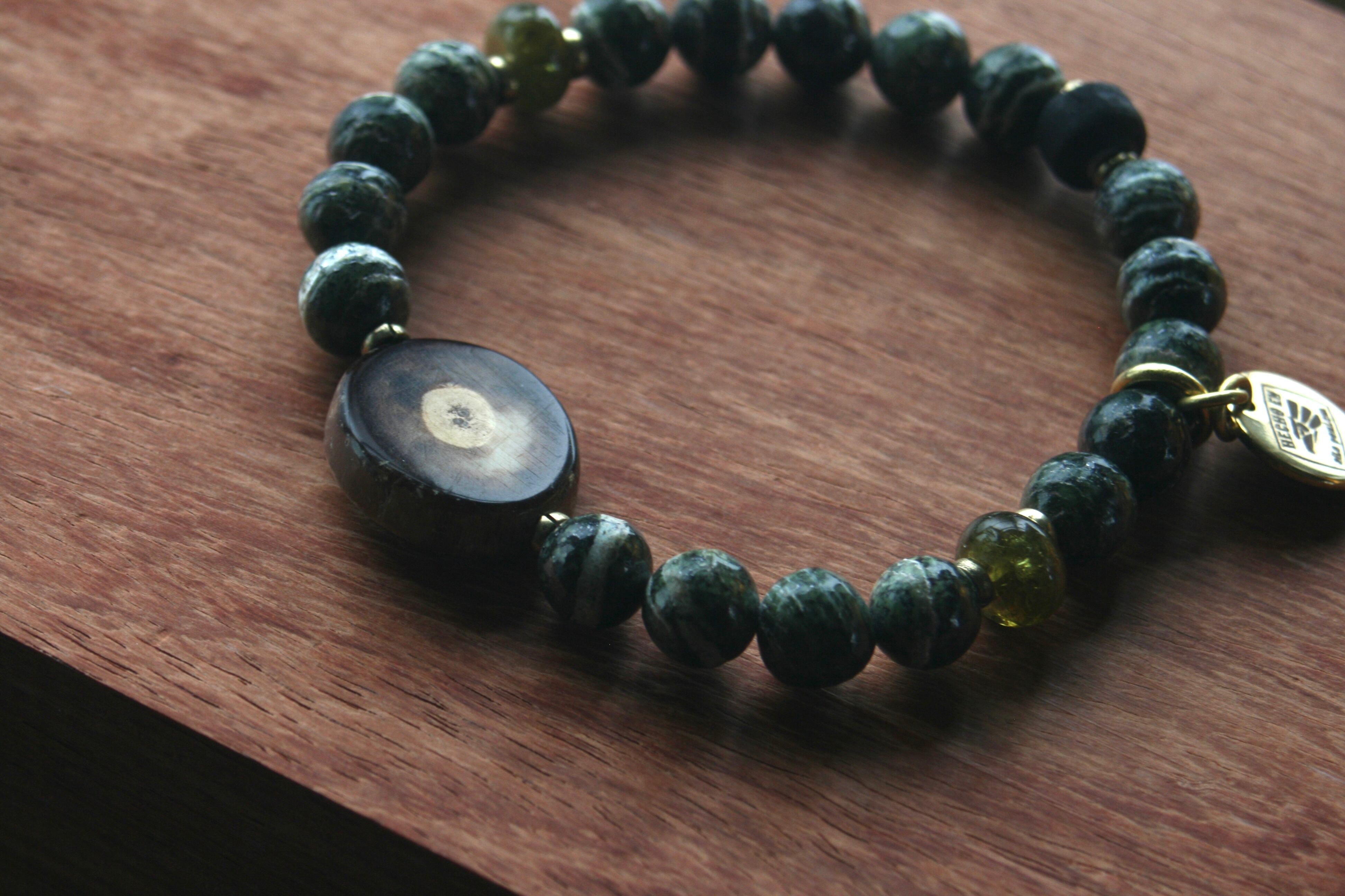 【蛇紋石×水牛】16cmゴムブレスレット 2025限定
