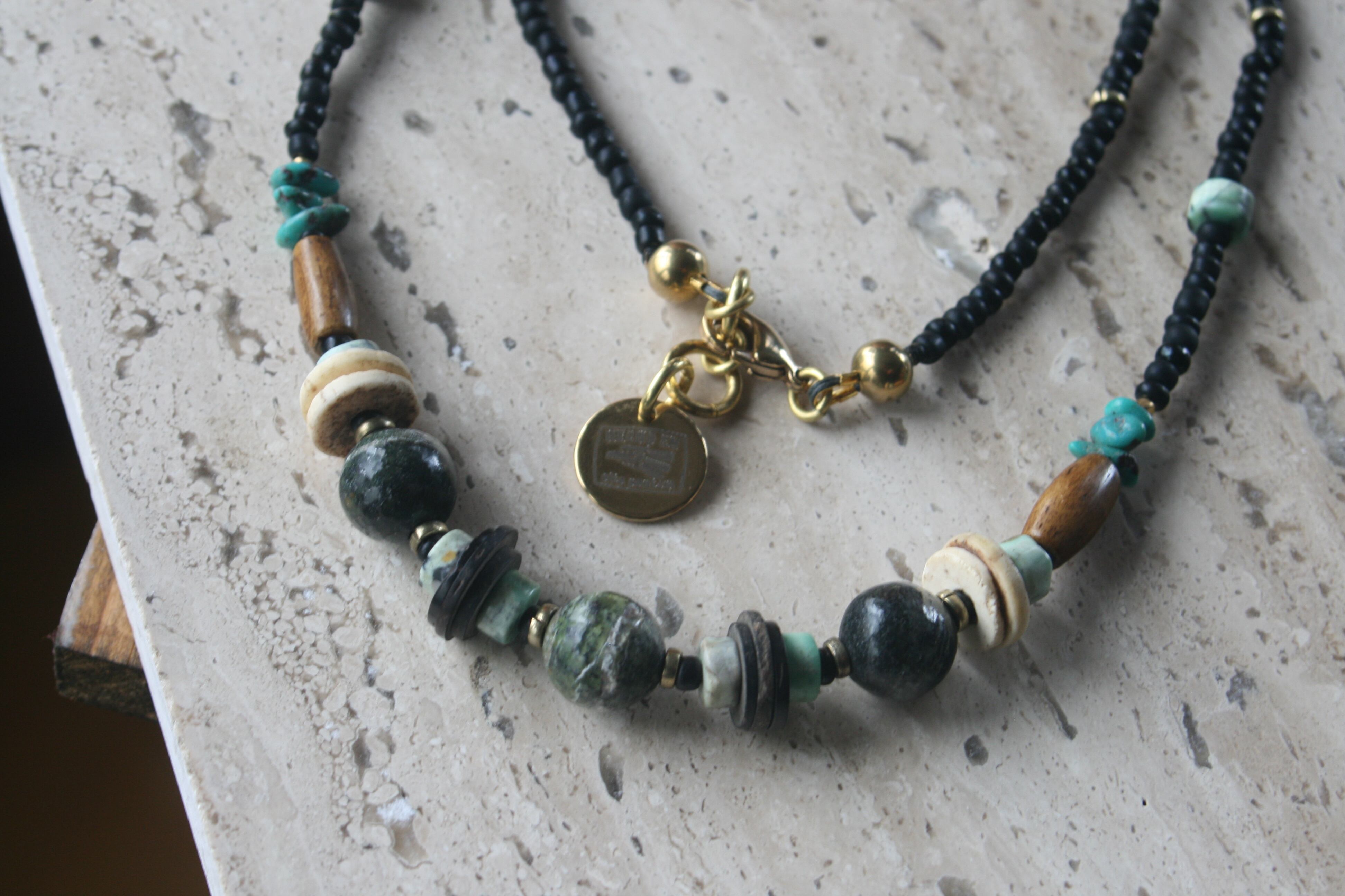 滅多に聞かない、ダチョウの卵の殻というアフリカ民族が作るスペーサービーズも入れ込んでます。