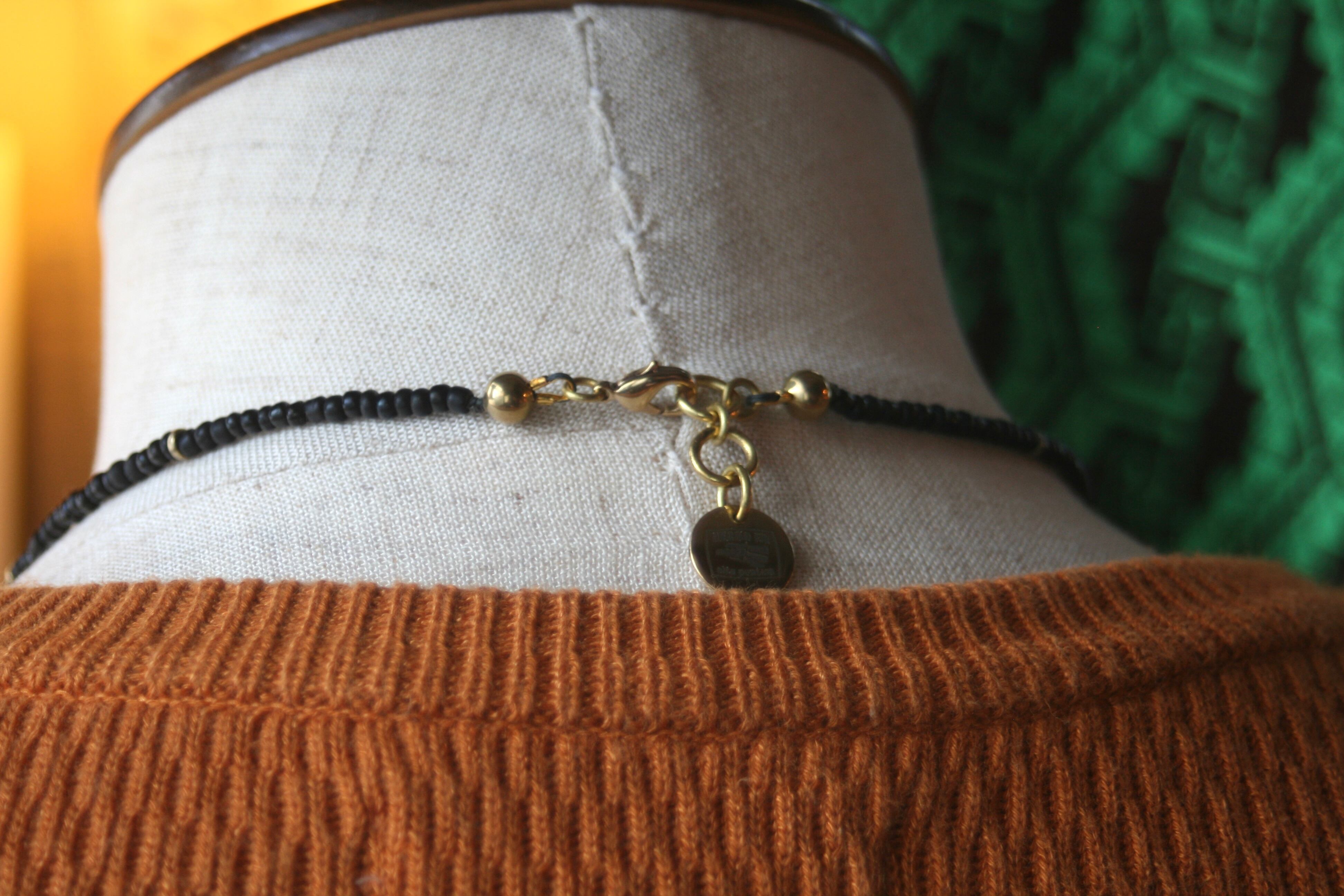 首周りはガラス製のメキシカンシードビーズ。