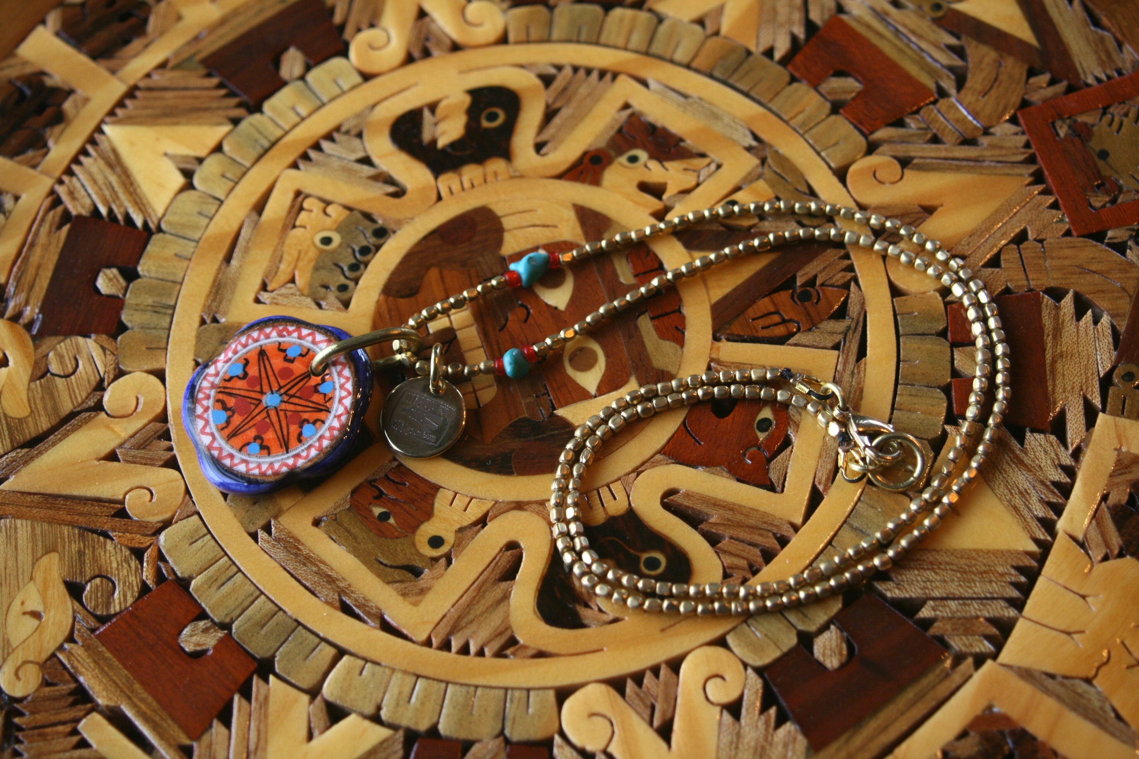 イタリア、アフリカ、メキシコ、インドネシア、ネパール等の民族ビーズ、トレードビーズを使用。