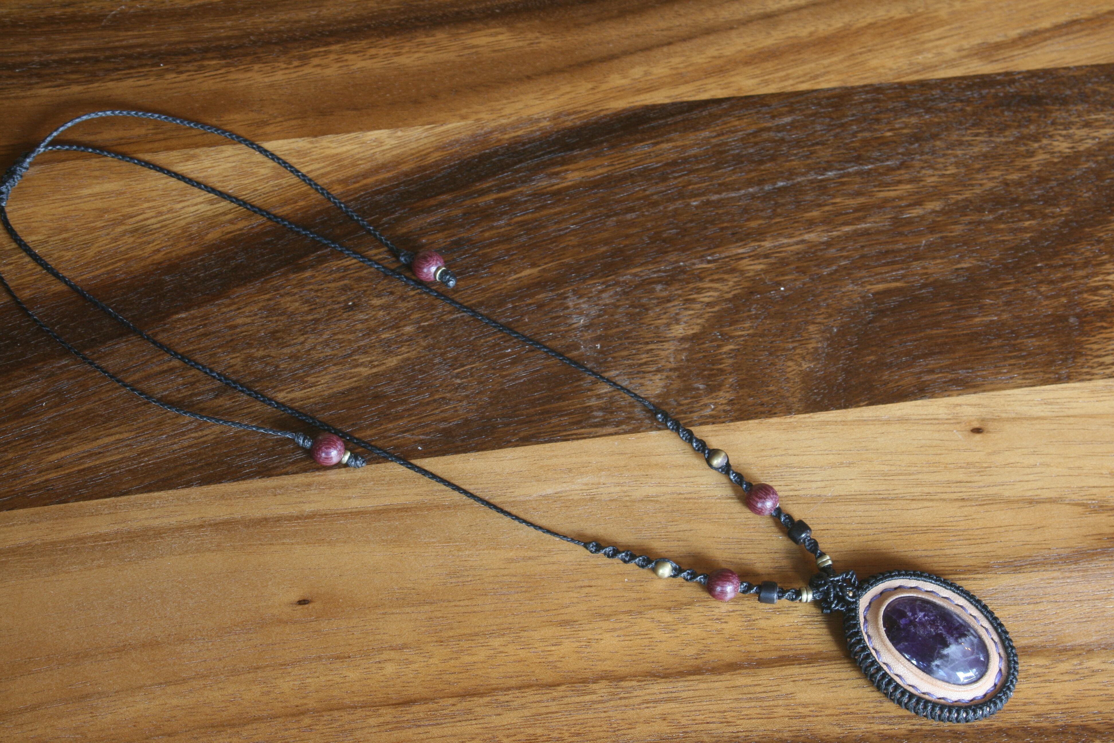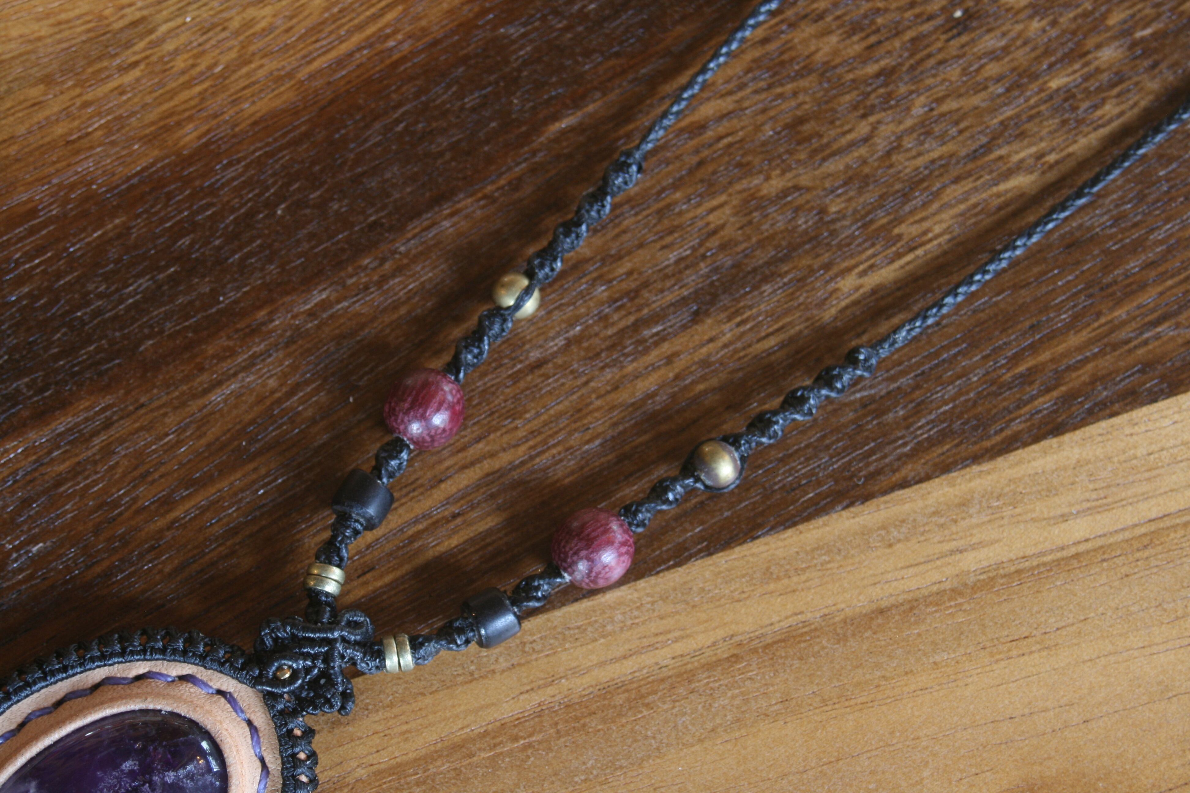 2月誕生石【アメジスト】天然石の革包MACRAMEネックレス