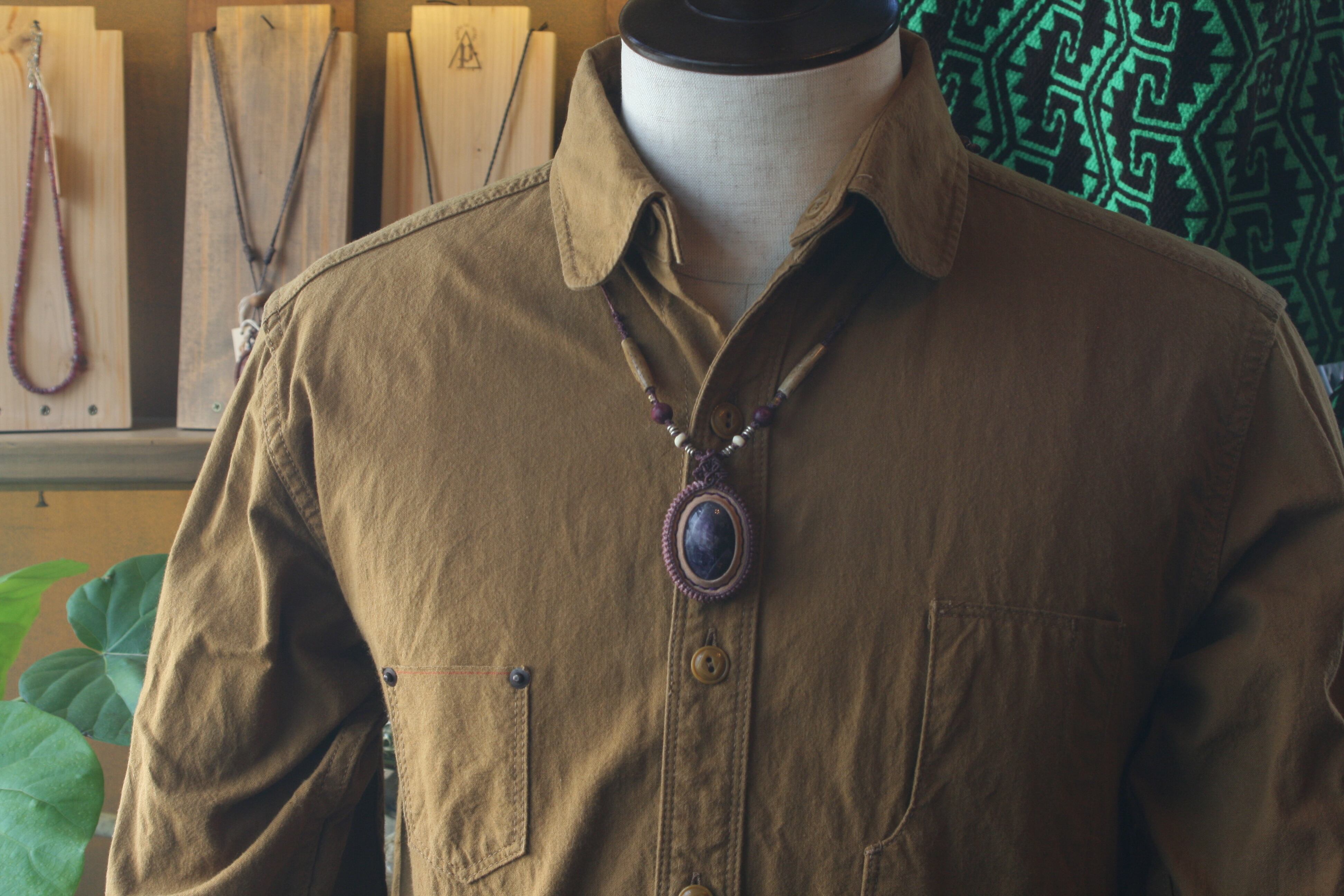 2月誕生石【アメジスト】天然石の革包MACRAMEネックレス