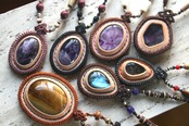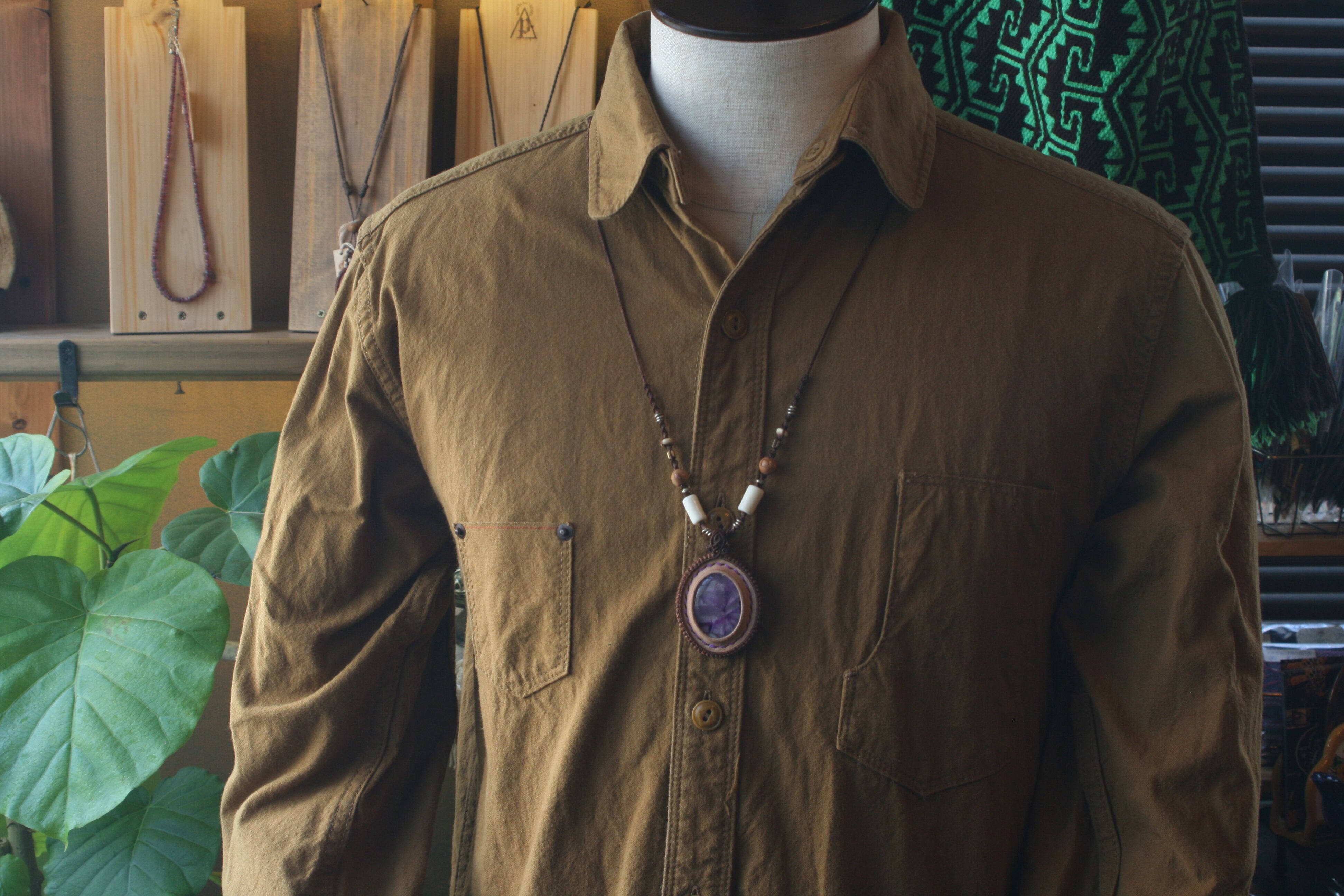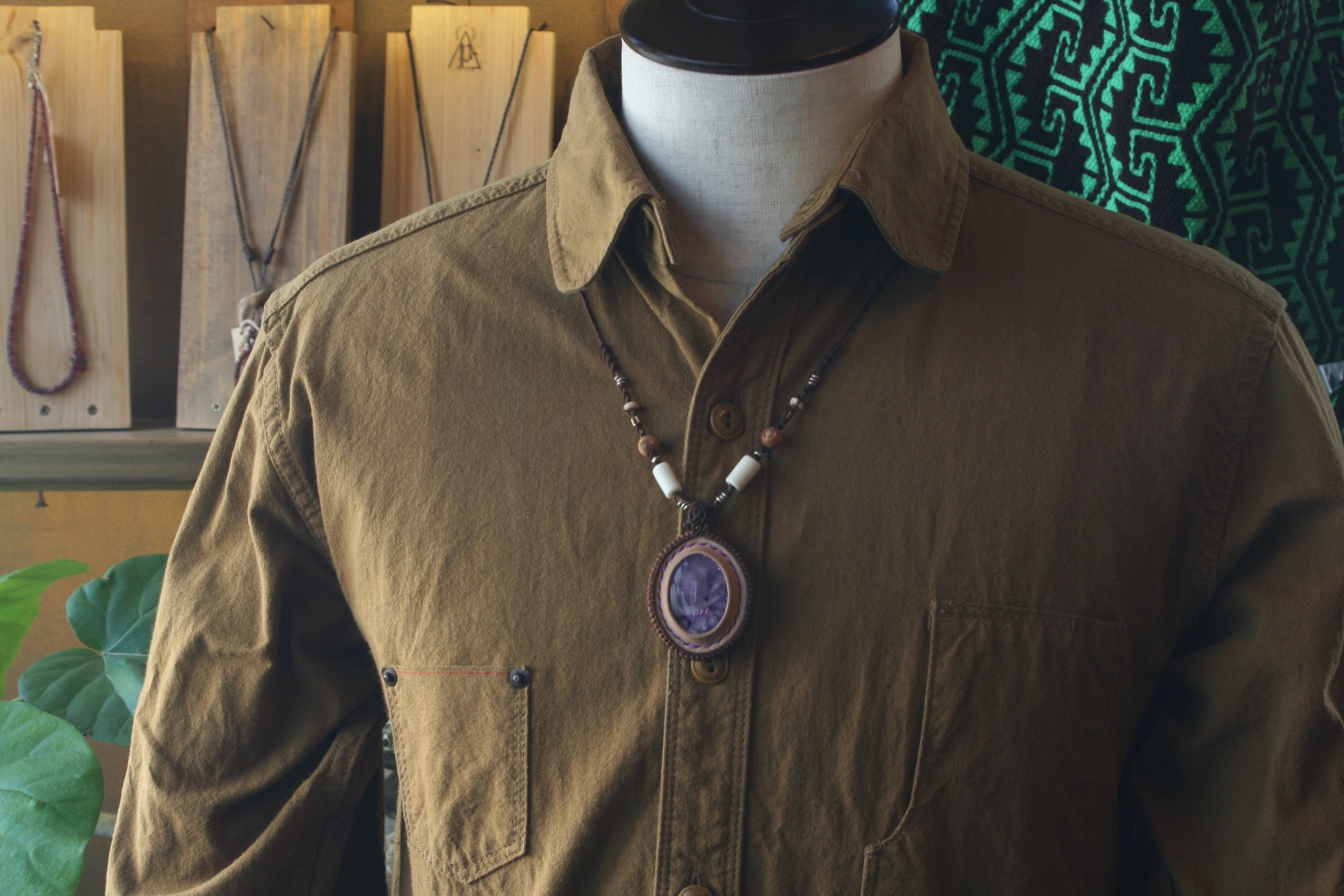 2月誕生石【トラピッチェアメジスト】天然石の革包MACRAMEネックレス