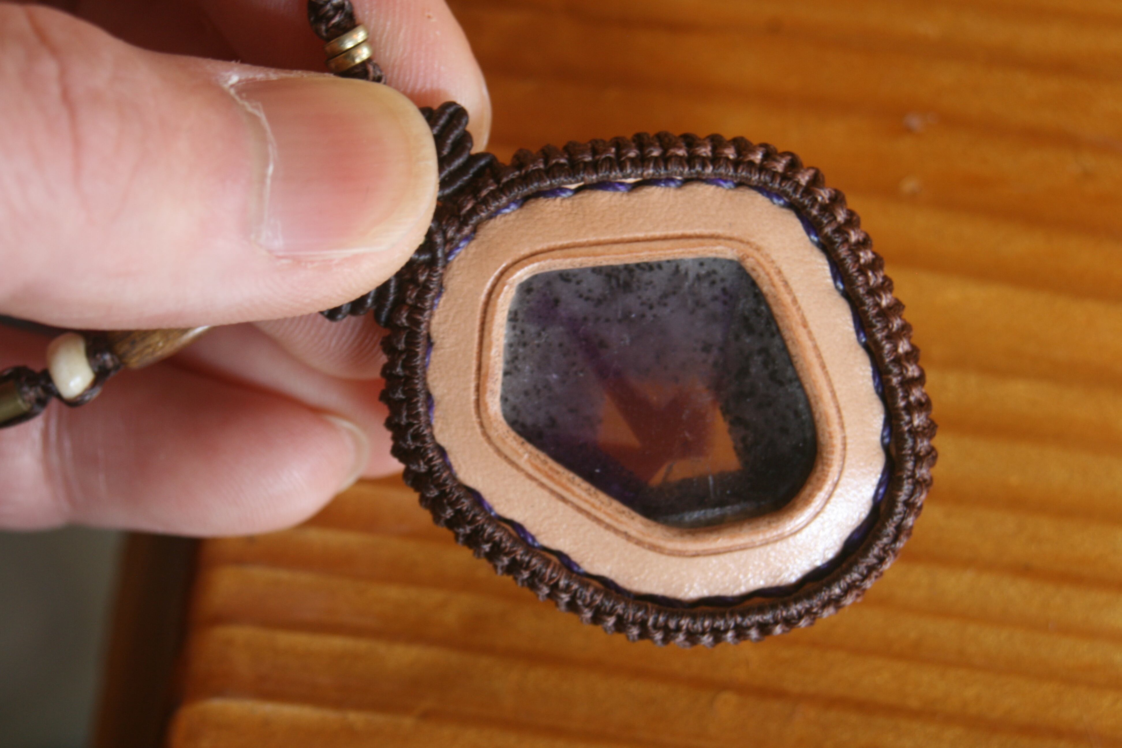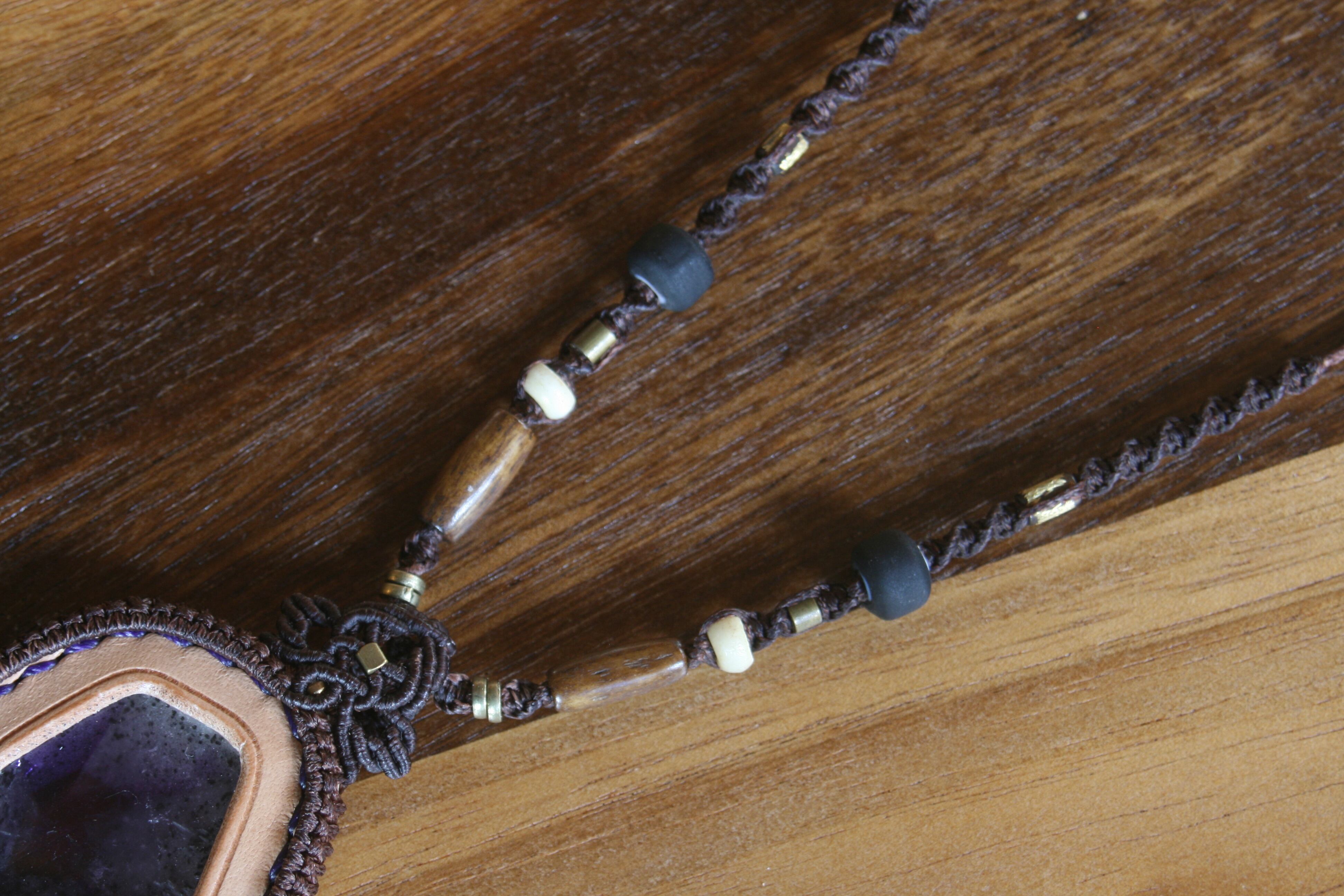 2月誕生石【トラピッチェアメジスト原石】天然石の革包MACRAMEネックレス