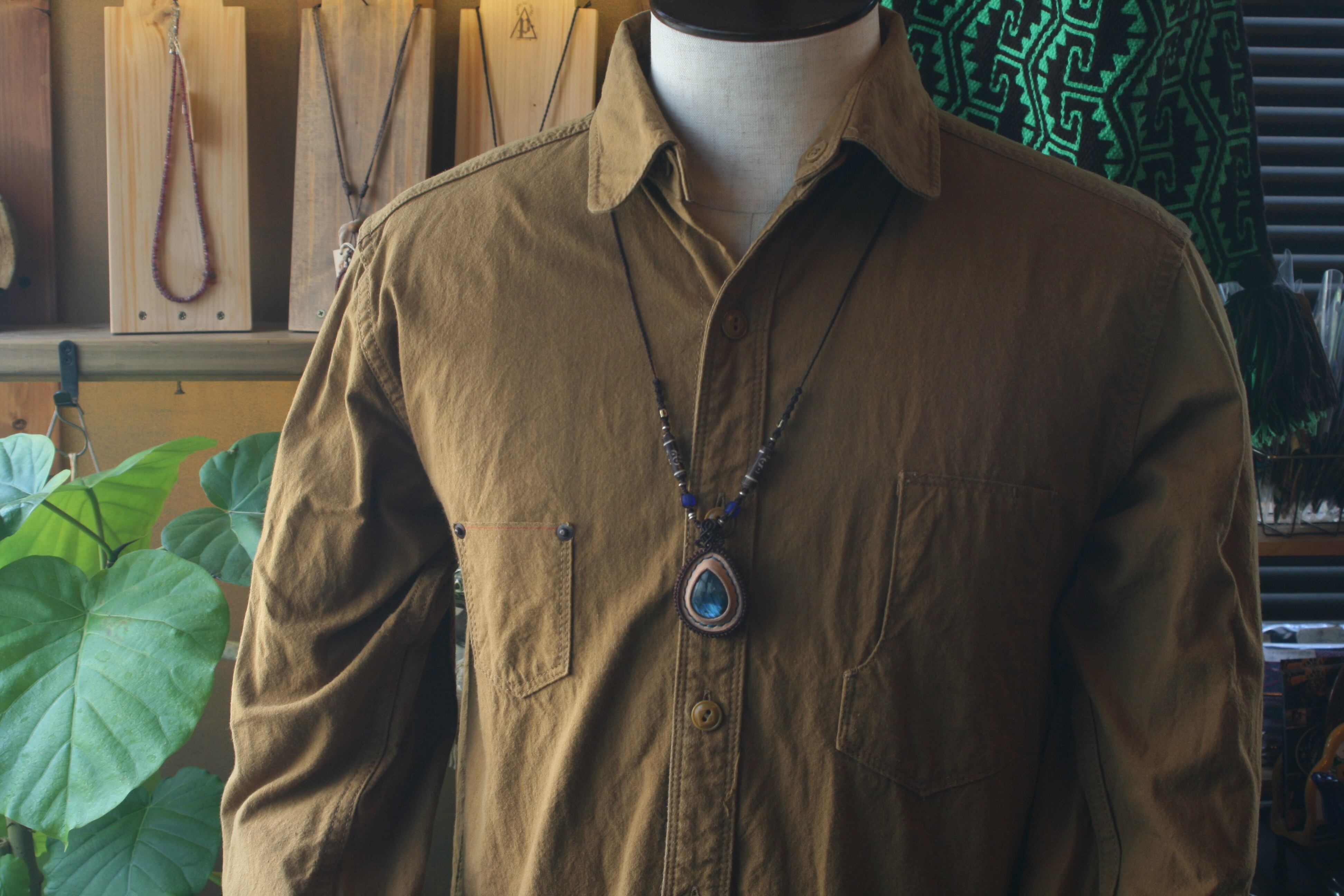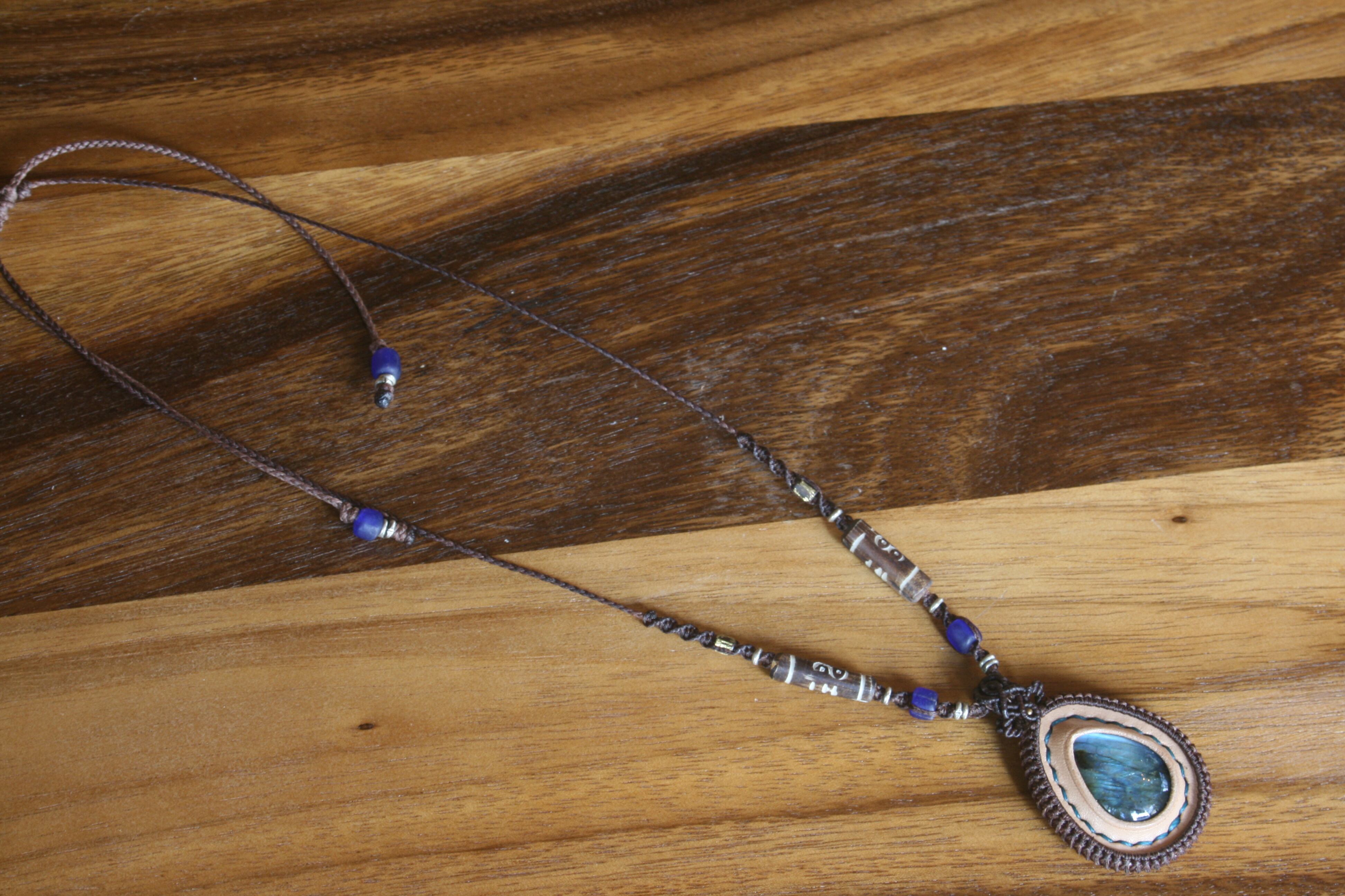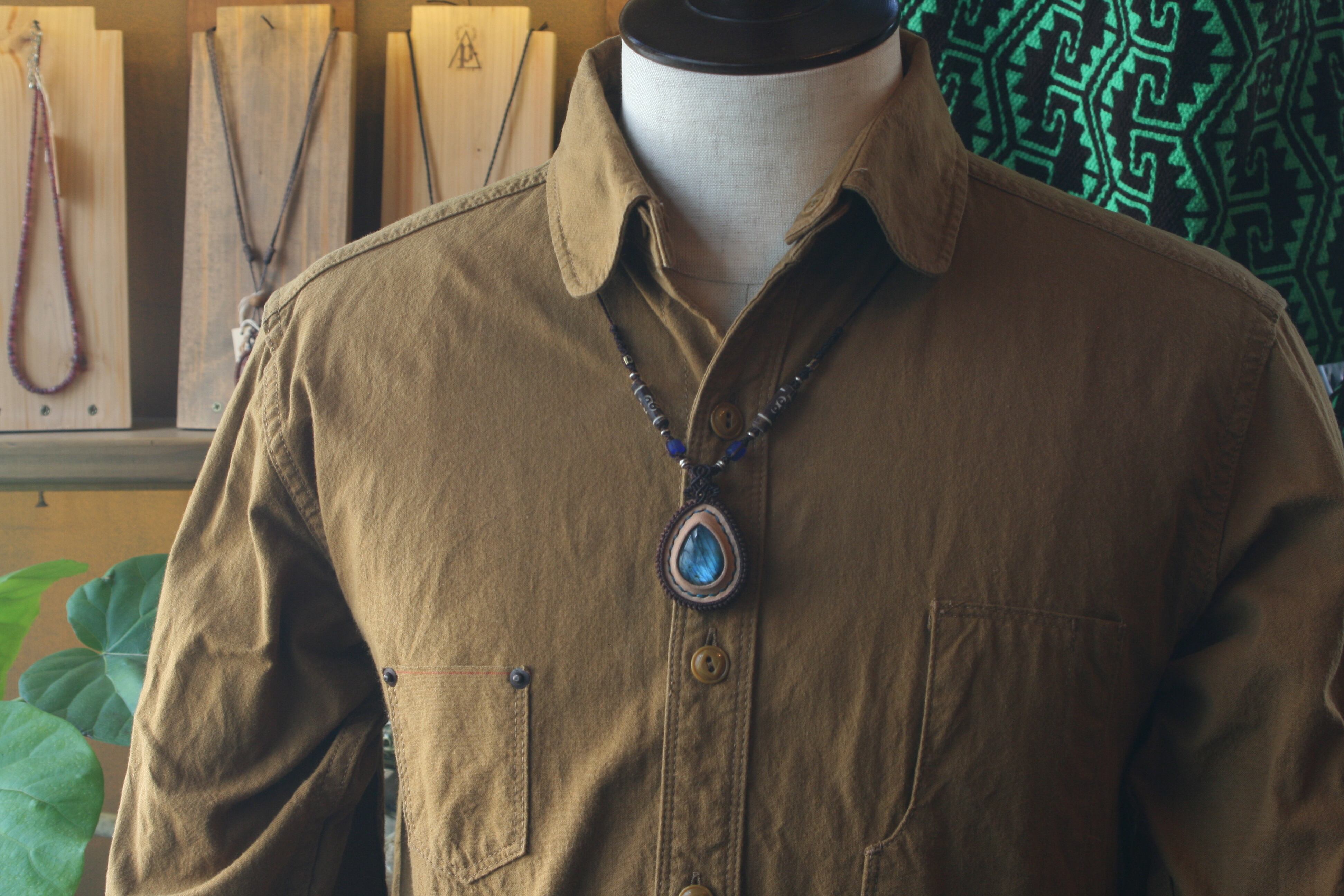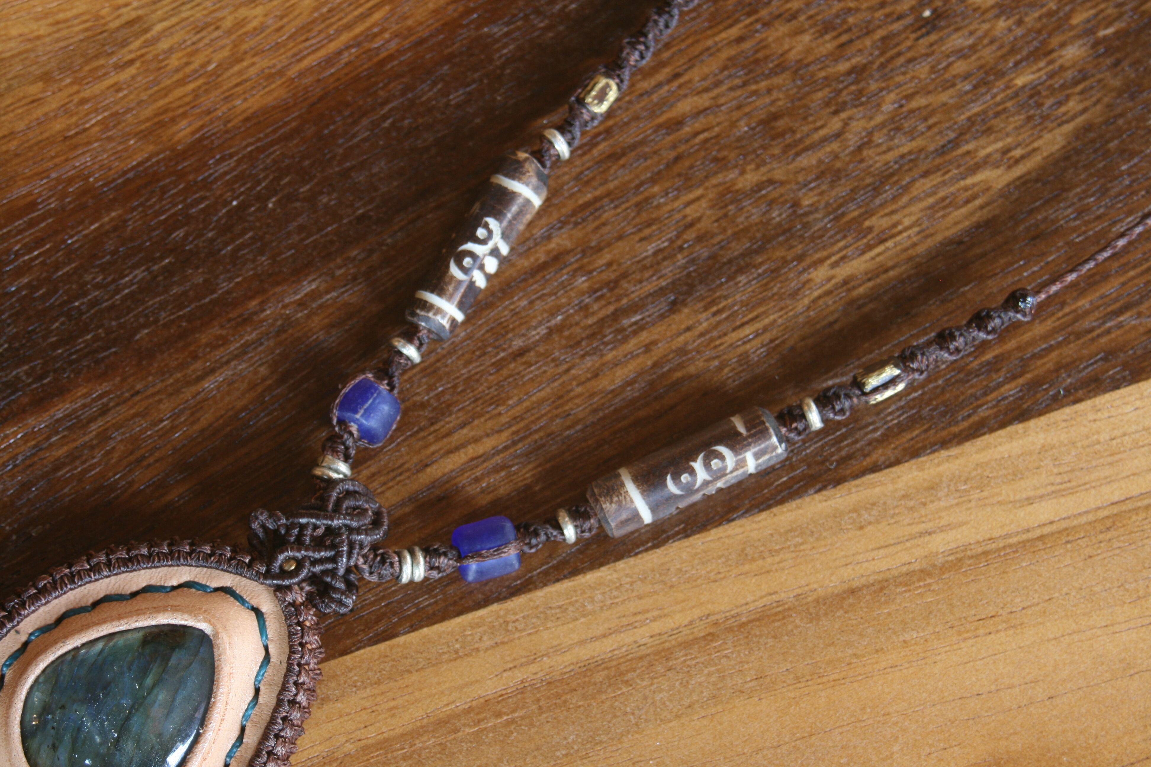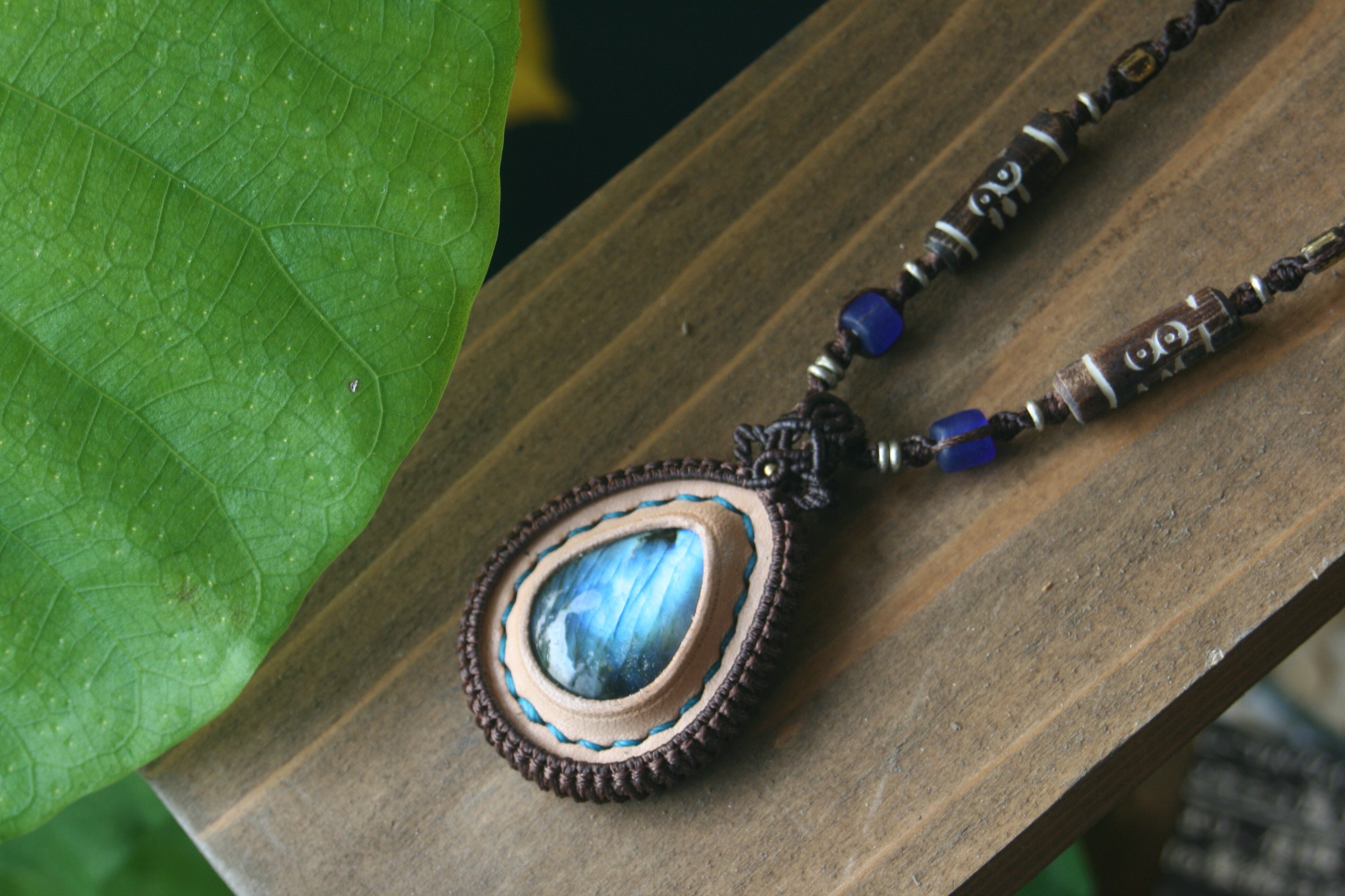 【ラブラドライト】天然石の革包MACRAMEネックレス
